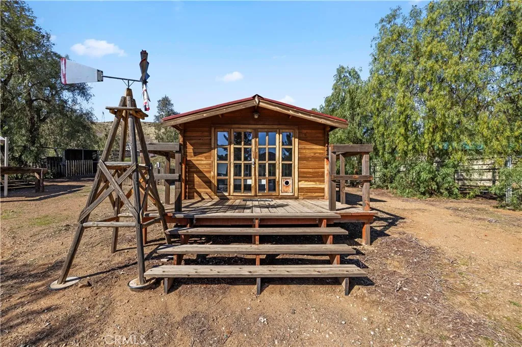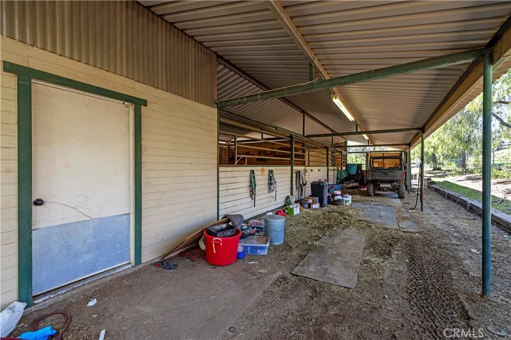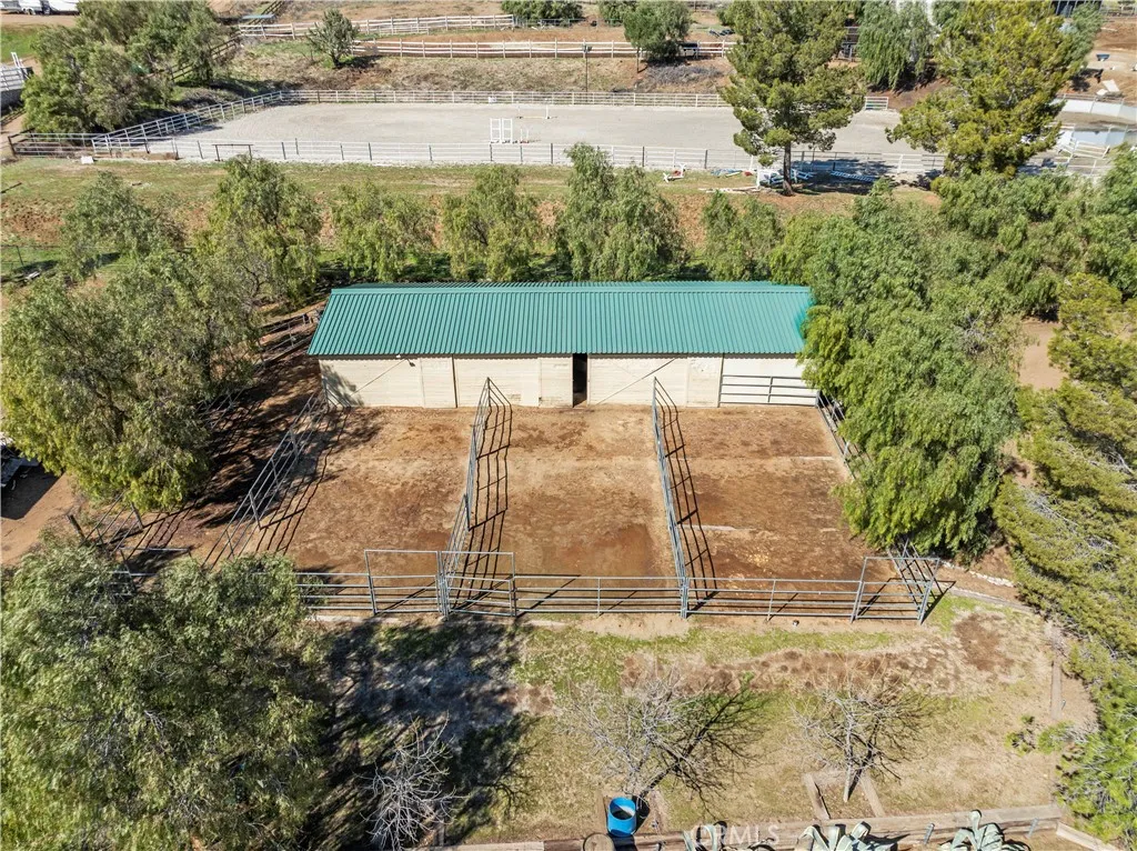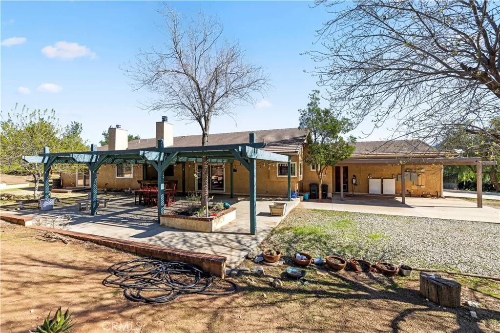 An equestrian familys dream property. Set on over five acres, this single-story ranch offers country living with modern convenience. Featuring a large open arena, 4 stall barn with tack room, a separate pen with shelter, a tree-lined round pen, a large dry lot paddock, and a huge open arena with a tree-covered cooling-off walk around it. With direct access to riding trails from both the front and back gates, its an ideal setup for equestrian living. In addition, there is a hay shed, chicken coop with run, goat/chicken pens, and a large tool shed. The 4- bedroom home boasts a new Pebble Tec pool and spa, built in 2023, providing the perfect place to relax while enjoying the peaceful surroundings and spectacular sunsets. A wall of Oleander trees creates complete privacy from neighbors. Paid solar, and 2 Tesla Power walls mean youre never without power. Other features include a cottage library with built-in shelves, offering incredible potential as a private retreat, office, or future ADU. Inside, the home features two fireplaces, and a spacious layout. Recent upgrades include a newer instant hot water tank for the bathrooms, a newer dishwasher, and a newer water purifier in the garage. The garage is finished with laminate flooring, ample storage, and an outlet for electric/hybrid vehicle charging. An electric gate completes the fully enclosed property, adding to its functionality. With flat acreage, well-planned equestrian facilities, this is a rare opportunity to enjoy spacious country living with all the conveniences of a well-maintained home.