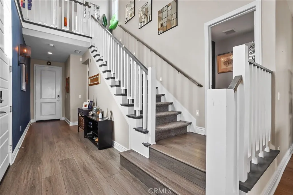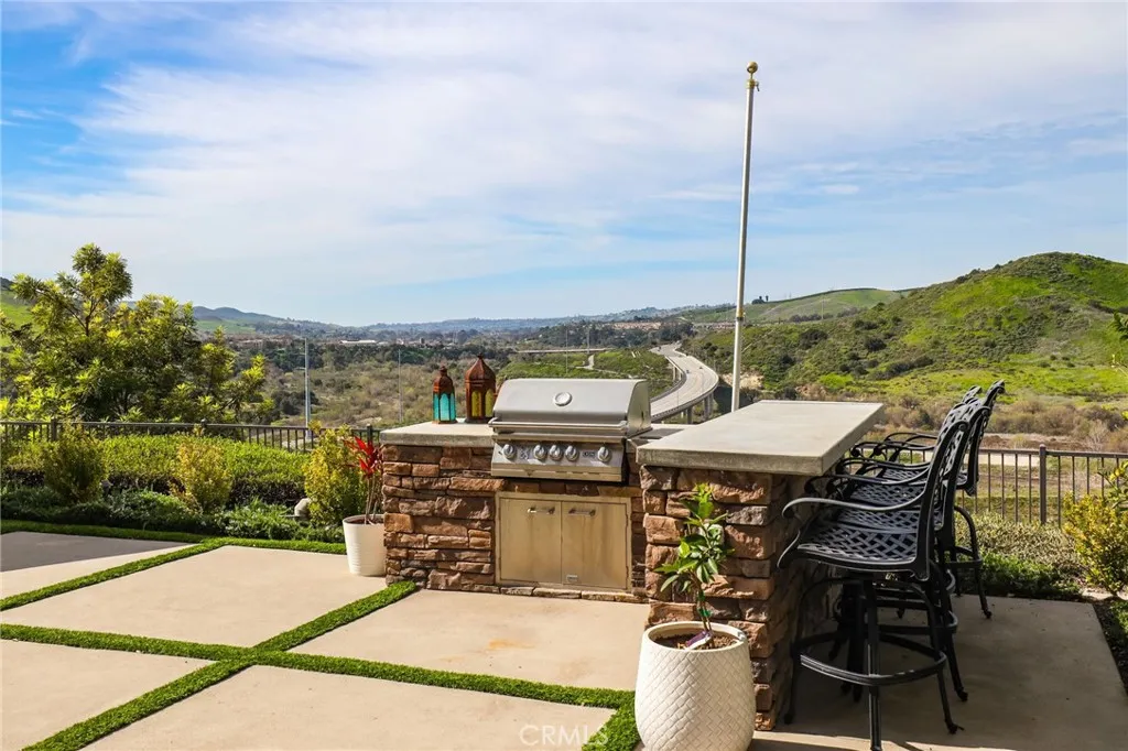 THE BEST VIEW AND BEST VALUE FOR A VIEW HOME WITH POOL SIZE YARD WITH POOL DESIGN RENDERINGS IN RANCHO MISSION VIEJO. Set high above the Ventana enclave in Esencia, this masterfully upgraded residencecomplete with fully paid solarcaptures sweeping, unobstructed hill and city-light views that elevate everyday living. Designed with intention and finished to the highest standards, this turnkey home offers four bedrooms, a generous bonus room with the flexibility to become a fifth bedroom, and four-and-a-half impeccably appointed baths. Wood-look plank flooring flows throughout the main level, leading into an expansive open-concept living space ideal for both everyday living and elevated entertaining. The kitchen blends style and functionality with a dramatic quartz island, custom pendant lighting, stainless steel appliances, and designer tile accents that add depth and character. The adjacent family room is anchored by a contemporary fireplace, while the dining area provides flexible space for gatherings and entertaining. Seamless indoor-outdoor living defines the home. The signature California Room with its stacked-stone fireplace invites year-round enjoyment, while the private backyard offers a rare pool-size yard with breathtaking views, thoughtfully finished with a built-in BBQ, firepit, low-maintenance turf, and generous space to relax or entertain under the open sky. Adding tremendous future value, the seller has already completed and paid for architectural design and installation plans for a custom pool and expanded outdoor living area, allowing the next owner to easily