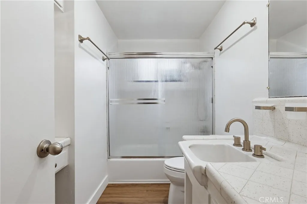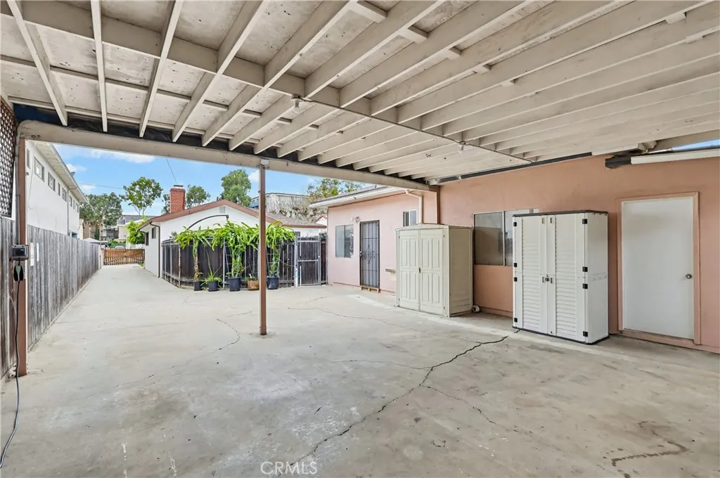 Discover this 7,500 sqft lot featuring two versatile bonus spaces! The primary residence is a 4-bedroom, 2-bath home located in the desirable Palms/Mar Vista neighborhood, offering 1,370 square feet of living space. Set behind a gated entry, this property provides privacy, flexibility, and multiple living or workspace opportunities on a generous lot. The secure front gate opens to an extended driveway running along the side of the home to the rear of the property. Inside the gate, the front yard is enhanced by manicured landscaping, an open lawn, and a stepping-stone walkway with a dedicated seating area. The main residence features a built-up roof on existing sheathing and has been freshly painted inside and out. The interior showcases laminate flooring throughout and a functional layout. A hallway off the entry leads to the bedroom wing, which includes two well-proportioned secondary bedrooms, a full shared bathroom with new laminate flooring, and a primary bedroom with its own en-suite bath and ample closet space. On the opposite side of the home, the main living areas unfold, anchored by a living room with a gas stone fireplace that flows seamlessly into the dining area and kitchen. The kitchen features tile countertops and an integrated laundry area. A fourth bedroom is located just off the dining space, offering flexibility as a guest room, home office, or additional living area. A door off the dining area opens to the backyard, where a pool and attached spa are surrounded by paved entertaining space and mature fig, dragon fruit, and lemon trees - creating a private o