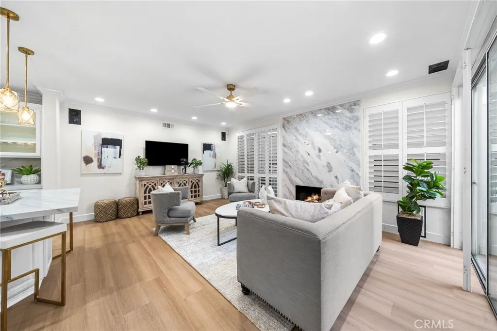 Embrace elevated coastal living in this fully remodeled Downtown Huntington Beach residence, spanning nearly 3,100 square feet and ideally located moments from the beach, pier, and lively Main Street. Thoughtfully designed for both elegance and everyday functionality, this spacious home offers 3 bedrooms plus a versatile bonus room (easily converted to a 4th bedroom), 3.5 baths, and a modern open-concept layout perfect for entertaining and comfortable living. The welcoming main level showcases expansive living and dining spaces anchored by floor-to-ceiling stone fireplaces and enhanced with rich, designer-curated finishes throughout. The chef-inspired kitchen that is open to the family room is a true showpiece, complete with premium stainless steel appliances, a convenient pot filler above the range, sleek quartz countertops, a large walk-in pantry and a generous center island with seating perfect for gathering. Step outside to the center courtyard, featuring a beautiful fountain and a built-in BBQ center, creating an ideal space for outdoor entertaining. Upstairs, the luxurious primary suite offers a serene retreat with its own fireplace, private balcony, and a spa-like bathroom featuring dual sinks, a soaking tub, and a walk-in shower. Two additional bedrooms and a spacious bonus room provide ample flexibility for guests, a home office, or media space. The third level features an impressive rooftop deck with a view of the ocean, the perfect spot to enjoy sunsets and sea breezes. Additional highlights include a main-level powder room, custom lighting, luxury flooring throu