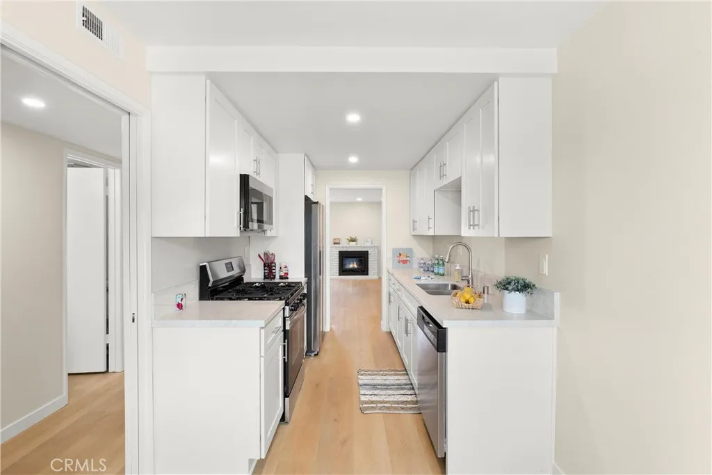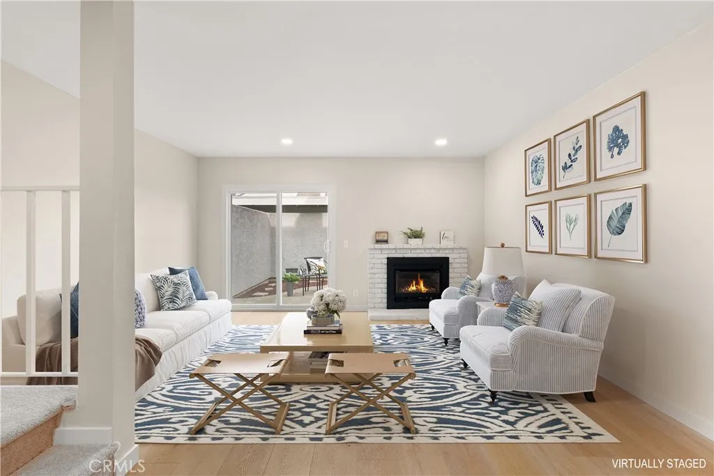 This charming Cherrywood Village home offers a perfect blend of coastal living and modern comfort. 2 bedrooms, 2.25 bathrooms, 1,075 sq. ft. home with 2 car garage is in a great location with easy access to the clubhouse and pool area. This much sought after development is approximately 3 miles from popular world class Huntington Beach Surf City. Step inside to find a light-filled floor plan featuring new windows, flooring, fresh interior paint, smooth ceilings and brand new recently installed updated kitchen with brand-new stainless-steel appliances, quartz countertops, modern cabinetry and recessed lighting. A spacious living room with a cozy fireplace leads to an enclosed private patio enables you to enjoy the cool Huntington Beach refreshing air, ideal for entertaining and relaxation. Brand new carpet to the upstairs 2 good-sized bedrooms. The spacious primary suite boasts a convenient vanity sink area. The second bedroom features a custom-sliding door to the private balcony, perfect for relaxing with coffee or a book. A convenient upstairs laundry area with washer and dryer completes the home. A 2-car detached garage adjoins the spacious patio to the living area of the home. Residents have access to community clubhouse, pool and spa. Cherrywood Village is a perfect location near to many fine dining restaurants, shopping options, schools, Helme Park, entertainment, and a short bike ride to fabulous beaches. Move-in ready! If you are ready for Coastal living this is your opportunity at an affordable price.