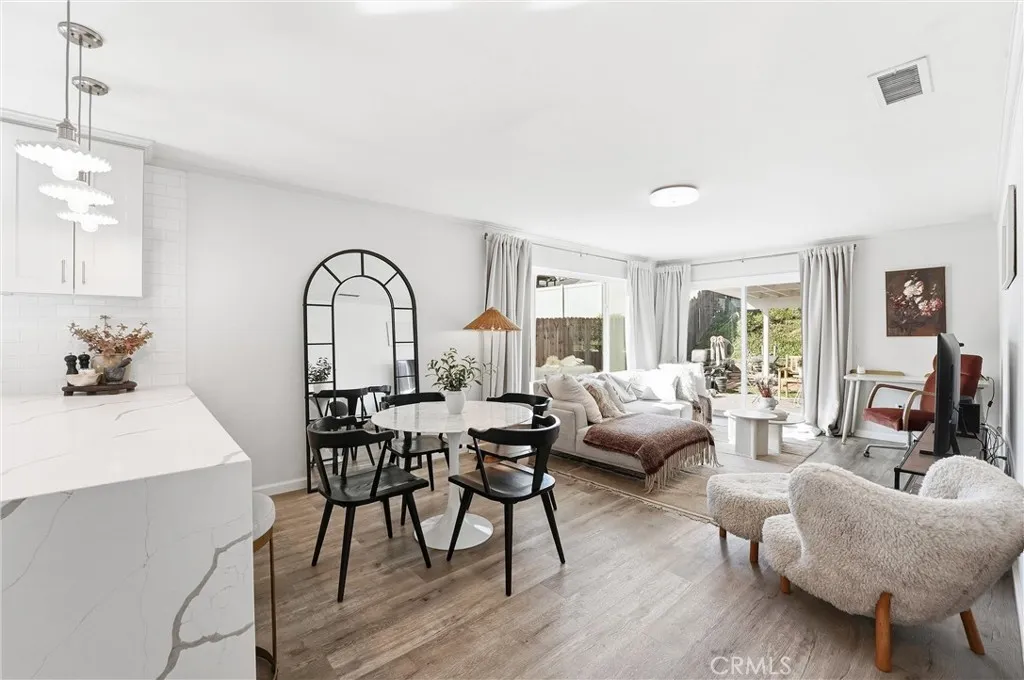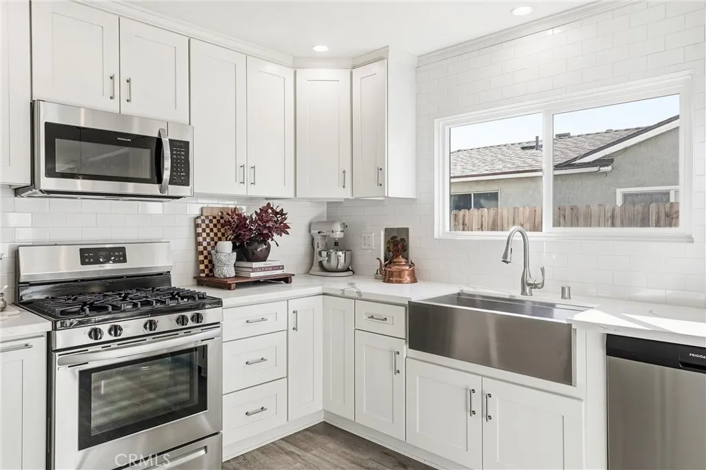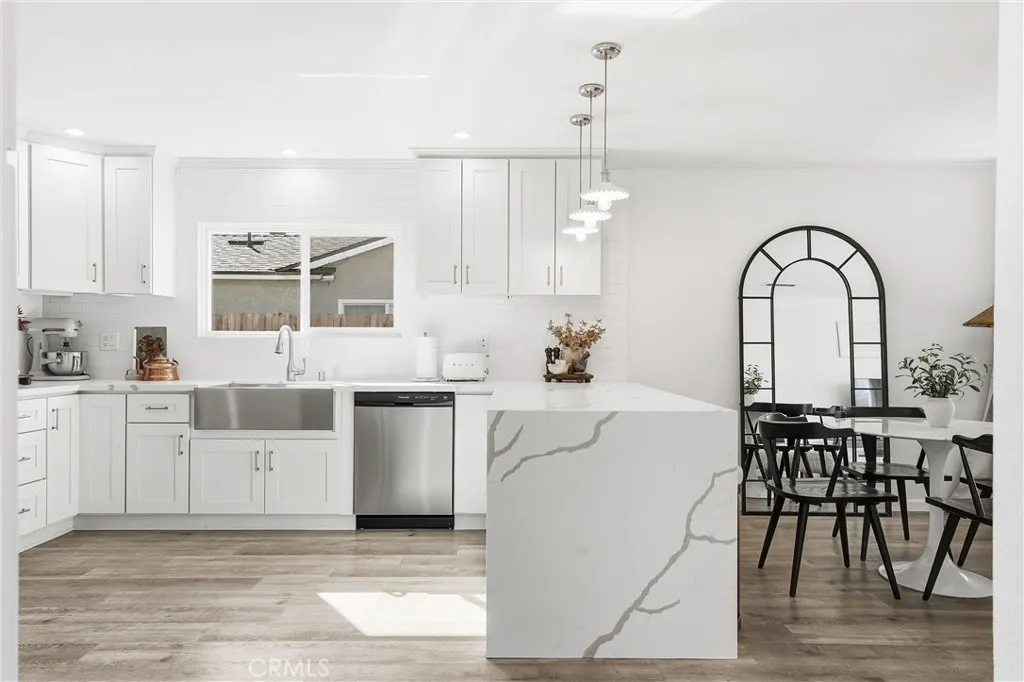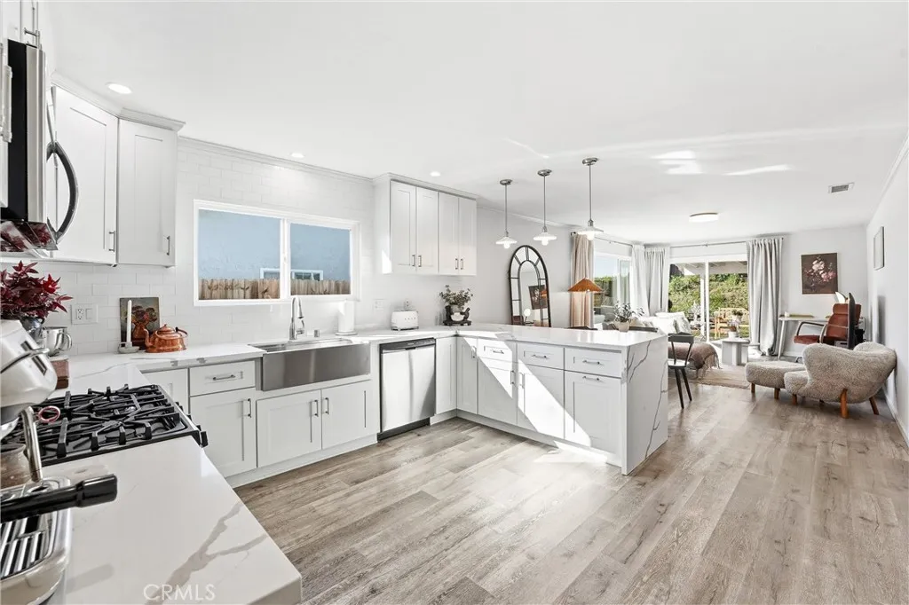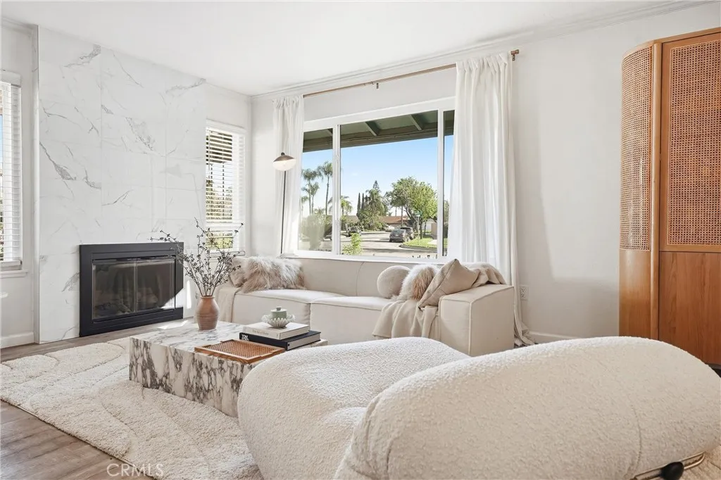 WELCOME TO THIS EXQUISITELY RENOVATED SINGLE STORY HOME in the heart of highly desirable CHINO HILLS! Thoughtfully designed and FULLY REMODELED inside, this elegant residence combines modern comfort with timeless appeal. Every detail, from the OPEN CONCEPT FLOOR PLAN to the designer finishes, reflects pride of ownership and sophisticated taste. Step inside to find a bright, airy layout filled with natural light. NEW WINDOWS, LUXURY VINYL PLANK FLOORING, CROWN MOLDING, and RECESSED LIGHTING carry throughout, creating a seamless blend of warmth and contemporary style. The living area centers around a striking FLOOR-TO-CEILING PORCELAIN FIREPLACE the perfect gathering spot for relaxing evenings at home. The heart of this home is its STUNNING CHEFS KITCHEN, featuring crisp white SHAKER CABINETRY, elegant QUARTZ COUNTERTOPS with a dramatic WATERFALL EDGE PENINSULA, and a timeless SUBWAY TILE BACKSPLASH. Designer pendant lighting enhances the space, while stainless steel appliances, including a GAS RANGE and a FARMHOUSE SINK, add both beauty and function. Whether entertaining friends or sharing family meals, this kitchen delivers both luxury and comfort. The homes bathrooms are equally impressive, showcasing MARBLE COUNTERTOPS, PORCELAIN AND REAL MARBLE DETAILS, and refined craftsmanship in every finish. The PRIMARY SUITE offers a spa-like WALK-IN SHOWER, while the secondary bath features a TUB/SHOWER COMBO ideal for families or guests. Additional upgrades include a NEWER LENNOX HVAC SYSTEM, NEWER WATER HEATER, and DRYWALLED GARAGE with flexible use potential. Step outdoors to a