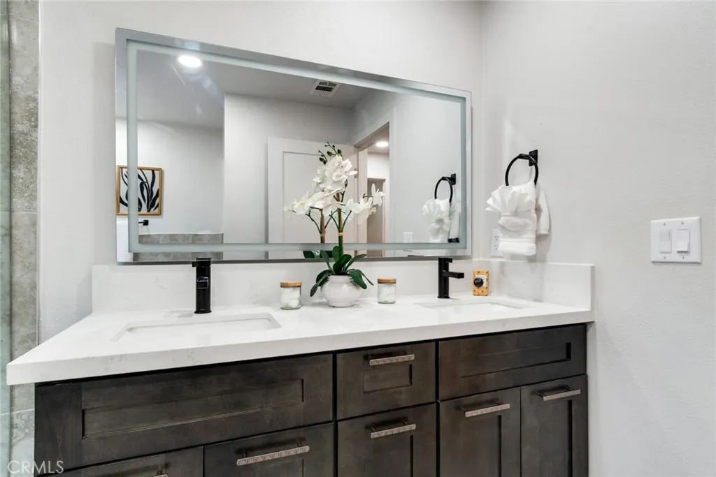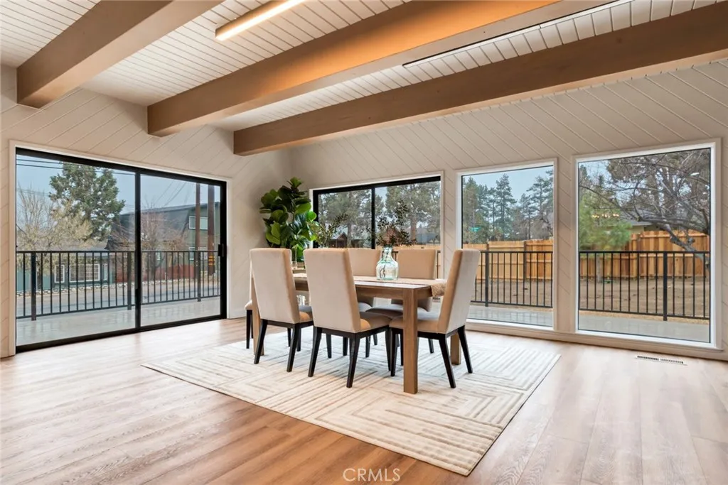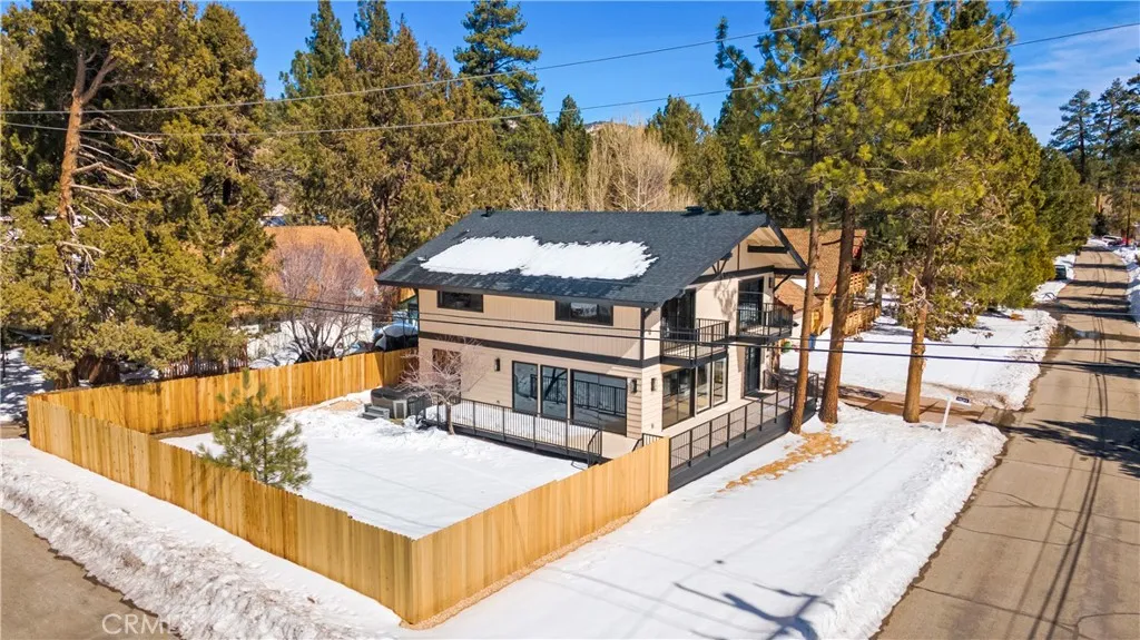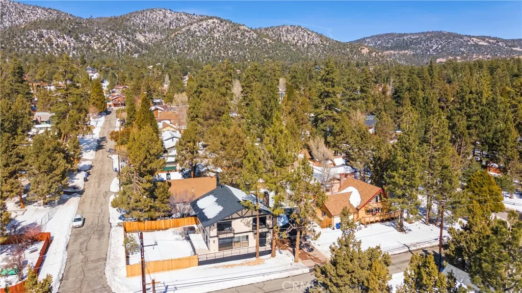 Fully renovated luxury mountain retreat just minutes to the slopes, Big Bear Lake, and The Village! This professionally designed 2,660 sq ft home offers 4 bedrooms, 3.5 baths, and a 2-car garage with brand-new systems throughout including HVAC, roof, water heater, electrical, insulation, and windows offering lasting quality and comfort. High-end finishes include premium appliances, designer fixtures, and custom hardware. The spacious chefs kitchen features a walk-in pantry, bar area, and wine fridge, perfect for entertaining. The primary suite boasts a private balcony with mountain and ski slope views, spa-style ensuite with double vanity, and walk-in closet. Three additional bedrooms include one with a private balcony and one with its own half bath. Bright great room with wall-to-wall windows, tongue-and-groove ceilings, original wood beams, and stone fireplace. Glass doors open to a wraparound deck, new hot tub, fenced yard, RV/boat parking, and ample space with potential for additional guest accommodations or flexible use, subject to local regulations.