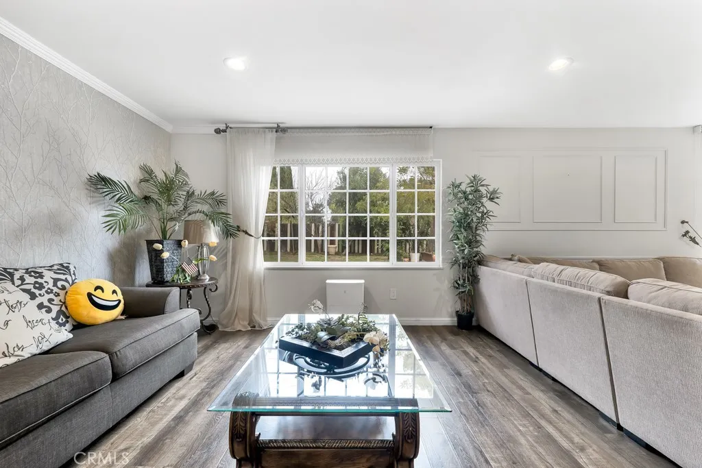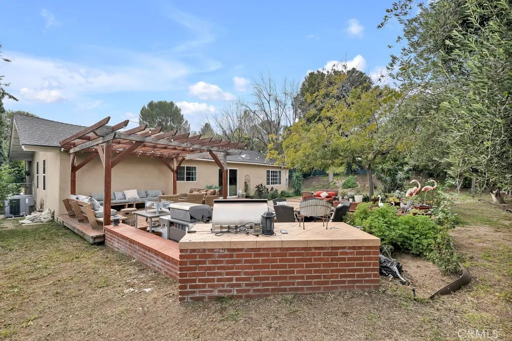 Welcome to this rare, beautifully designed single-story home nestled in one of Granada Hills most desirable neighborhoods. Situated on a 0.25-acre lot, this 4-bedroom, 2.5-bathroom residence offers 1,956 square feet of living space and was fully gutted and reimagined with a modern floor plan less than 10 years ago. Step inside to wood-like flooring and recessed lighting throughout the home. The formal foyer features a guest half-bath, a storage closet, and wainscoting that continues through both the foyer hallway and the guest bedroom hallway, adding consistent architectural detail. Down the entry hall, the formal dining area includes classic chair-rail wainscoting and flows into the open-concept living room. The living room is bright and spacious, featuring custom built-in cabinetry and a decorative picture-frame panel molding accent wall. The living room is bright, spacious, and thoughtfully designed for both everyday living and entertaining, featuring custom built-in cabinetry and a decorative picture-frame panel molding accent wall, creating a refined yet inviting atmosphere filled with natural light. The chefs kitchen offers beautiful natural granite countertops with ample counter space, a large center island, stainless farmhouse apron sink, top-to-bottom tile backsplash, generous cabinetry, and quality appliances. The primary suite features 14-foot vaulted ceilings, a walk-in closet with custom built-ins, and an ensuite bathroom boasting beautiful tile work throughout and a walk-in shower. Three additional well-sized bedrooms offer ample closet space and share a full