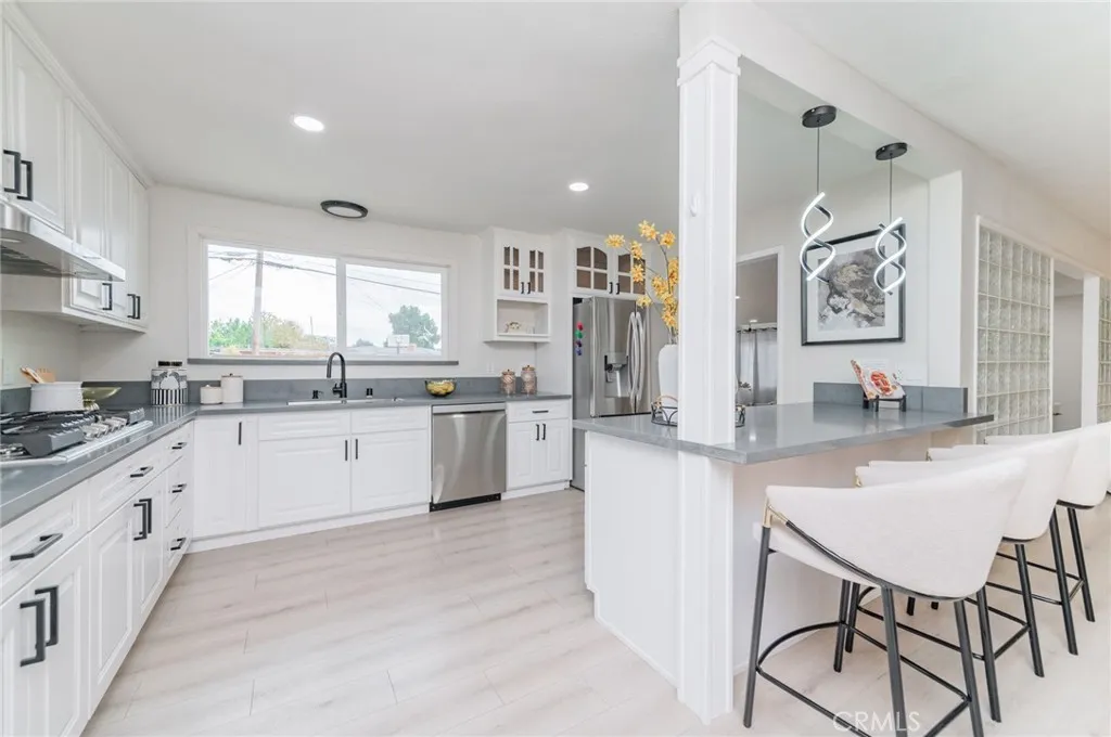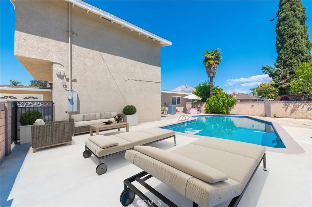 Welcome to 1334 S Glendora, a fully upgraded 2-story home featuring 4 bedrooms, 3 baths, and a sparkling pool. This stylish residence blends modern trends with functional living. Main Floor: Bright living room with an electric fireplace and durable laminate flooring. Gourmet Kitchen: Equipped with quartz countertops, white cabinetry, stainless steel appliances, and a peninsula island. Versatile Spaces: A spacious family room perfect for games or a home studio, plus three main-floor bedrooms. Primary Suite: A private second-floor retreat with mountain & pool views, a skylight, a soaking tub, and a large walk-in closet. Key Upgrades: Newer interior/exterior paint, copper plumbing, 200+ amp electrical panel, and Nest thermostat. Details: LED lightings, 6-speed bladeless fans in every room, and double-paned windows. Outdoor Living: Resurfaced Pebble-Tec pool, secure block-wall fencing, and RV-capable parking. 2-car garage with alley access, a new myQ motor, and a wrought iron gate. This move-in-ready home offers premium finishes and a convenient location. It truly has it all you need to be called HOME SWEET HOME!! **Ask your agent to share link of 3-D virtual tour and "List of Special Features and Improvement".