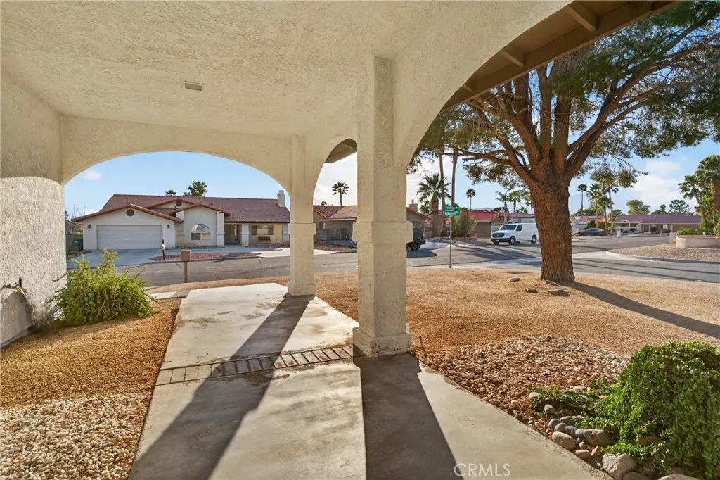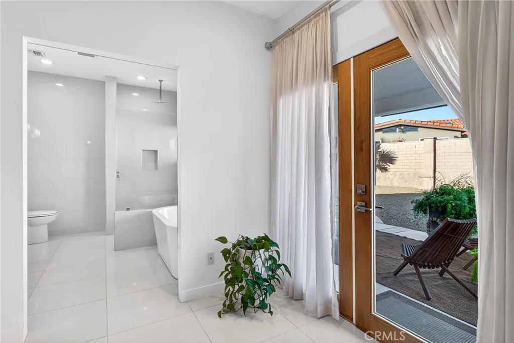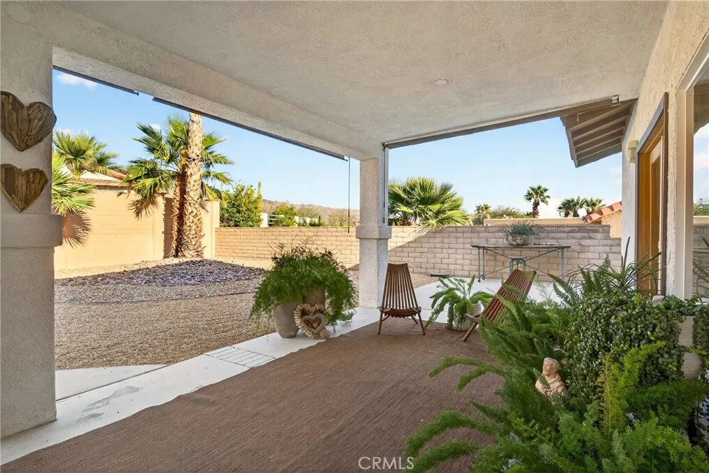 MOTIVATED SELLER.....COMPLIMENTARY UNLIMITED GOLF FOR TWO on the Ted Robinson award-winning golf course is included with HOA dues, and downtown Palm Springs is just 20 minutes awayoffering true resort living with convenient downtown access. This 1,822 square foot residence presents a contemporary, chic, and transitional aesthetic with seamless indoor-outdoor flow, creating an environment that feels both refined and welcoming. Soaring wood ceilings crown expansive living spaces filled with natural light, enhanced by an abundance of French doors and updated windows that frame dramatic mountain views throughout. High-gloss, large-format modern cream-colored tile floors beautifully reflect the light, pairing effortlessly with smooth-coat, flat museum-white walls and rich mahogany doors to create a clean, gallery-like backdrop ideal for modern living. The thoughtfully designed layout includes three bedrooms and two baths, anchored by a serene primary suite featuring a statement vessel tub and a generous walk-in closet. A fireplace defines the main living area, while a newer A/C system ensures year-round comfort and leased solar adds energy efficiency. Outdoors, the front, back, and side yards are thoughtfully curated with distinctive local desert rock landscaping, blending natural textures with low-maintenance design. The fully fenced backyard offers exceptional privacy along with mountain views, a solid covered outdoor patio, and a private jacuzziperfect for relaxing, entertaining, or stargazing beneath the expansive desert night sky. Mission Lakes Country Club is a 54-year-old