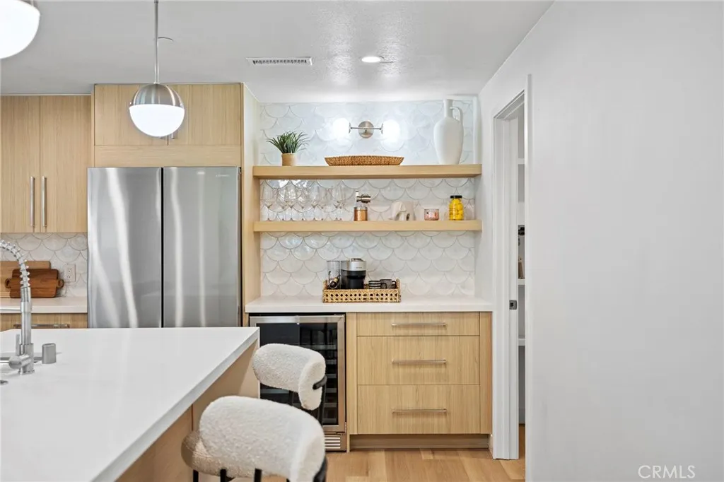 "$200,000 PRICE REDUCTIO" Experience elevated coastal living in this completely remodeled, luxury 3d, 2-bath townhome featuring breathtaking ocean views from all three private balconies. This stunning residence has been thoughtfully upgraded with high-end finishes, designer details, & modern conveniences to create a sophisticated yet comfortable retreat. Step inside through the custom-designed front door and immediately appreciate the bright, open layout with all-new windows, doors, flooring, and LED lighting throughout. The main living area showcases a redesigned family room centered around a new fireplace, creating the perfect ambiance for relaxing evenings while enjoying the ocean breeze. Just off the living room is a balcony offering sweeping ocean viewsideal for morning coffee or sunset gatherings. The gourmet kitchen is a true showpiece, designed for both everyday living and entertaining. Featuring custom cabinets, sleek Quartz countertops, a spacious center island with breakfast bar seating, and premium stainless-steel appliances including a brand-new refrigerator, stove/oven, microwave, dishwasher, under-counter wine refrigerator and a walk-in pantry. Adjacent to the kitchen is the formal dining room that provides an elegant setting for hosting dinner parties or intimate meals with family and friends. The primary suite features a custom fireplace, walk-in closet & direct access to a private ocean-view balcony. The spa-inspired primary bathroom is complete w/ marble countertops, soaking tub, walk-in shower w/ marble accent tiles and dual vanity sinks. Every detail ha