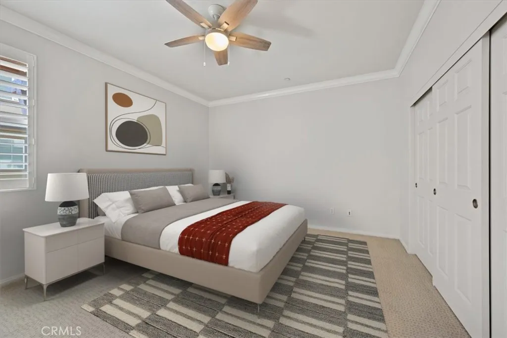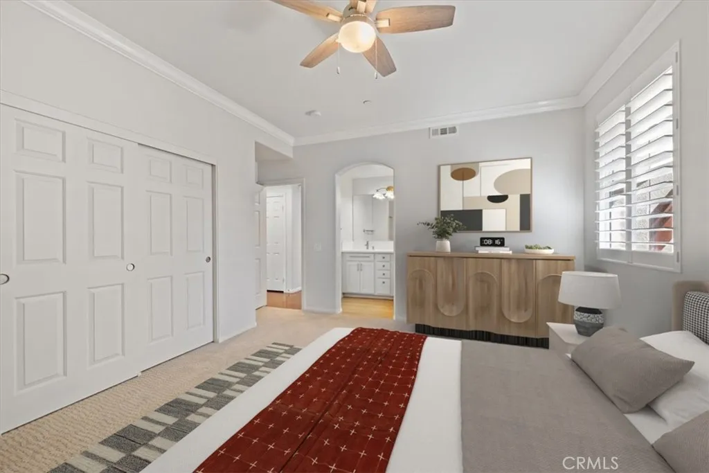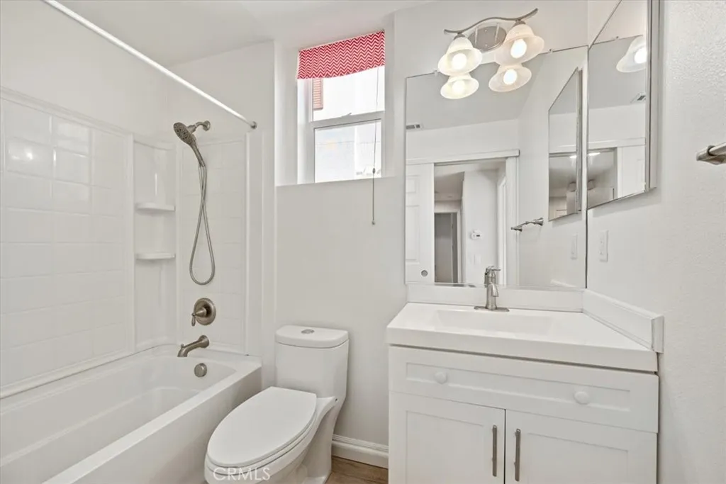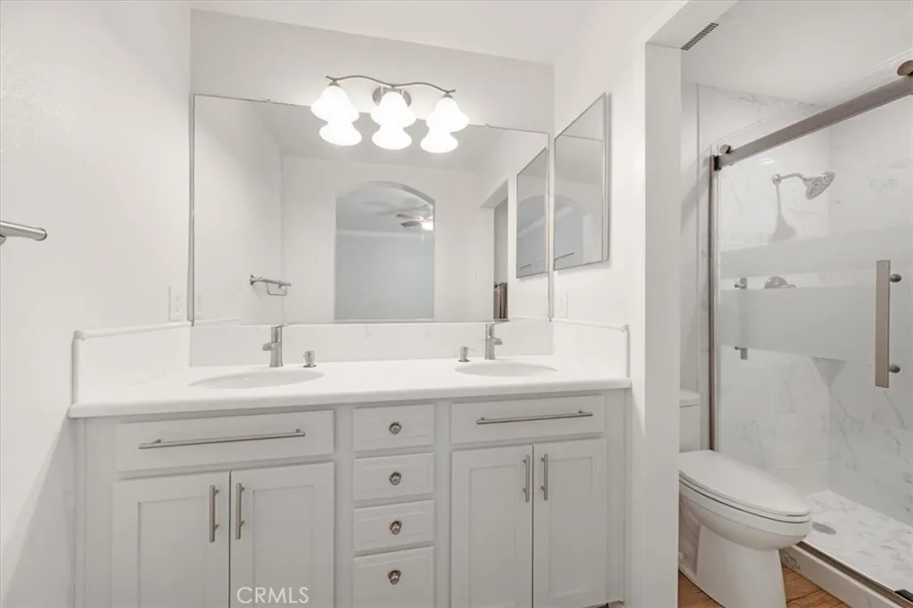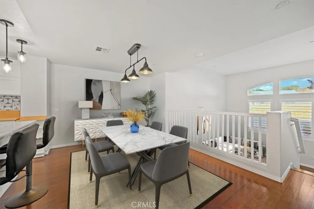 A unique split-level layout places the main living areas, kitchen, dining space, and all bedrooms and bathrooms slightly elevated above the entry and bonus family room, providing all the living space on one level. The home looks out over nearby hills and open space, offering a pleasant sense of privacy and openness. Designed with efficiency in mind, the floor plan maximizes usable space throughout. Extensively updated, the home features a fully remodeled kitchen with cabinetry, updated countertops, modern lighting, and pantry storage. Laminate flooring runs throughout the living areas, complemented by brand-new carpet in the bedrooms. Plantation-style shutters have been installed throughout, and the dining room fixtures have been upgraded. Both bathrooms have been remodeled, including a primary bathroom with dual sinks and new shower. Major appliances are included: refrigerator, washer, dryer, dishwasher, and gas stove. The garage offers 220-volt power. HOA covers landscaping, a gym, and clubhouse.