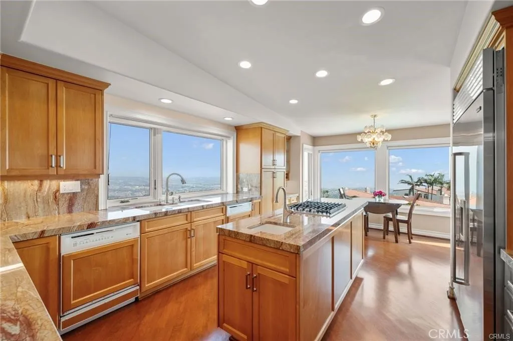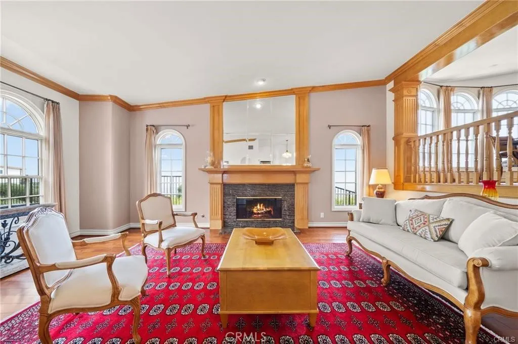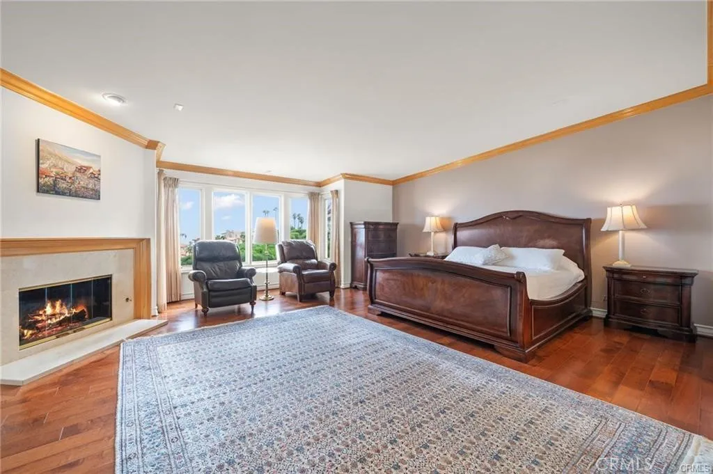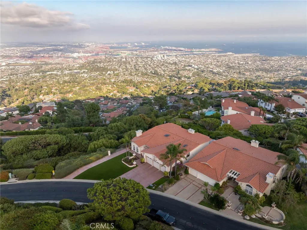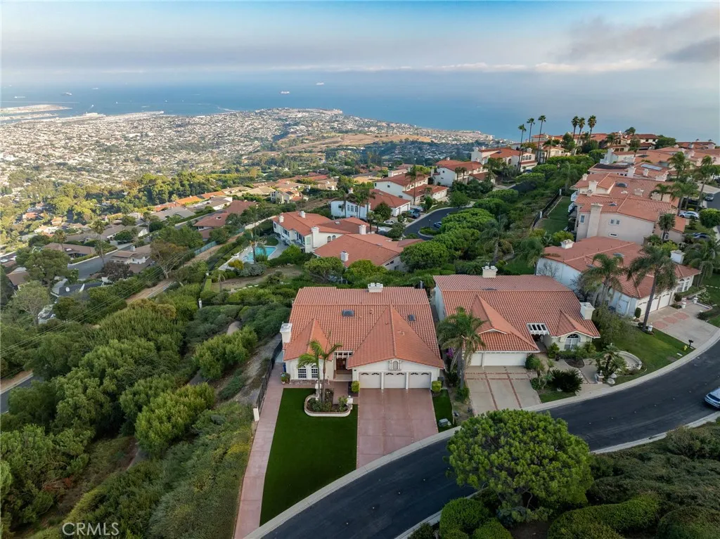 Price Improvement! | Priceless Views Breathtaking Pacific Ocean, LA Harbor, and Downtown LA skyline views from this coastal estate, set within an exclusive 24-hour guard-gated community of just 67 homes in Rancho Palos Verdes. Premium lot. Timeless design. True resort-style living. Double doors open to soaring vaulted ceilings, dramatic picture windows, and a marble fireplace. The layout moves effortlessly from the living room to formal dining and into a chefs kitchen with custom cabinetry, quartz countertops, a Sub-Zero refrigerator, three ovens, and dual dishwashers. The main-level primary suite captures sweeping ocean views and features a private fireplace, terrace access, and a spa-style bath with steam shower, jetted tub, dual vanities, and three walk-in closets. Three additional en-suite bedrooms on the lower level provide privacy and flexibility, along with a bonus room ideal for a theater, gym, or studio. Outside, new stone pavers and lush artificial turf create a low-maintenance outdoor retreat, with space ready for an outdoor kitchen or plunge pool. Minutes to Terranea Resort, championship golf, beaches, and top-rated Palos Verdes schools. Now priced aligned with the market and worth another look.