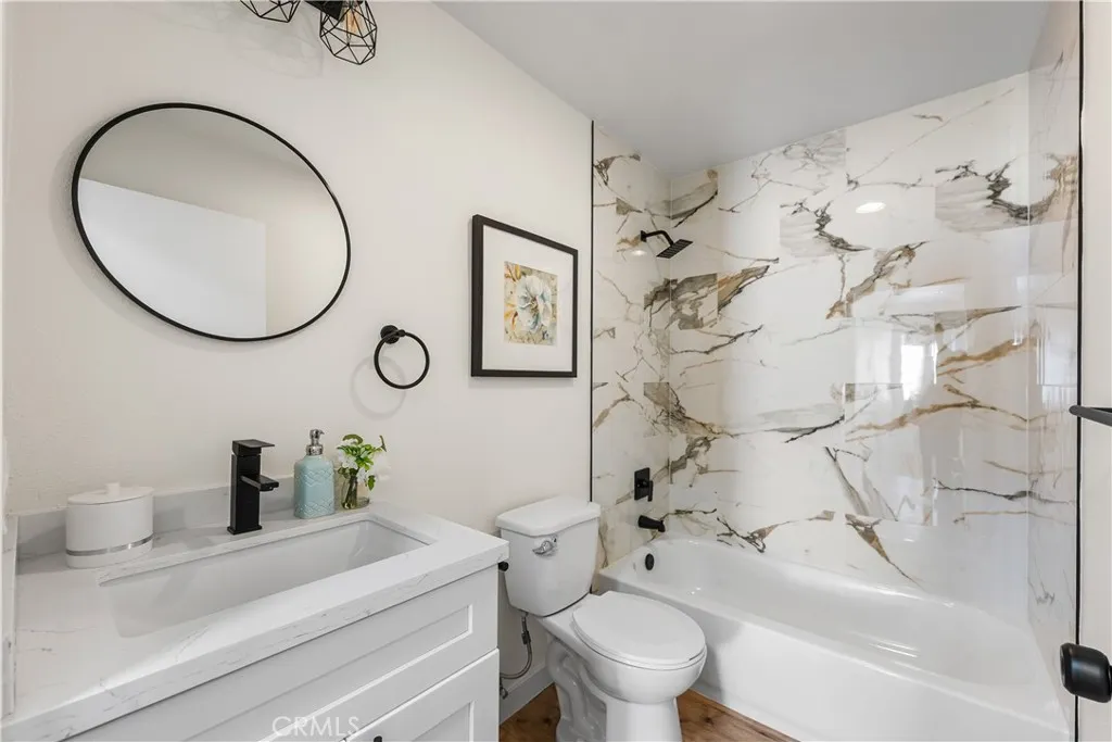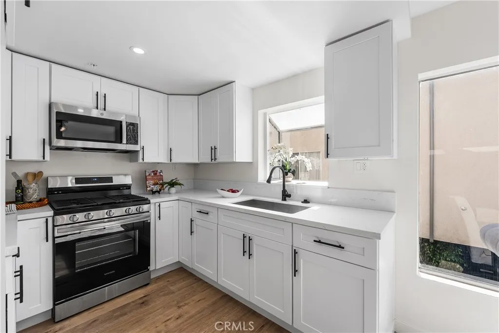 Stunning Fully Remodeled Townhome Move-In Ready! Welcome to this gorgeous, completely remodeled townhome offering space, style, and functionality! Featuring 5 spacious bedrooms, all with walk-in closets, and 3 beautifully upgraded bathrooms, this home is perfect for multi-generational living or anyone needing extra space. Brand-new white shaker kitchen is a showstopper, showcasing elegant quartz countertops, new stainless steel appliances, and modern fixtures. Enjoy fresh interior paint, new laminate wood flooring throughout, and updated lighting that creates a bright, contemporary feel. Downstairs bedroom functions perfectly as a mother-in-law suite, complete with its own kitchenette and an oversized walk-in closet ideal for guests or extended family. Additional highlights include a 2-car attached garage and access to community amenities featuring a security gate, sparkling pool, and relaxing spa. Turn-key, beautifully upgraded, and ready for its new owner this one checks all the boxes!
