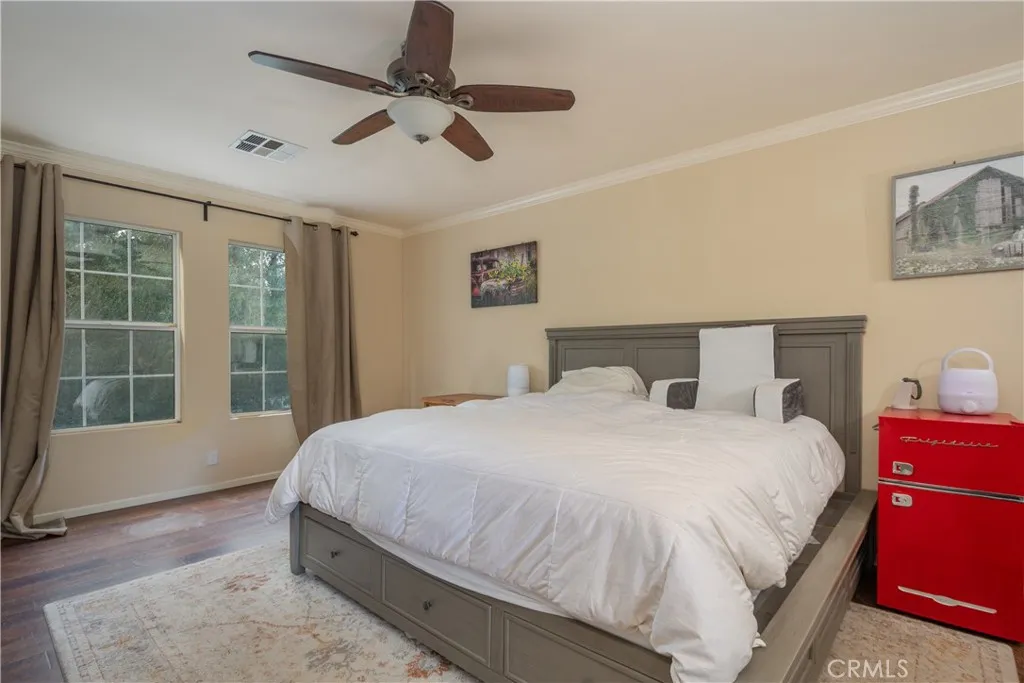 Secluded and private! Welcome to 6143 Wisteria Street, a well-maintained two-story single-family residence located in the desirable Santa Susana Knolls community of East Simi Valley. This home offers 3 bedrooms and 2.5 bathrooms with 1,820 sq ft of living space situated with privacy. The functional floor plan features all bedrooms upstairs, including a spacious primary suite with a walk-in closet and en-suite bathroom complete with double sinks, tub/shower combination, and linen storage. And a quaint Juliette balcony. The main level includes a welcoming living/dining room with fireplace, a very large family room, kitchen, laundry room, and one bathroom on the first floor. The remodeled kitchen is equipped with granite countertops, pot-and-pan drawers, and appliances including a dishwasher, free-standing range, range hood, disposal, and gas water heater. Flooring throughout the home consists of laminate, and tile. Additional interior features include central heating and air, granite counters, french and panel doors, and an individual indoor laundry room. The exterior offers a private backyard with deck, spa and patio areas, wood fencing, and neighborhood and tree/wooded views. A storage shed/garage provides added utility. Located in Simi Valley (has it's own school district) within Ventura County close to shopping, dining, schools, and commuter routes, this home presents an excellent opportunity to own a detached residence in a sought-after neighborhood.