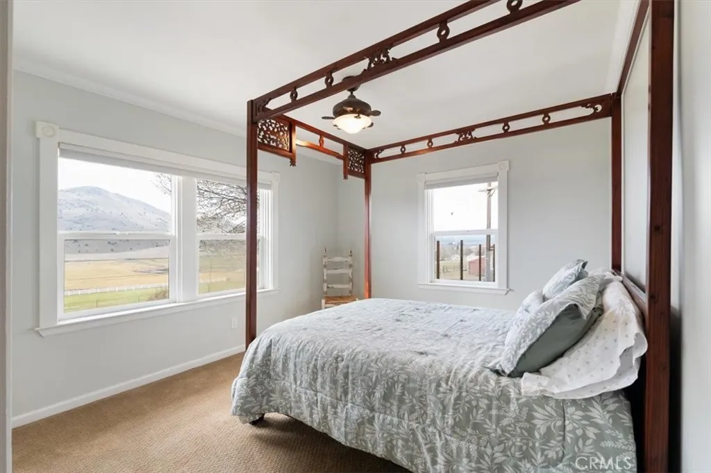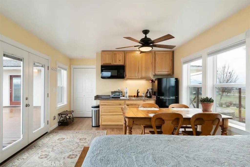 Stunning Hilltop Retreat with Panoramic Views and Endless Possibilities! Nestled atop a hill with a gated driveway, this exceptional property offers privacy and breathtaking panoramic views of Mt Shasta, the Eddies, and the surrounding valley. Located along a migratory bird path, this home is a birdwatchers paradise, providing abundant opportunities to observe wildlife both inside and out. Just down the road is the Shasta Valley Wildlife Area, where you can enjoy waterfowl hunting, fishing, hiking, and wildlife viewing. The property is ideally situated midway between Oregon for tax-free shopping and the city of Mt Shasta, known for its skiing and outdoor activities, offering a perfect blend of seclusion and access to adventure. With approximately 2300 sq ft of living space, this home was remodeled in 2019 and thoughtfully designed for comfort and style. The main house features 2 bedrooms, 2 full bathrooms, and a bonus office room that can easily convert to a 3rd bedroom. The luxurious master suite is a true retreat, boasting vaulted alder ceilings. large walk-in closet, & master bathroom featuring a custom tile dual-sink vanity and walk-in shower. The living room is designed to capture the stunning views, with a window wall that floods the space with natural light. A cozy wood stove fireplace insert with a custom hearth and built-in shelving add charm and functionality to this inviting space. The custom kitchen is a chef's dream, featuring hickory cabinets, granite countertops, and a large island with a prep sink. A charming window seat adds comfort and character, perfect f