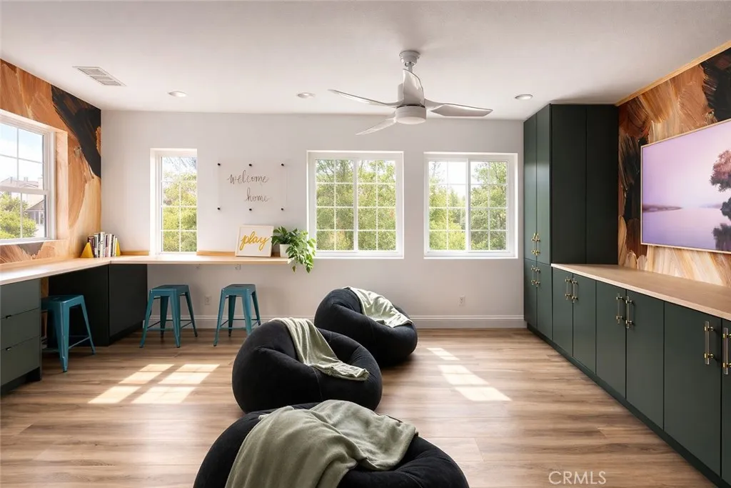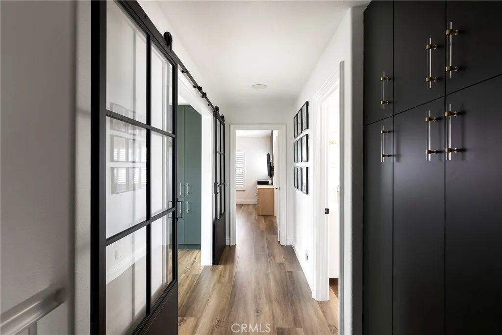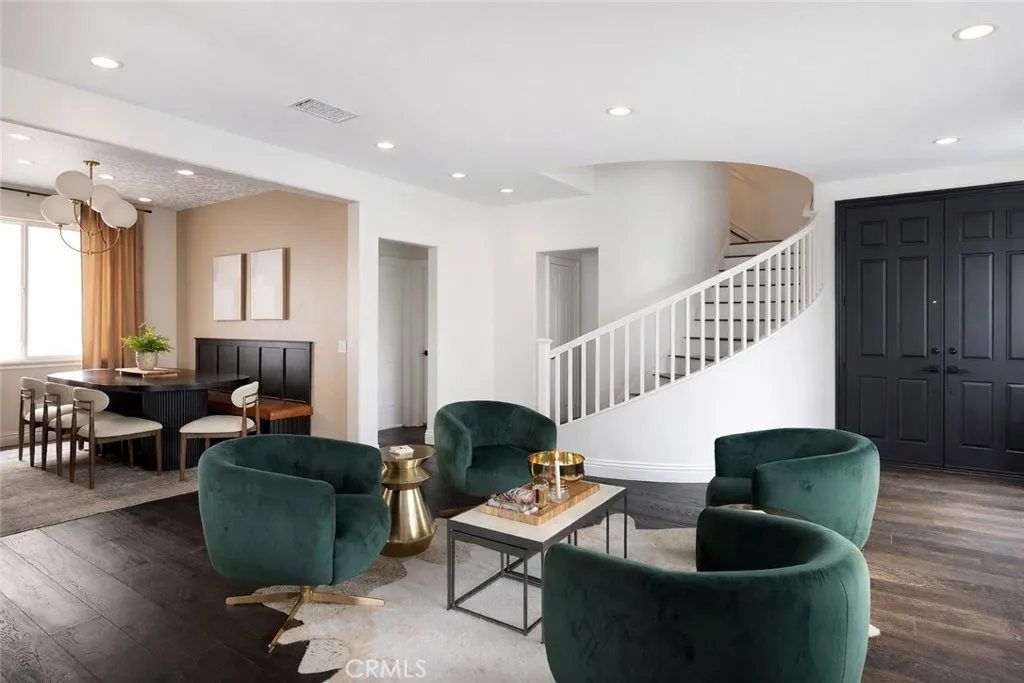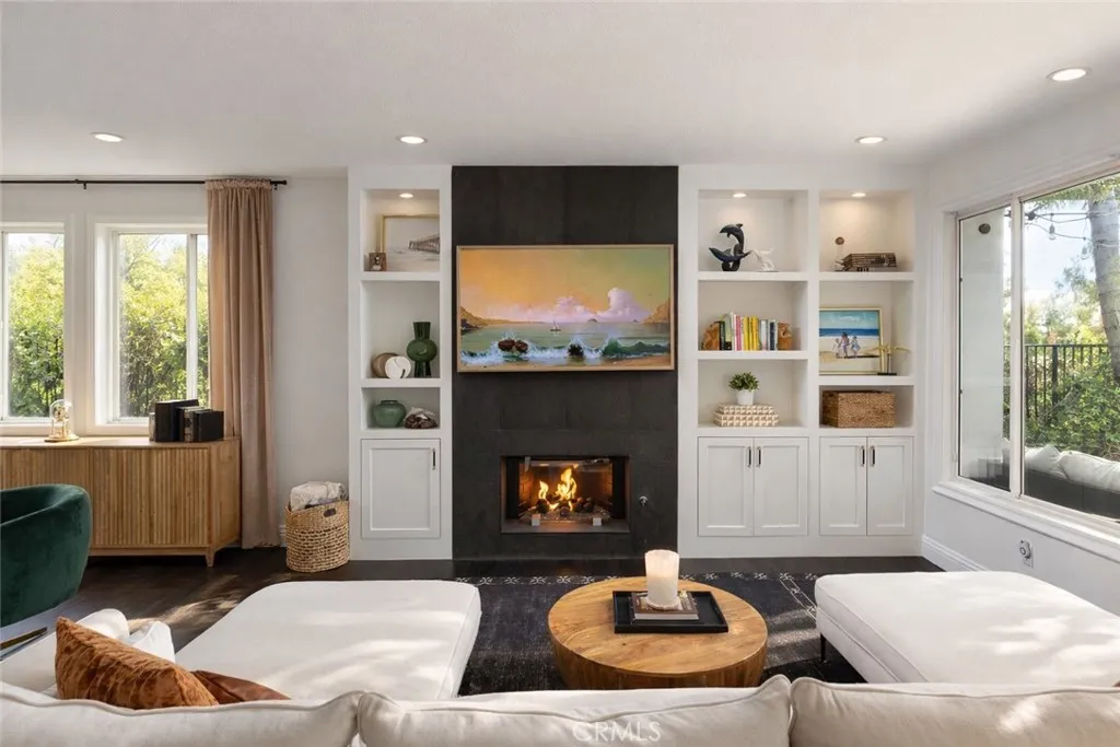 Thoughtfully upgraded with designer details at every turn, this extensively improved home offers a rare opportunity to enjoy a fully updated residence in guard-gated San Joaquin Hills. From the moment you step inside, the living room creates an inviting first impression. The space flows seamlessly into the family room in a beautifully open layout enhanced by the removal of the wall between the living and family rooms. Custom built-in cabinetry and a fireplace with designer tile create a warm and comfortable setting for everyday living. Just beyond, the dining room becomes a statement space with designer wallpaper, a Mitzi chandelier, and a custom built-in dining bench designed for intimate meals and memorable gatherings. The chefs kitchen serves as the heart of the home, showcasing Carrara marble countertops, an Italian glass tile backsplash, white Shaker cabinetry, a 6-burner Wolf range, Viking hood with heat lamps, double ovens, Bosch dishwasher, wine refrigerator, and a stainless steel farmhouse sink with reverse osmosis filtration. French doors extend the living experience outdoors to a thoughtfully designed backyard with designer tile hardscape, artificial turf, and a modular BBQ station ideal for year-round entertaining. The main level features a flexible bedroom with a built-in Murphy bed and an updated Carrara marble bathroom, ideal for guests, multigenerational living, or a private office. Upstairs, the loft addition offers versatility and may serve as a sixth bedroom, providing a private retreat with iron and glass doors, custom media cabinetry, and a built-in wor