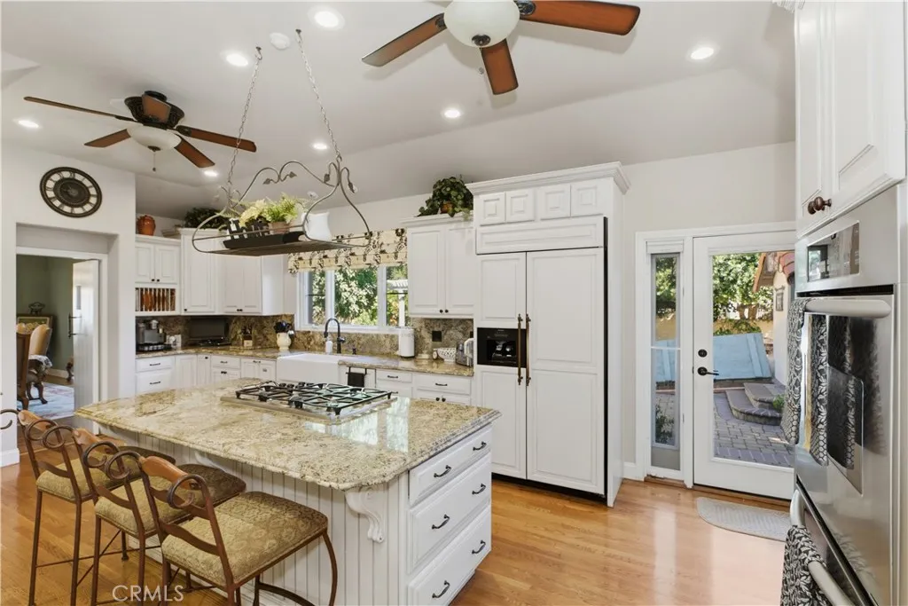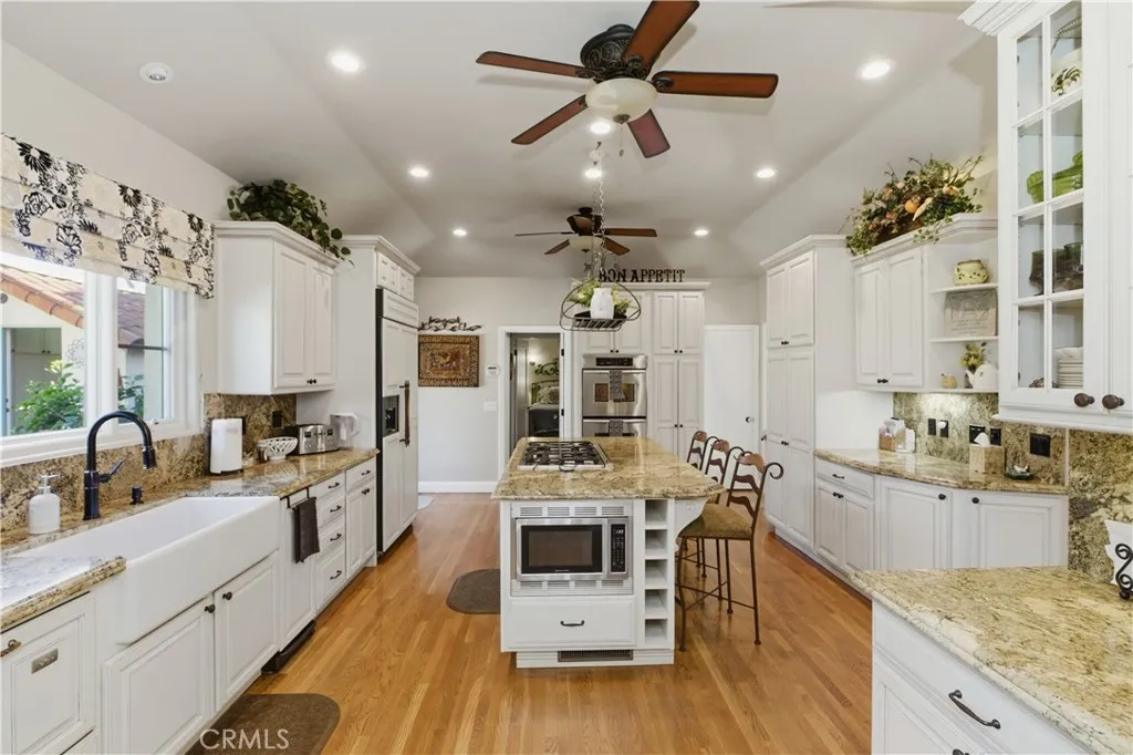THIS ARCHITECTURAL MASTERPEIECE DESIGNED BY FAMOUS ARCHITECT, HENRY JEKEL SITS ON POPPYHILL, PART OF BALMORAL ESTATES OVERLOOKING THE CITRUS GROOVES THAT ARE OFF VICTORIA. THIS COLONIAL SPANISH REVIVIAL -HACIENDA STYLE HOME SITS ON 1.37 ACRES OF LUSH GARDENS MULTIPLE SPECIES OF FLOWERS, TREES AND FLORAL BUSHES INCLUDING CITRUS TREES. THIS HOME AND LANDSCAPING WAS REMODLED IN 2005 WITH FOCUS PAID TO THE HISTORIC NATURE AND BEAUTY OF THIS HOME. THE ENTRY WALKWAY IS LINED WITH DECORATIVE SPANISH TILES LEADING TO A SOLID WOOD DOOR ENTRANCE THAT LEADS TO A MASSIVE LIVING ROOM WITH VALUTED CELINGS, WOOD FLOORS AND FIREPLACE. AJACENT TO THE LIVING ROOM IS A STUNNING, SPACIOUS DINING ROOM WITH HIGHLIGHTED JEKEL STAIN GLASS OF INCREDIBLE DESIGN, OFF THE LIVING ROOM IS THE MORNING FAMILY AREA THAT IS OPEN AND LIGHT AND HAS BEAUTIFUL VIEWS OF GARDEN AND CITY. THE REMODELED GOURMET FARMHOUSE KITCHEN HAS A CENTRAL ISLAND WITH UPGRADED APPLIANCES, APRON SINK AND A WALK IN PANTRY THAT LEDS TO A 322 SF BASEMENT. THE HACIENDA PATIO IS PERFECT FOR ENTERTAINING AND THE BACK YARD ENTERTAINMENT AREA HAS A LARGE POOL AND BUILTIN BBQ AREA ALONG WITH STUNNING LIGHTING THAT SHOWS OFF THE BEAUTIFUL TREES AND LANDSCAPING IN THE EVENING. THE MAIN HOUSE IS 3 BEDROOMS , 3 BATHROOMS-3709 SF WITH A SEPARATE LAUNDRY HOUSE, WHICH IS 150 SF AND THE CASITA IS 298 SF , 2 BEDROOMS WITH NEW MINI-SPLITS AND A NEW ROOF AND INSTANT HW HEATER. THER IS A SEPARATE WINE BUILDING WITH AC AND WINE CELLAR. THERE ARE ALSO 2 SHARES OF GAGE CANAL SHARES THAT WILL GO WITH SALE. THIS HOME AND GROUNDS HAS INHERENT SPITRUAL AND