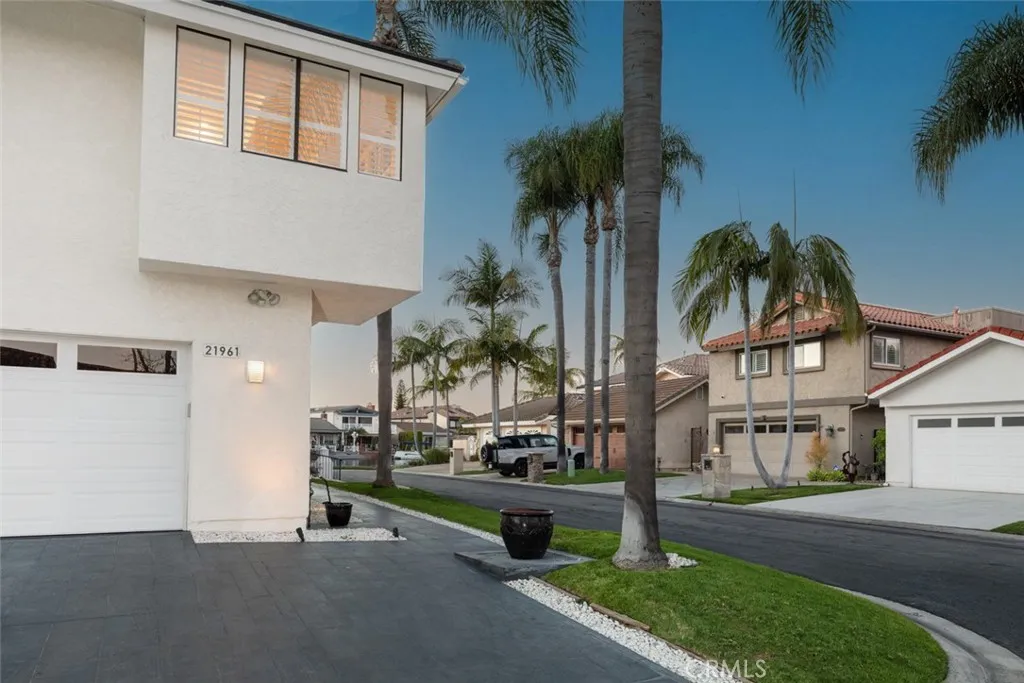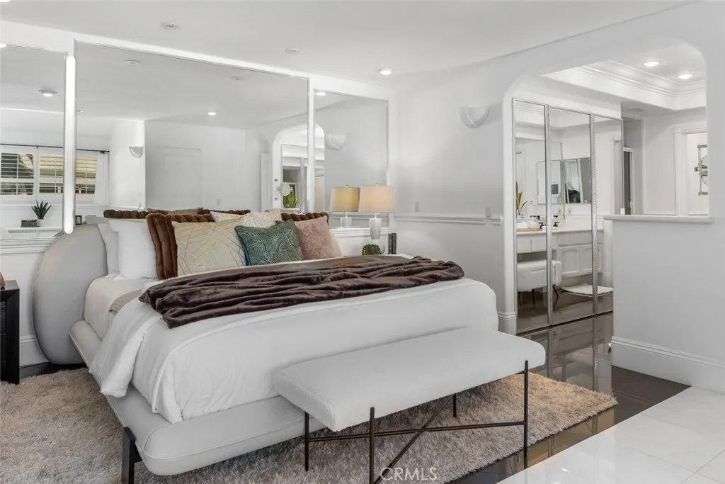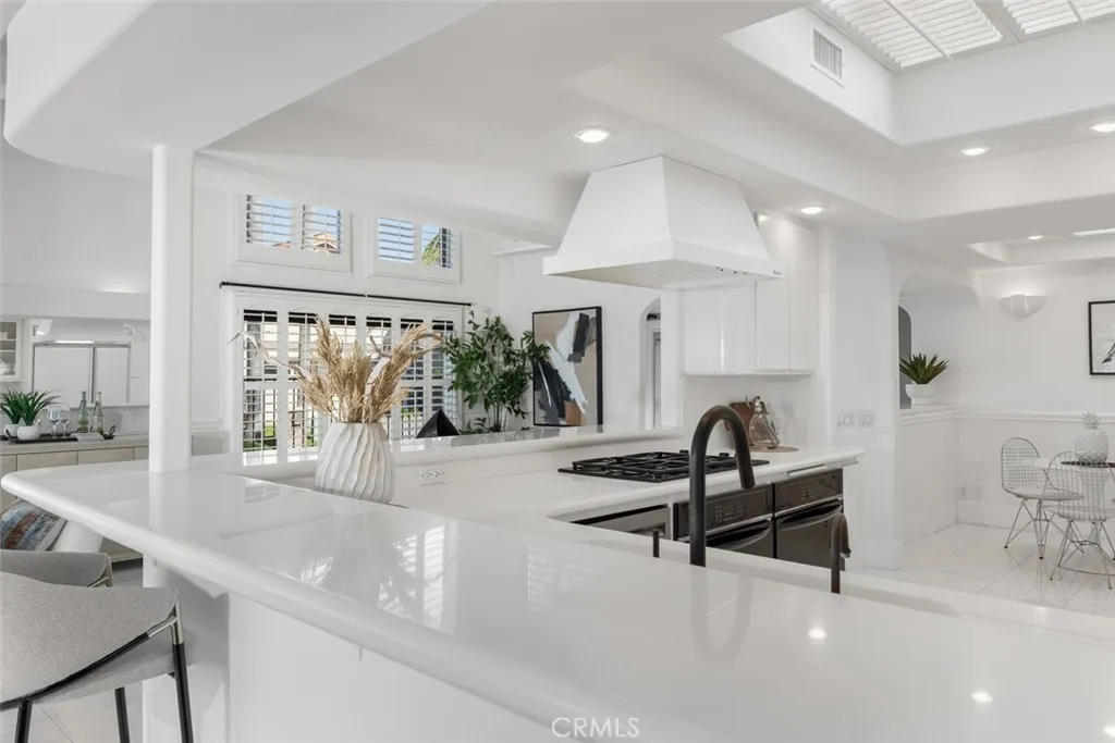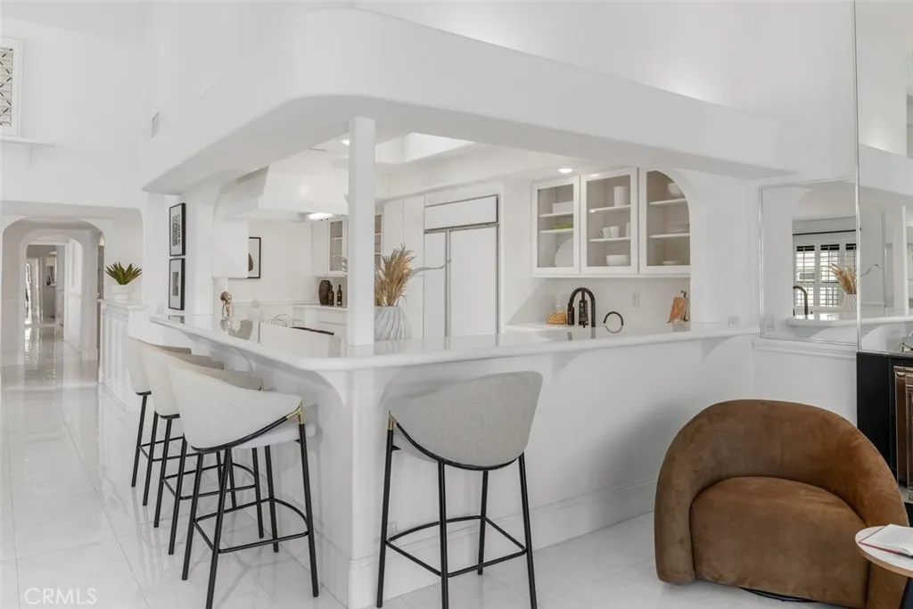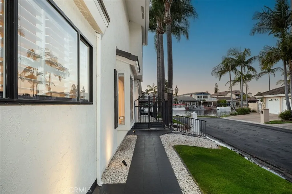 This residence reads less like a conventional home and more like a study in proportion, light, and reflection. Positioned on a rare inside corner lot, the property opens outward to a broad main channel panorama where the water widens and the horizon lingers. From nearly every vantage point, the lake becomes part of the composition, not simply a backdrop but a constantly shifting material that animates the house throughout the day. The exterior presents a restrained modernist language, crisp planes of white softened by shadow lines from mature palms and the geometry of the dock beyond. As the home wraps the corner, it reveals itself gradually, a sequence rather than a faade. The waterline deck extends like a continuation of the living space, dissolving the boundary between structure and shoreline. Inside, the plan unfolds with an almost gallery-like clarity. Surfaces remain intentionally calm, allowing volume and perspective to take precedence. Wide openings frame long water views that shift as you move, producing a subtle sense of procession through the home. The living spaces orient toward the channel, while softer, more intimate moments appear along the periphery, reading corners, curved seating arrangements, and layered sightlines that create both openness and refuge. The kitchen sits as a sculptural center rather than a separate room, its soft forms and pale palette reflecting daylight deeper into the interior. Two primary suites, one upstairs and one downstairs, allow the home to function across different rhythms of living. The lower suite maintains immediate connectio