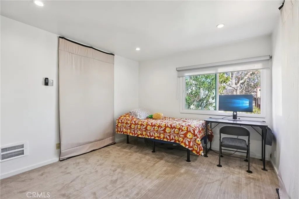 Perched at the top of The Pines in Culver City, this home might just be the quiet achiever youve been waiting for. Top floor? Check. Two bedrooms, two full baths? Absolutely. No shared wallsjust one neighbor below? Yes, really. Its the kind of place that feels almost too good to be true but spoiler alert: its not. Inside, sunlight pours through generous windows, bouncing off sleek vinyl and carpeted floors and highlighting a fully renovated, modern aesthetic thats equal parts polished and practical. The kitchen is dialed in with stainless steel appliances, quartz countertops, and contemporary cabinetryready for weeknight takeout plating or your next I found this recipe on Instagram moment. The living space flows effortlessly to a private balcony with treetop and courtyard viewsmorning coffee in the fresh air, evening wind-downs with a glass of something chilled, and just enough elevation to feel like your own little retreat above it all. The primary suite? Spacious enough for a king-sized bed (and then some), complete with a large walk-in closet and a remodeled bath featuring dual vanities and a sleek shower setup. The second bedroom and full bath offer flexibilityguest space, home office, Peloton studio, or all of the above. And then theres the lifestyle factor. Living at The Pines means access to a sparkling pool, sauna, clubhouse, conference room, rec room, and on-site managementall within a gated community. Two tandem parking spaces in the garage make coming and going easy, and the central location near the 405 and 90 means the entire Westside is basically at your finge