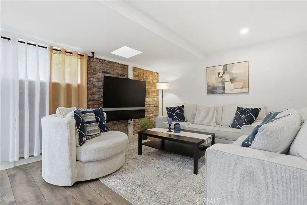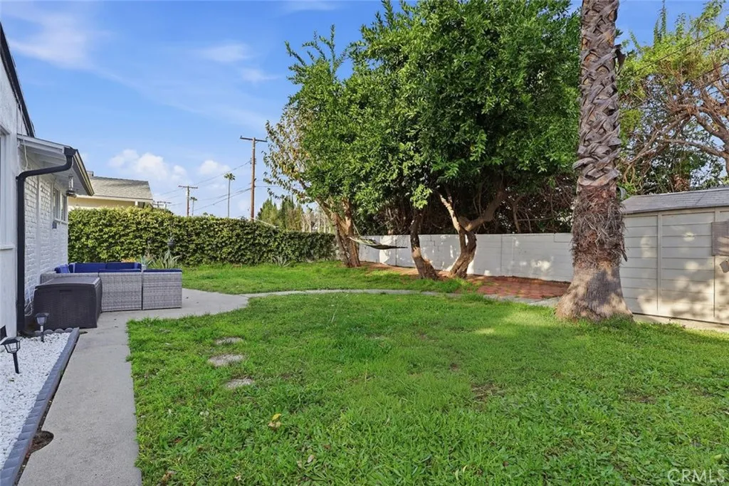 Welcome to 7042 Morse Avenue A beautifully updated 4-bedroom, 2-bath single-family residence offering 1,858 square feet of comfortable living in the heart of North Hollywood. Tucked away on a picturesque, tree-lined cul-de-sac in one of the neighborhood's most desirable pockets, this move-in ready home blends thoughtful modern upgrades with warm character and timeless charm. Designed with a functional floor plan and filled with natural light, the home sits on an expansive 7,185 sq ft lot, perfectly suited for the indoor-outdoor California lifestyle. The spacious kitchen features Corian countertops, dual sinks, stainless-steel appliances, and an adjacent dining area ideal for everyday meals or hosting gatherings. The generous living room centers around a cozy fireplace and flows seamlessly into a welcoming den, highlighted by a skylight and direct access to the backyard patio. The outdoor space has been extensively upgraded with beautiful stonework, enhanced lighting, refreshed landscaping, new lawn installation, and a restored automatic sprinkler system, creating a private retreat ideal for entertaining or relaxing. Inside, you'll find brand-new flooring, updated interior lighting, new interior doors, and a complete interior repaint. Both bathrooms have been improved, including a major renovation of one shower room and partial updates to the second. Unique design elements such as a striking solid oak decorative arch and a restored exposed brick wall add distinctive texture and personality throughout the home. All four bedrooms are generously sized, offering flexibility for