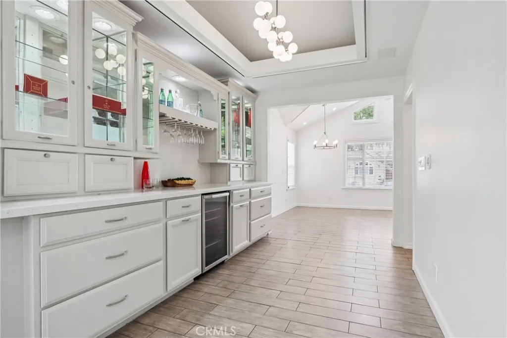 Imagine a single-level stunner with a designers touch. This 3-bedroom, 3-bath beauty will have you captivated from the curb. Stacked stone walls, meticulous dry scaping, and a wide front yard set the tone as you arrive on this picturesque, tree-lined street. A terraced pathway leads to the sizeable porch, ideal for showcasing seasonal decor or chatting with passersby. Inside, wide-plank floors stretch under vaulted ceilings, with recessed lighting and crisp white hues giving the home an effortlessly modern air. The flow is seamless between the sunlit living room illuminated by bright windows and a refined dining hall, where built-in display shelves, a tray ceiling, and a dry bar stand ready for intimate celebrations. Your kitchen is equal parts function and flair: track lighting spotlights every culinary move, and the luminous countertops shine beside stainless steel appliances and an oversized sink. A waterfall-edge multi-seater peninsula gleams beneath pendant lights, inviting conversation while delicacies take shape under diligent hands. In the generous step-down family area, skylights crown soaring ceilings, while an accent wall creates a counterpoint to sliding glass doors that frame the connection to a private oasis. Your entertainers backyard is a secluded haven, whether gathered under the gazebo beside the fire pit or enjoying quiet evenings sipping cocktails on the custom hardscaping bordered by living pathways. When its time to unwind, tranquility can be found in any of the well-proportioned bedrooms, each with a contemporarily designed bath conveniently at hand.