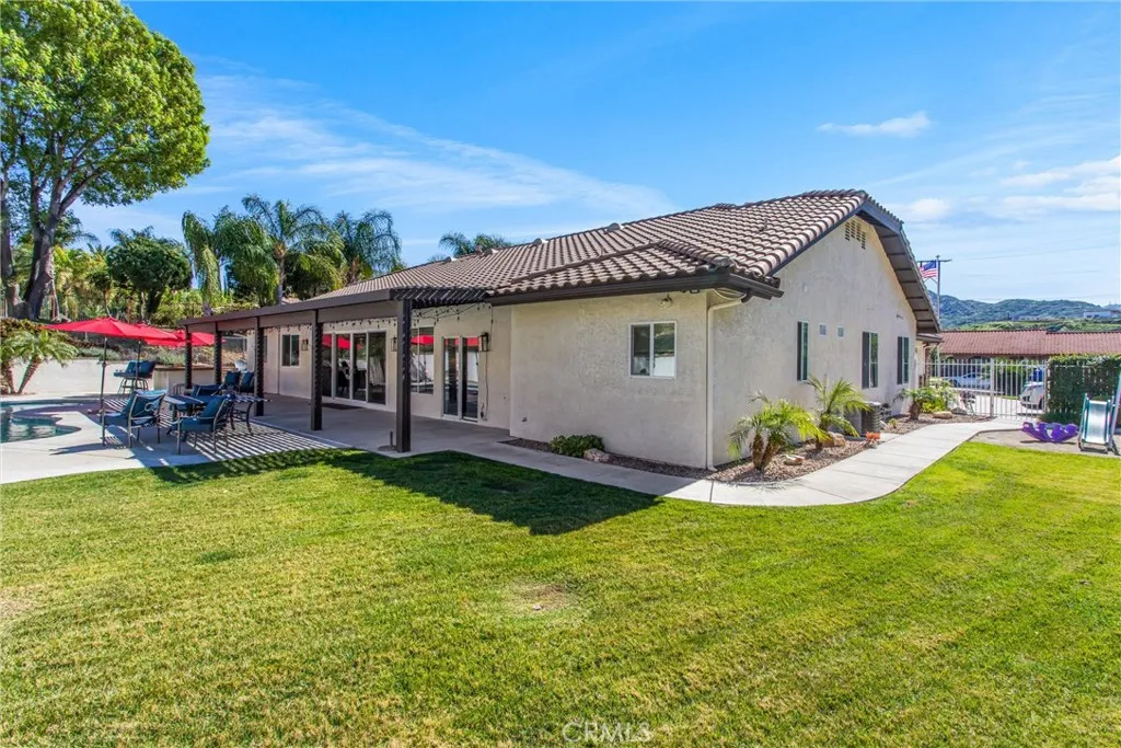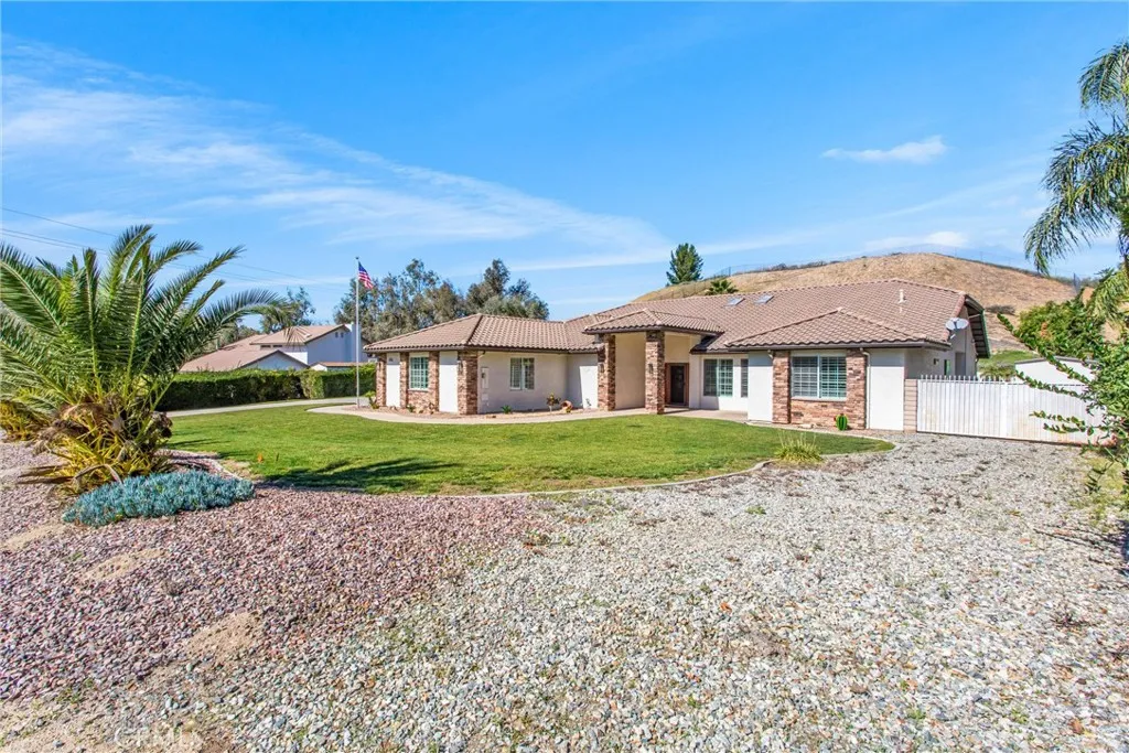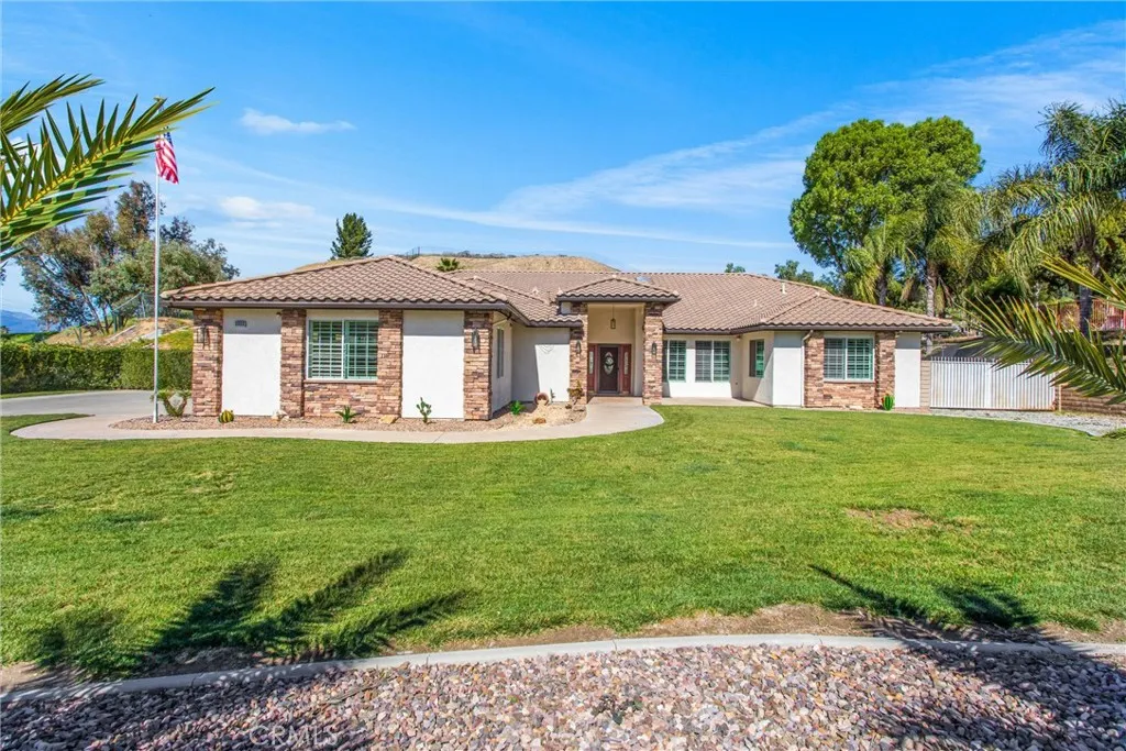 "Recently Improved price-incredible opportunity!" Luxury living just became more attainable! Private 1-Acre Estate Minutes from Loma Linda Medical Center-Designed for the Professional or multigenerational living. Nestled in the scenic hills of Reche Canyon, this stunning custom built single-story estate offers space, privacy and thoughtful upgrades throughout. Built in 2002 and lovingly maintained by the original owners, this expansive 3,712 sq ft residence features 5 bedrooms and 3.5 bathrooms on a sprawling 43,560 sq ft(1-acre) lot. Designed with an Open floor plan and built with quality 2x6 construction, the home showcases hardwood and tile flooring, a beautifully renovated kitchen with granite countertops, island and abundant cabinetry. The spacious primary suite is a true retreat complete with a cozy fireplace, motorized remote-control blinds, and a fully renovated spa-inspired bathroom featuring quartz countertops. Additional highlights include two full bathrooms, Corian countertops in secondary spaces, a whole house fan, dual HVAC systems for energy efficiency and a tankless water heater, a central vacuum system throughout the home and garage for added convenience. Car enthusiasts and entertainers alike will appreciate the oversized 4-car garage with epoxy flooring and custom-designed cabinetry, plus RV parking with sewer drain access and two separate driveways providing ample parking. The home is pre-wired for an indoor/outdoor speaker system and equipped with an ADT security system, outdoor camera system and Starlink satellite dish. Step outside to your private bac