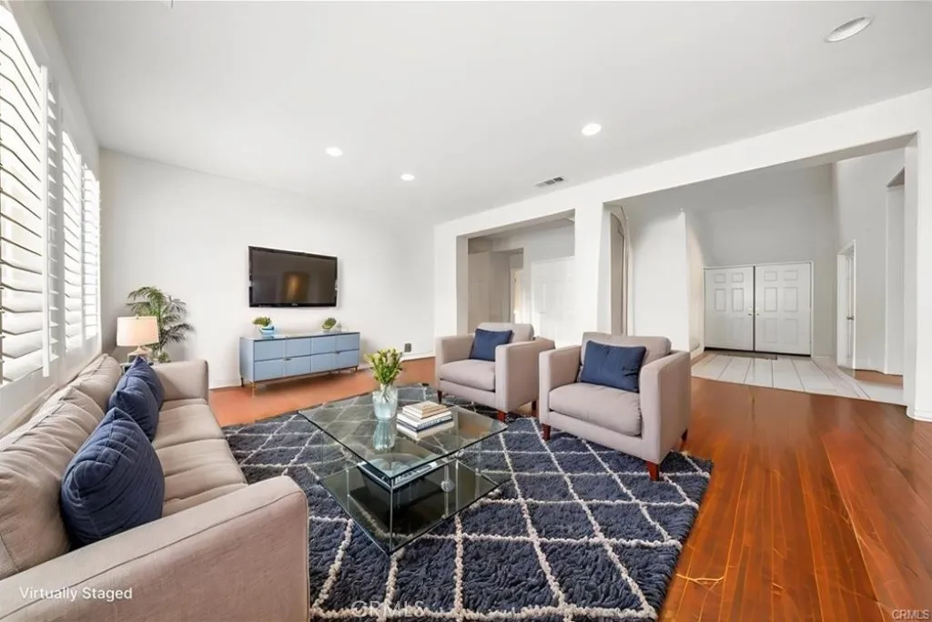 Elegant 6 Bedroom Home with ADU Potential in Prime Eastvale Location Welcome to this beautifully maintained and newly painted 6-bedroom, 4.5-bathroom residence located in one of Eastvales most desirable neighborhoods. Built in 2004, this expansive home offers approximately 3,849 sq ft of living space on a generously sized lot, providing both comfort and flexibility. The open floor plan features hardwood flooring, recessed lighting, and a bright family room anchored by a cozy fireplace. The gourmet kitchen includes granite countertops, a spacious center island, and stainless steel appliances. A full bedroom suite on the main floor adds convenience, while the upstairs primary suite offers a double-door entry, a walk-in closet, and ample space to unwind. Additional upgrades include custom shutters, cathedral ceilings, a wood-rail staircase, and an abundance of natural light throughout. The large backyard is ideal for entertaining and gardeningand offers excellent potential for future ADU expansion. This home is situated in a highly rated school district, with no HOA, and is just minutes from parks, shopping centers, and major freeways (I-60 and I-15), making it perfect for families and commuters alike. Eastvale is one of Southern Californias fastest-growing cities, offering a vibrant community and strong long-term valuean ideal location for investment and personal living.