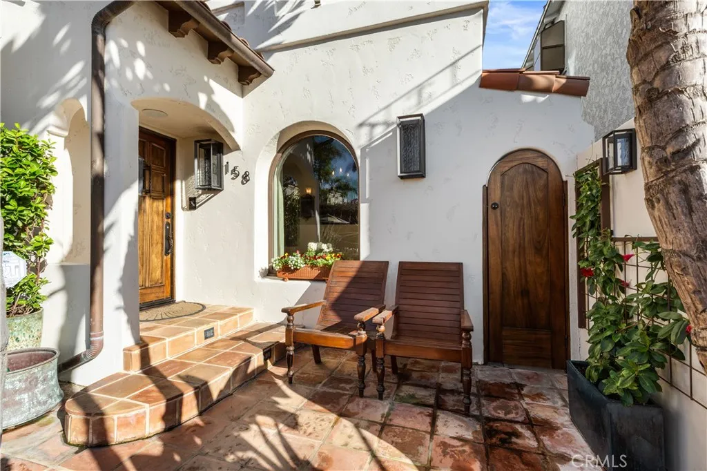 Located in the heart of Belmont Shore, this newer custom Spanish-style home, built in 2002, blends classic architectural character with modern upgrades and high-end finishes throughout. Enter through a gated, landscaped front patio framed by palm trees, an inviting introduction to the home. Inside, rich hardwood floors, plantation shutters, and ceiling fans create warmth and cohesion throughout the 3 bedroom, 3 bath layout. The living room welcomes you with a stunning custom-tiled fireplace, an arched picture window that fills the space with natural light, and seamless flow into the dining area. The dining room features charming built-in china cabinets, adding both character and functionality. The gourmet kitchen is designed for both everyday living and entertaining, offering custom wood cabinetry, granite countertops, stainless steel appliances, and a breakfast counter for casual dining. Down the hall, youll find a beautifully appointed bath with a walk-in shower, wine storage, and access to the attached two-car garage complete with built-in storage and workspace, plus an additional full-sized parking pad. A circular staircase with wrought iron railing leads to the upper level. Upstairs, two generously sized bedrooms share a full hall bath. A convenient laundry room with sink and a charming office nook provide added functionality. The spacious primary suite is a true retreat, featuring its own fireplace and sliding doors that open to a private balcony. The ensuite bath offers a soaking tub, travertine tile, and a walk-in closet. And thenthe star of the show. Just a short f