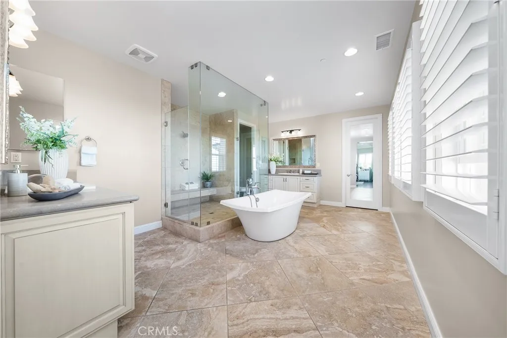 Welcome to 17 Calliope A Luxurious Retreat built by Toll Brothers with Unmatched *Panoramic Views* in the Prestigious Baker Ranch Community. Discover elevated living in this exquisite 5-bedroom, a large loft and 5.5-bathroom estate, offering 4,224 sq ft of thoughtfully designed space with upgraded floorings. Perched on a premium lot with sweeping panoramic views, this home seamlessly blends modern elegance with exceptional functionality. Step through the grand foyer, where soaring high ceilings and a striking circular staircase make a dramatic first impression. The open-concept layout is enhanced by 2 glass bi-fold doors, creating a seamless transition between indoor and outdoor living. Relax and entertain year-round under the covered California room with built-in BBQ while soaking in breathtaking sunset vistas. The gourmet kitchen is a chefs dream, featuring an oversized island, high-end appliances, built-in refrigerator and beautiful backsplash. Its open design flows effortlessly into the living and dining areasperfect for entertaining friends and family. A private first-floor bedroom with an en-suite bath offers convenience and privacy for guests or multigenerational living. Upstairs, a large loft provides flexible space for a media lounge, playroom, or home office. The luxurious primary suite includes a tranquil sitting area (ideal for a second office), a spa-inspired en-suite bath, and direct access to a spacious covered deck with forever views. Each of the secondary bedroom suites is larger in size and has generous closet space. Direct access to 3-car garage with epo