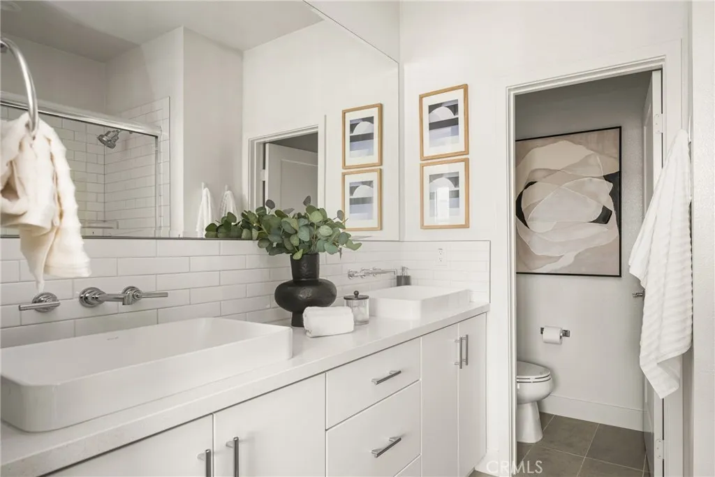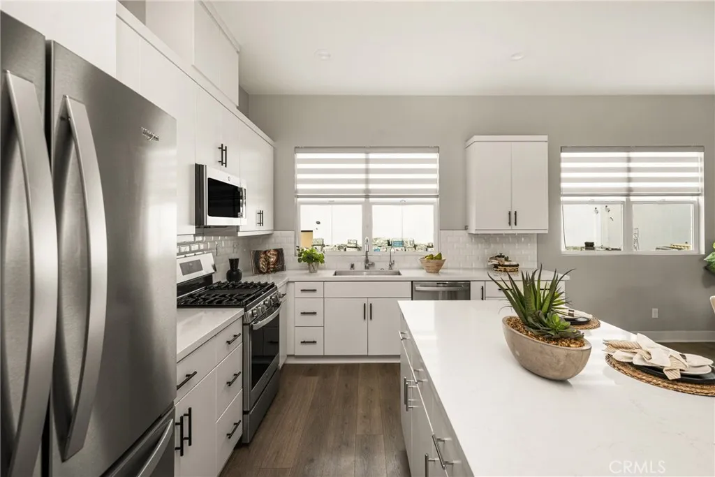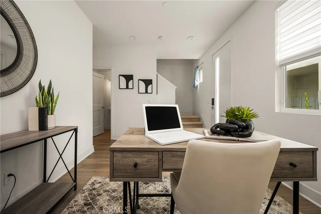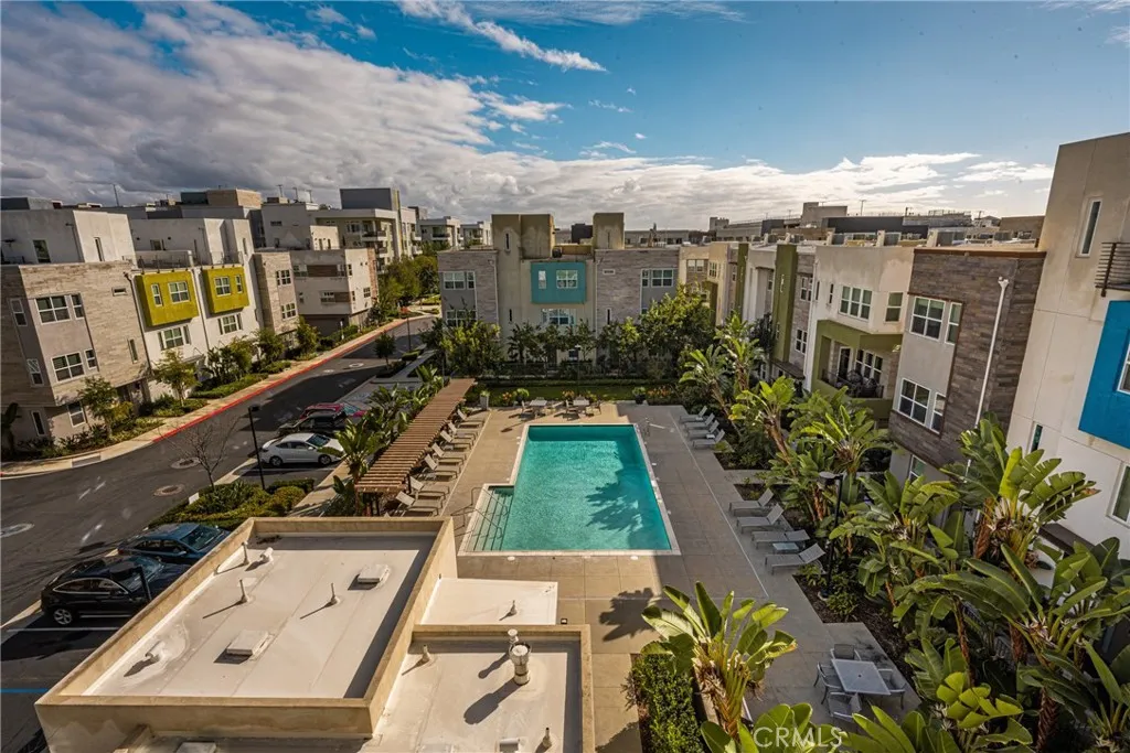 Turnkey Modern Townhome in the heart of Anaheims Platinum Triangle featuring 3 Bedrooms plus a Den, a PRIVATE ROOFTOP DECK, and a direct-access 2-car garage. Ideal for a first-time buyer or investor, with strong rental potential of approximately $4,300 per month. Tucked toward the back of the community, the home offers enhanced privacy in a prime location. The thoughtfully designed floor plan begins with a Den and Powder Room upon entry, providing flexible space for a Home Office, Gym, or sitting area. The Second Level showcases an expansive, light-filled Great Room with high ceilings and walls of windows that flood the space with natural light. The open Chefs Kitchen is designed for entertaining and features white shaker cabinetry, quartz countertops, a white subway tile backsplash, stainless steel appliances, and an oversized island that flows seamlessly into the Dining Area and Great Room. The Third Level offers 3 generously sized bedrooms, including a luxurious Primary Suite with a spa-inspired bathroom, dual vanities, walk-in shower, and a large walk-in closet. secondary bedrooms are thoughtfully positioned at the opposite end of the hall and share a spacious guest bathroom with a soaking tub. Laundry is conveniently located on this level. Escape to the Oversized Private Rooftop Deck to enjoy stunning City and Pool Views. Perfect for relaxing, entertaining, and stargazing, this space truly elevates the home. Energy-efficient features include EV charging, a tankless water heater, and a dual HVAC system. Located just minutes from Disneyland, the Honda Center, Angels Stad