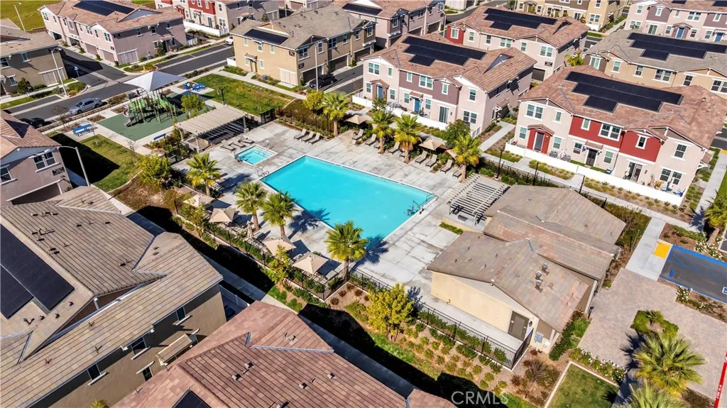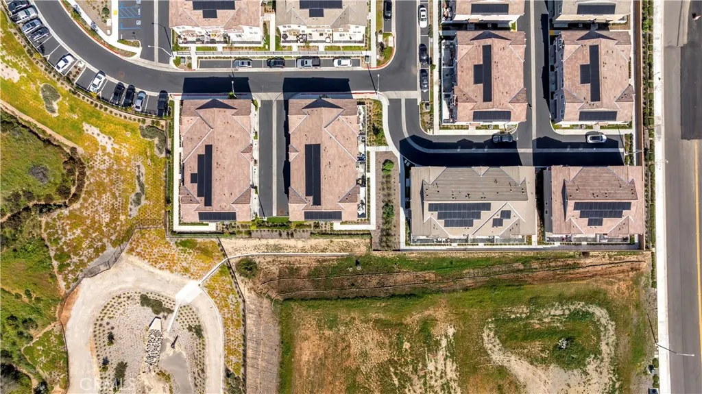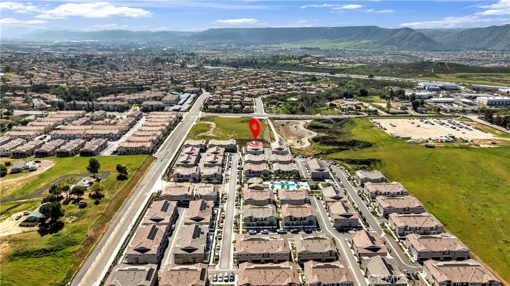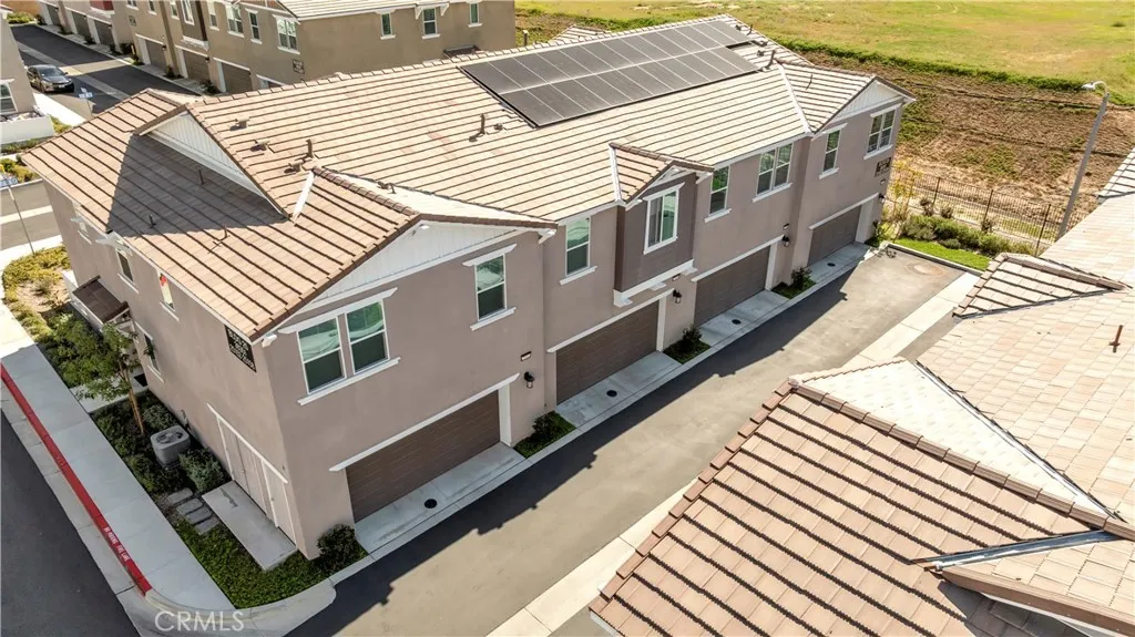 BEAUTIFULLY UPGRADED END-UNIT HOME WITH PAID OFF SOLAR IN THE ALLURING HORIZON PLACE COMMUNITY, OFFERING SCENIC HILL VIEWS AND NO REAR NEIGHBORS. This light and bright residence features 3 bedrooms plus a spacious loft and 2.25 bathrooms with soaring 9-foot ceilings and upgraded vinyl flooring. The open floor plan includes a large family room and dining area that flows seamlessly into the open kitchen with stainless steel appliances, granite countertops, center island with breakfast bar, and ample cabinetry. The expansive Primary Suite offers views and a private bathroom with dual sinks, step-in shower, linen storage, and a large walk-in closet. Spacious secondary bedrooms provide flexibility for guests, office, or hobbies. Additional features include a large 2-car garage with direct access, tankless water heater, paid solar system, ceiling fans, indoor laundry room with washer and dryer included, and a private patio courtyard. As a bonus, the home and carpets have been professionally cleaned and are move-in ready. HOA amenities include a pool, spa, firepit, BBQ area, playground, and manicured landscaping. Conveniently located near shopping, hospital, dining, and easy access to the 15 Freeway, making it ideal for commuters.