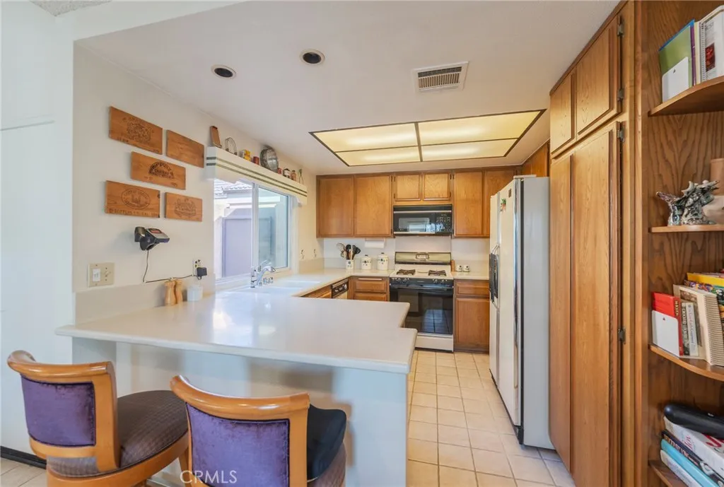 Meticulously cared-for and rarely available, this charming upper carriage style condominium offers privacy, security, and style. Entry is through a fully enclosed front patio with a locking gate and solid front door, creating a welcoming and secure entryway perfect for entertaining and BBQing. The kitchens thoughtful square layout with cabinets on all sides includes a large solid-surface peninsula for expanded preparation and serving, opening to the dining area and providing smooth, functional flow like a well-choreographed ballet for cooking and entertaining. Unique California Deluxe Windows open inward for easy cleaning. Thoughtful upgrades include canned lighting in the dining and living areas, providing easier maintenance in the dining area and freeing space in the living room for additional seating, as well as custom master and hallway closets, reflecting careful, loving upkeep by the third owner over 32 years. The gated Millstream community is lush and serene, featuring streams, water features, walking paths, and landscaped greenbelts with seating to enjoy the sights and sounds. Residents enjoy a pool, spa, and tennis court. Ideally located with easy freeway access and close to shopping, dining, and the beach, this rare home offers privacy, charm, and a peaceful coastal lifestyle.