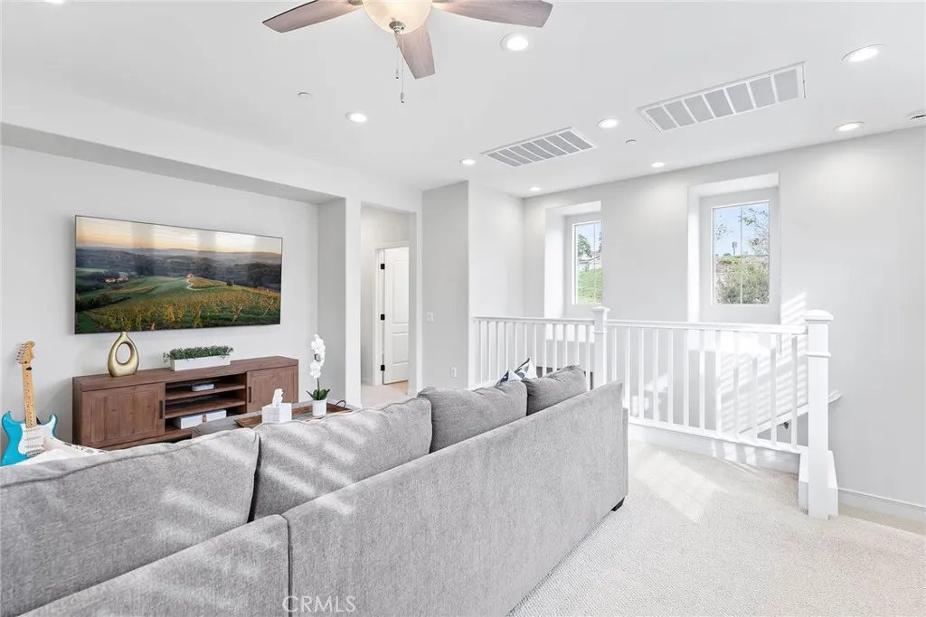 Outstanding corner home offering comfortable 55+ resort-style living in Rancho Mission Viejo. The open main living area features wide plank French oak flooring, 9-foot ceilings and a kitchen with seating at the granite island, stainless steel appliances, soft close drawers, abundant cabinetry, and a separate dining area flowing into the family room. Sliding doors open to a covered patio and additional side yard space for easy indoor-outdoor living. The main level includes a primary suite with custom woodwork, dual sinks, marble backsplash, zero-entry shower and spacious walk-in closet. Also on the main level is an additional bedroom, full bath, spacious laundry room with ample cabinetry, and direct garage access. Upstairs offers a large private retreat with a secondary living area, bedroom and full bath. The home also includes AC, whole house fan, fresh interior paint and crown molding, as well as plantation shutters throughout. Unwind at the 55+ amenities, including but not limited to the Getaway Clubhouse (a short walk away) or The Outlook where you can enjoy the lap pool, cabana space, indoor-outdoor dining areas, barbecues, fire pits and TVs. Additional amenities include fitness centers, social clubs, activities and more. When family/friends visit, venture over to the nearby Hilltop Club pool, bar, gym, spa, bocce ball and arcade. Close to shopping, dining and South Orange County destinations. Do not miss this exceptional opportunity!