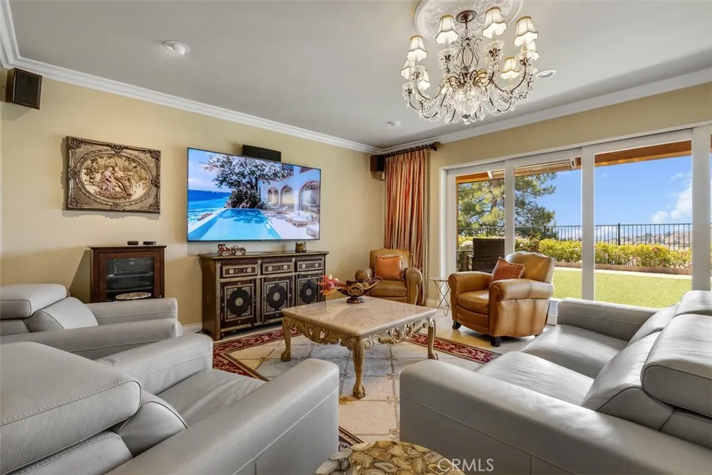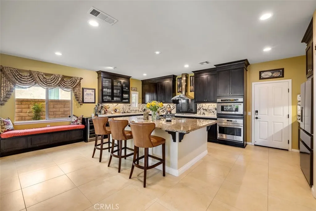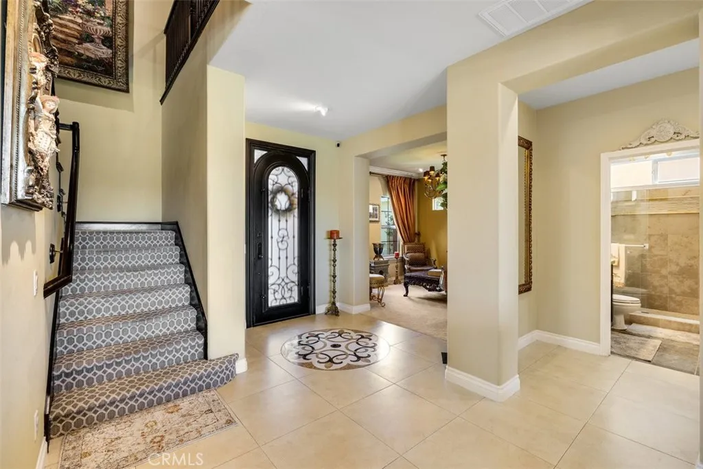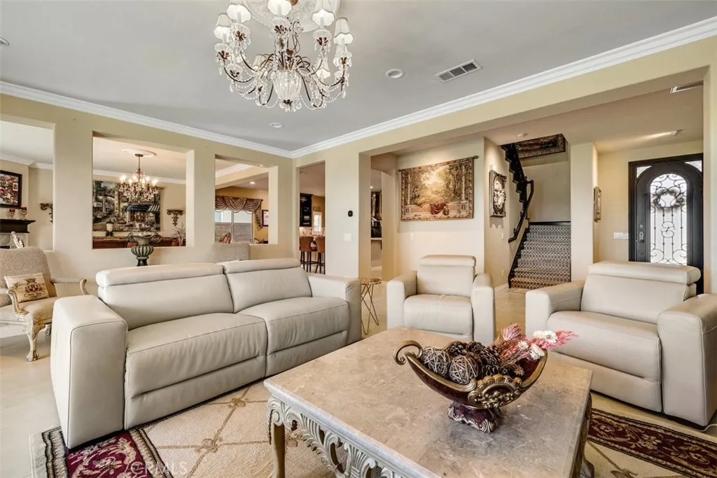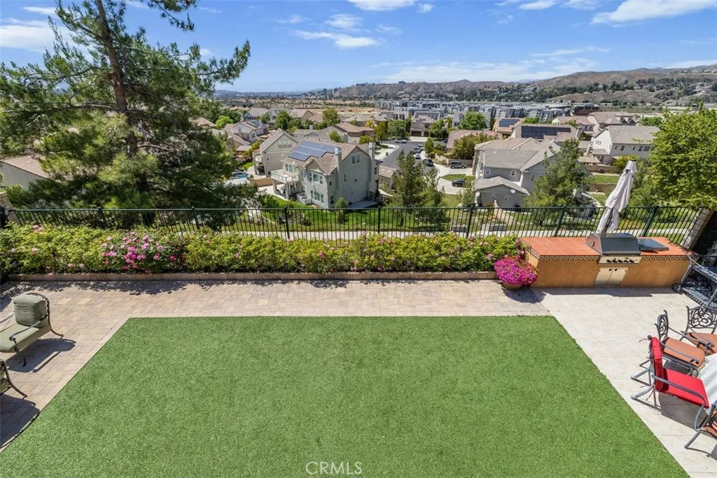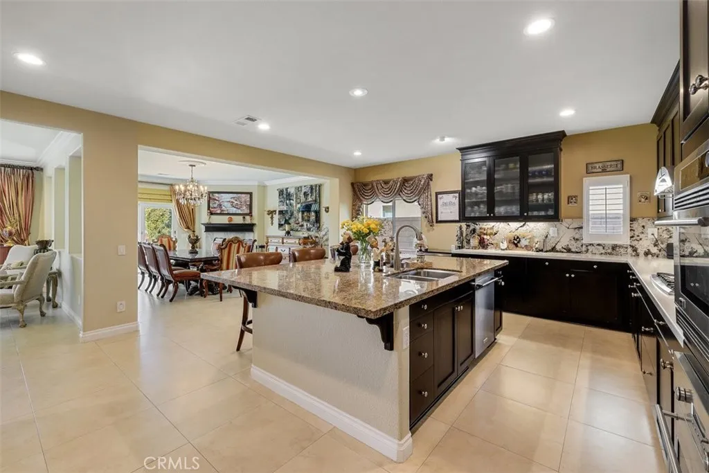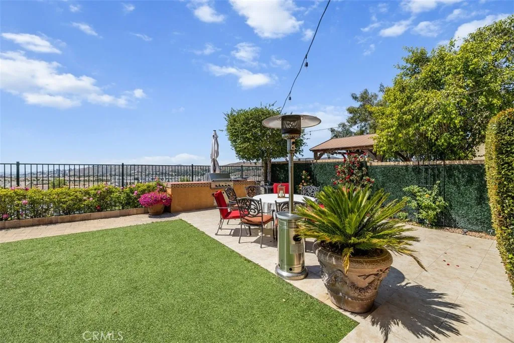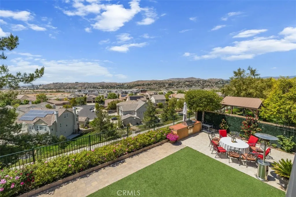 Once a Model, now a Supermodel. Luxury living is elevated in this stunning 5-bedroom, 4-bath home that has gone from model home to absolute supermodel status. Carefully curated for those who crave the perfect blend of function and opulence, every inch of this residence is designed to impress. Step inside through a custom wrought iron front door and be greeted by imported Spanish tile inlay floors and a luminous Schonbek crystal chandelier. The open-concept layout flows into a designer kitchen featuring a dramatic black Galaxy granite backsplash, oversized island, walk-in pantry, and built-in wine fridgeperfect for both daily living and entertaining in style. Serve up gourmet meals in the formal dining room complete with a cozy fireplace. Downstairs offers a private bedroom and full bath, ideal for guests or multi-generational living. Let the outdoors in when you open up 4-panel Fleetwood type glass doors that lead to a raised tile patio and a professionally landscaped low maintenance backyard. Entertain with a custom BBQ and an electric patio sunscreenall while enjoying panoramic city views. Upstairs, find a spacious in-law suite with a mini kitchenette, a large loft for flexible living, and a laundry room for added convenience. The expansive primary suite includes its own balcony, spa like bath with separate tub and shower, dual vanities and walk in closet. It's your own private retreat above it all. Other premium features include, elegant chandeliers in both the living and dining rooms LED accent lighting for art throughout the downstairs, a 3-car garage and newer custom
