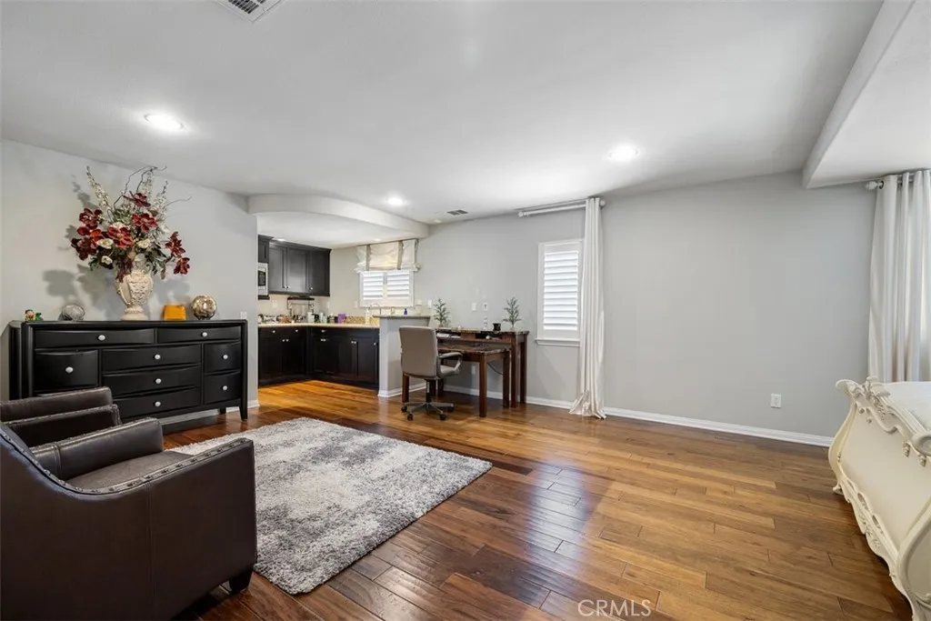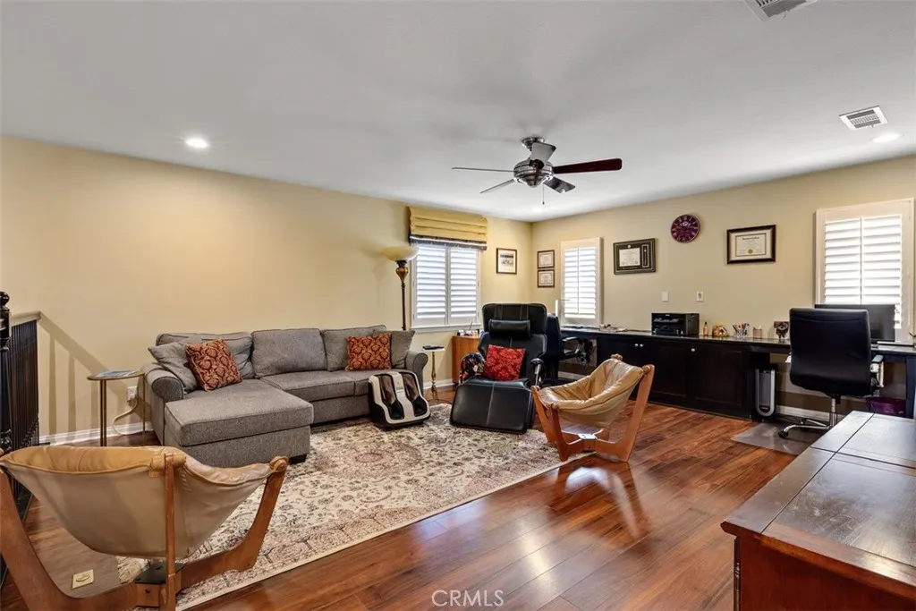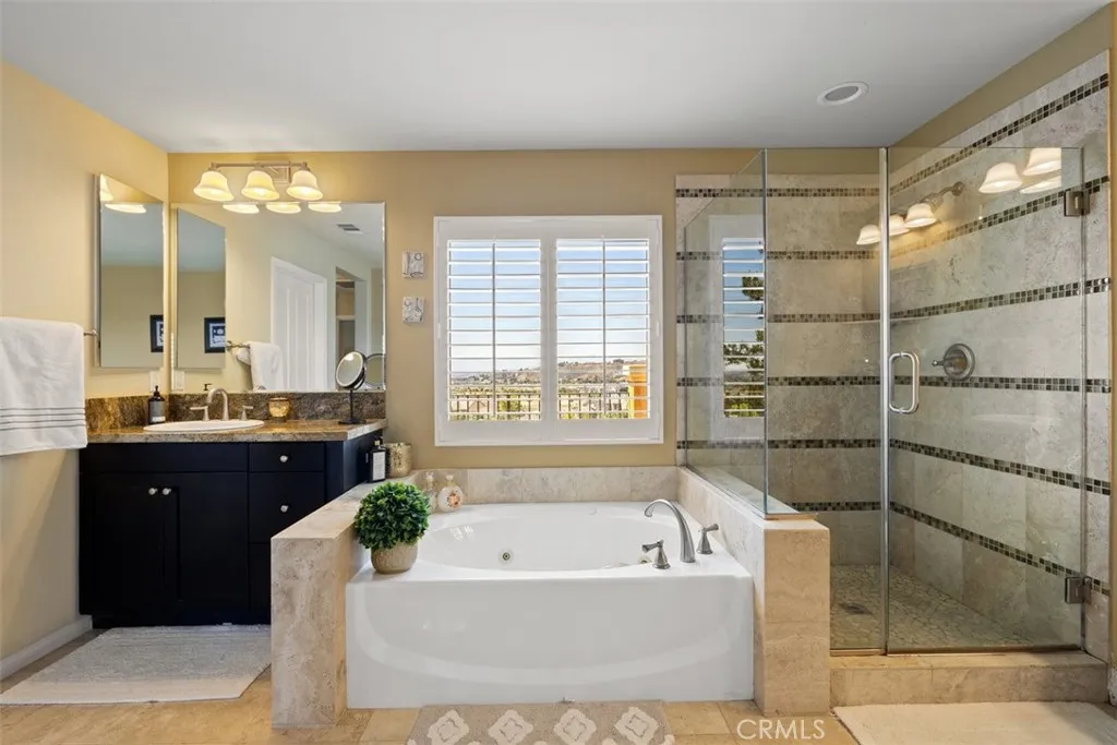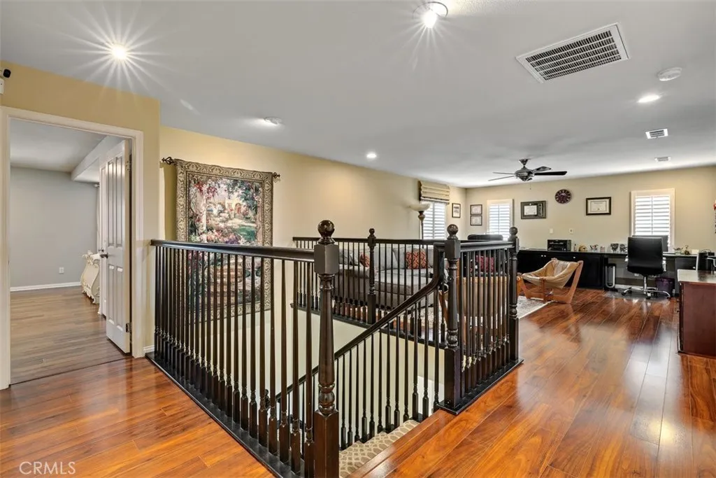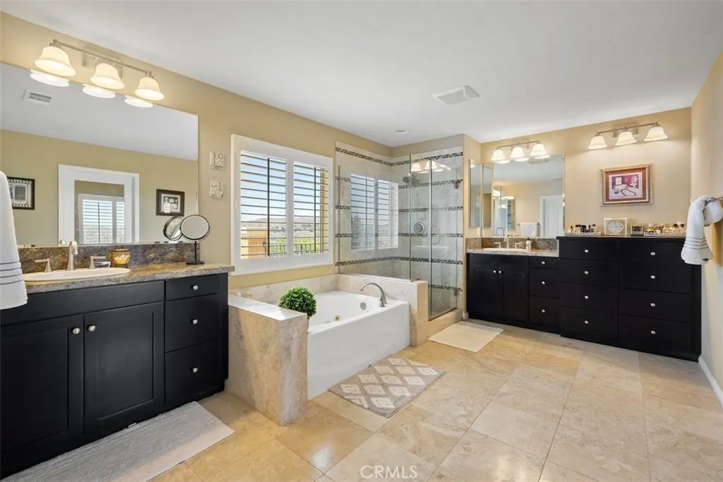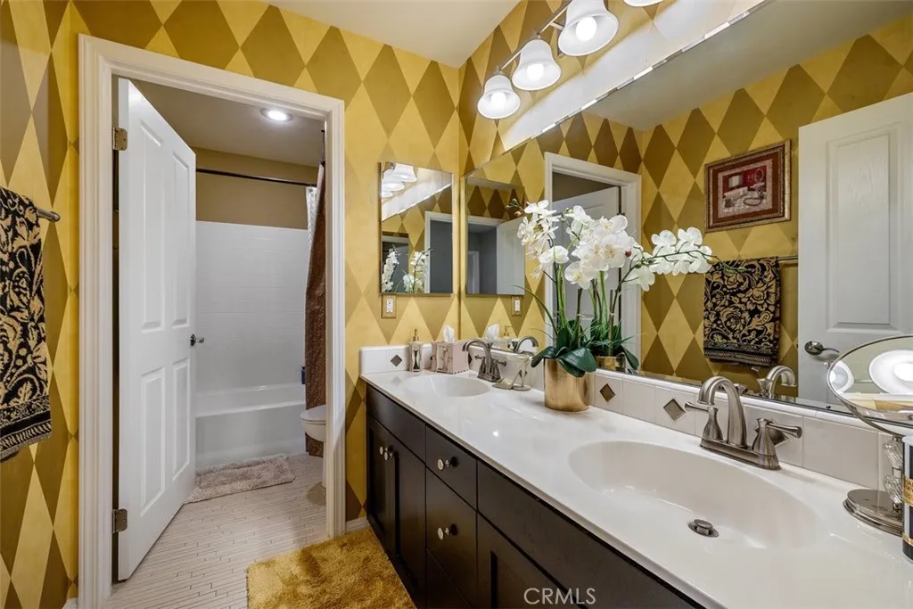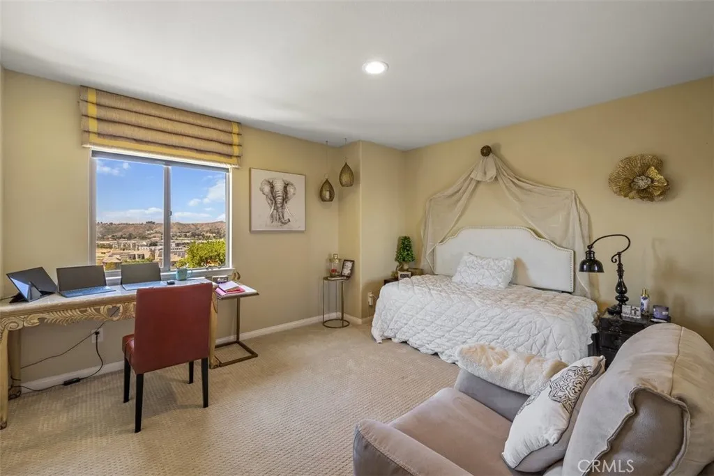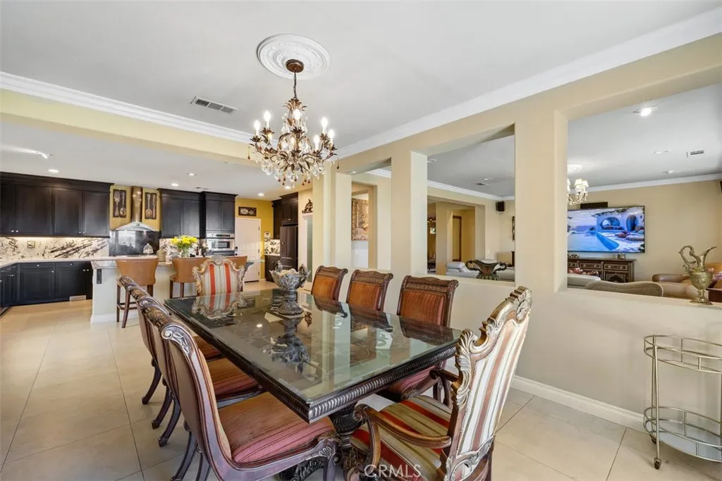 Once a Model, now a Supermodel. Luxury living is elevated in this stunning 5-bedroom, 4-bath home that has gone from model home to absolute supermodel status. Carefully curated for those who crave the perfect blend of function and opulence, every inch of this residence is designed to impress. Step inside through a custom wrought iron front door and be greeted by imported Spanish tile inlay floors and a luminous Schonbek crystal chandelier. The open-concept layout flows into a designer kitchen featuring a dramatic black Galaxy granite backsplash, oversized island, walk-in pantry, and built-in wine fridgeperfect for both daily living and entertaining in style. Serve up gourmet meals in the formal dining room complete with a cozy fireplace. Downstairs offers a private bedroom and full bath, ideal for guests or multi-generational living. Let the outdoors in when you open up 4-panel Fleetwood type glass doors that lead to a raised tile patio and a professionally landscaped low maintenance backyard. Entertain with a custom BBQ and an electric patio sunscreenall while enjoying panoramic city views. Upstairs, find a spacious in-law suite with a mini kitchenette, a large loft for flexible living, and a laundry room for added convenience. The expansive primary suite includes its own balcony, spa like bath with separate tub and shower, dual vanities and walk in closet. It's your own private retreat above it all. Other premium features include, elegant chandeliers in both the living and dining rooms LED accent lighting for art throughout the downstairs, a 3-car garage and newer custom
