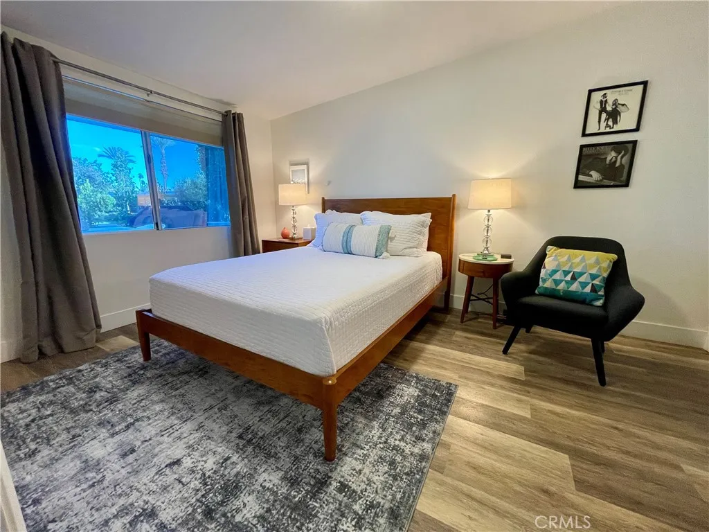 Sun-drenched mid-century modern retreat just steps from the iconic Indian Wells Tennis Garden. This single-level 3-bedroom, 2-bath home is bathed in morning light through dramatic floor-to-ceiling windows spanning the kitchen, dining, and family rooms seamlessly blending indoor and outdoor living. Currently operating as a successful Airbnb with reservations secured through April, this property offers immediate income potential. Buyer may elect to honor or cancel future bookings. Sold fully furnished for a true turnkey experience. Major system upgrades completed in 2021 include a new tankless water heater, new AC system, and updated PEX plumbing offering modern efficiency and peace of mind. The private rear patio with fire pit creates the perfect desert lounge setting, while the unique community layout places the rear of each home facing an expansive greenbelt with a sparkling community pool, palm and fruit trees, and wide open views no direct rear neighbors. Minutes from world-class golf, upscale shopping and dining, and the legendary Coachella Valley Music and Arts Festival and Stagecoach Festival, this is desert living at its most stylish and profitable.