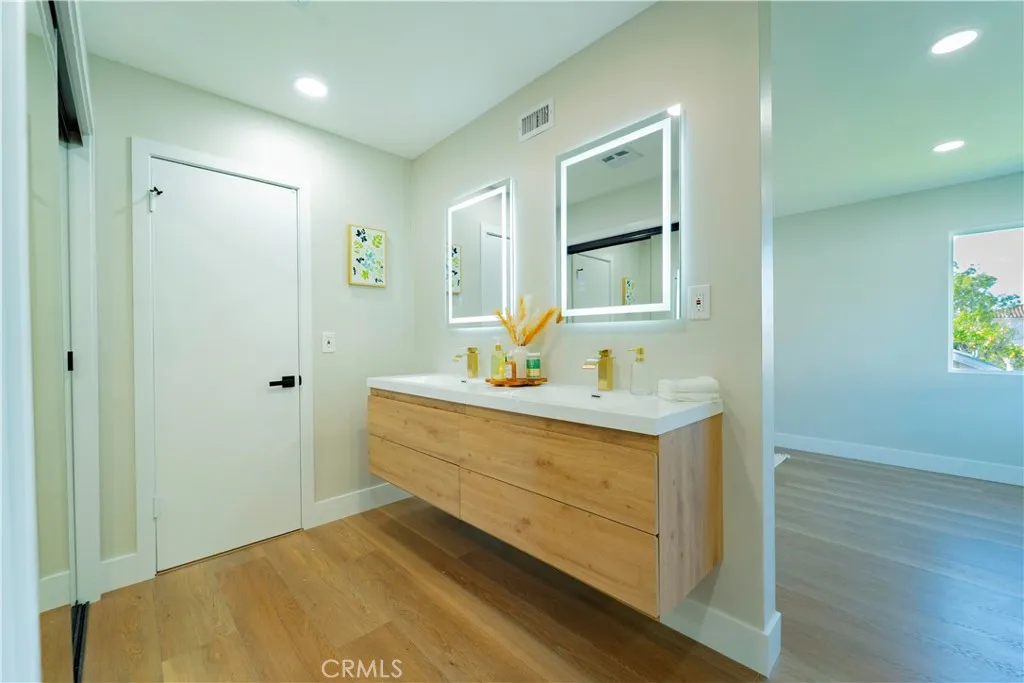 Exceptionally remodeled residence located at 2148 Edgewood Drive in the highly sought-after city of Alhambra, offering 1,751 sq ft of thoughtfully designed living space on a 6,449 sq ft lot. This turnkey home features an elegant formal living room and a spacious family room that doubles as the dining area, complete with a stunning fireplace perfect for both everyday living and entertaining. The designer kitchen showcases modern white shaker cabinetry with black accents, quartz countertops, paired with durable, water-resistant luxury vinyl flooring that flows seamlessly throughout the home. Both bathrooms have been renovated with contemporary tile finishes, sleek floating vanities, and illuminated mirrors, creating a clean, modern aesthetic. The luxurious primary suite offers dual floating vanities and separate his-and-hers closets, while all bedrooms feature mirrored closet doors that enhance light, space, and functionality. Major upgrades include vinyl retrofit windows, recessed lighting, and updated copper plumbing, providing comfort, efficiency, and peace of mind. Additional highlights include a spacious two-car garage with direct access to the interior of the home. Ideally located just moments from Granada Park, offering scenic walking paths, a peaceful lake, and outdoor recreation. The home is also close to top-rated schools, shopping, dining, and convenient freeway access, with easy commutes to Downtown Los Angeles, Pasadena, San Gabriel, Monterey Park and surrounding San Gabriel Valley communities. This rare, move-in-ready home combines modern luxury, thoughtful upgr