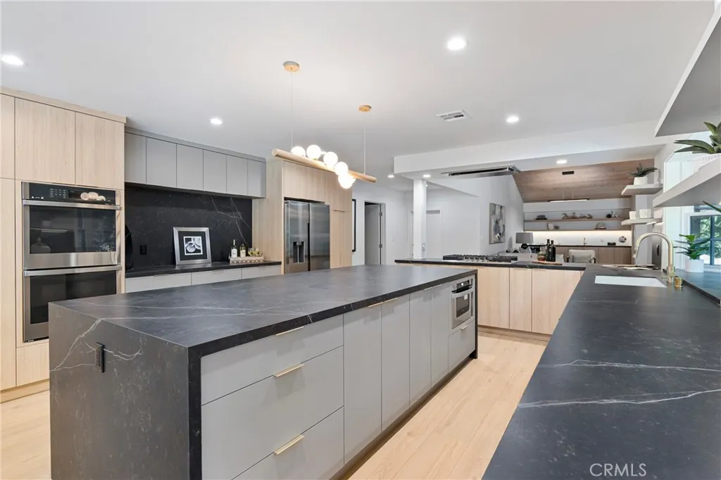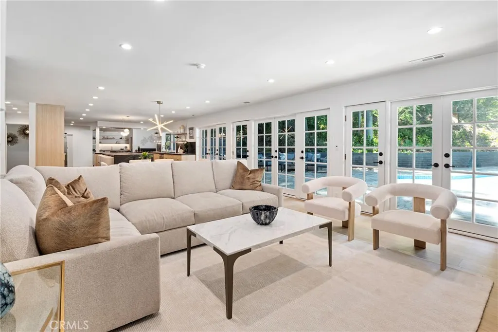 A grand entry introduces elegant formal living and dining rooms, setting the tone for the homes elevated design. At the heart of the residence is a stunning chefs kitchen featuring custom cabinetry, premium high-end appliances, and a dramatic porcelain waterfall island. The kitchen flows effortlessly into the inviting family room, complete with a fireplace, built-in wet bar, and French doors that open to a lush, private backyard creating the ultimate indoor-outdoor living and entertaining experience. The main level also includes a private guest suite with en suite bath, a stylish home office, two designer powder rooms, and a spacious laundry room offering both flexibility and convenience. Upstairs, the luxurious primary suite serves as a true private retreat, highlighted by its own fireplace, generous walk-in closet, private balcony, and spa-inspired en suite bathroom. Three additional well-appointed bedrooms and two beautifully remodeled bathrooms complete the second floor, providing ideal accommodations for family and guests. Showcasing high-end finishes throughout, a thoughtfully designed floor plan, and a premier South of the Boulevard location on a quiet street, this exceptional residence presents a rare opportunity in Woodland Hills most sought-after enclave. An extraordinary offering in an unparalleled setting.