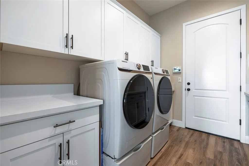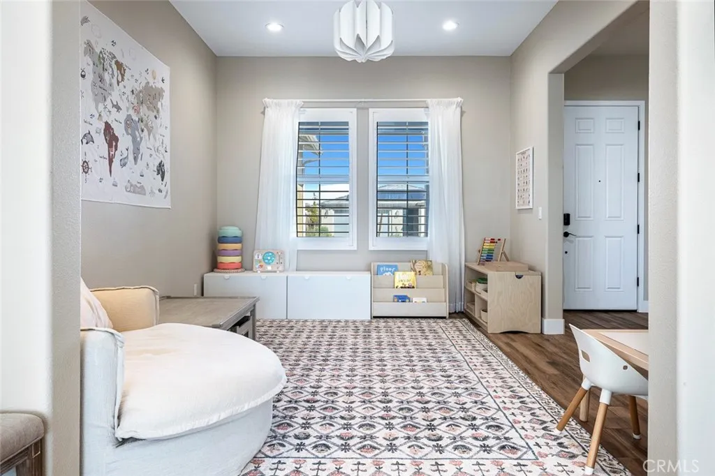 Welcome to the highly sought-after Makenna model by McCaffrey Homes, located in the beautifully curated master-planned community of Tesoro Viejo. This exceptional single-level residence blends thoughtful design, elevated finishes, and energy efficiency into one impressive home. Step inside to an open-concept layout that immediately makes a statement. The expansive living area is anchored by multi-slide panoramic doors that open to a breathtaking open-air view. With no backyard neighbors, this premium lot offers privacy and a rare sense of space, creating seamless indoor-outdoor living ideal for both everyday comfort and entertaining. The kitchen is the true centerpiece, designed for both style and function. A super-sized island with generous counter seating anchors the space, complemented by Cafe appliances, a gas cooktop with a striking designer hood, & a convenient pot filler. A farmhouse sink, pull-out cabinet drawers, and a double-door pantry enhance everyday ease, all wrapped in beautiful designer finishes for a polished, upscale feel. Just off the main living area, a formal dining room provides a refined setting for gatherings, while the flex room offers versatility as a home office, media room, or lounge space. All three bedrooms feature private en suite baths, offering comfort & convenience throughout. The oversized primary suite serves as a true retreat with expansive windows, remote-control shades, and a spa-inspired bath complete with a soaking tub and modern walk-in shower. A standout feature is the expansive multi-generational suite, thoughtfully designed with