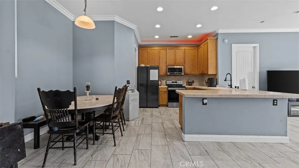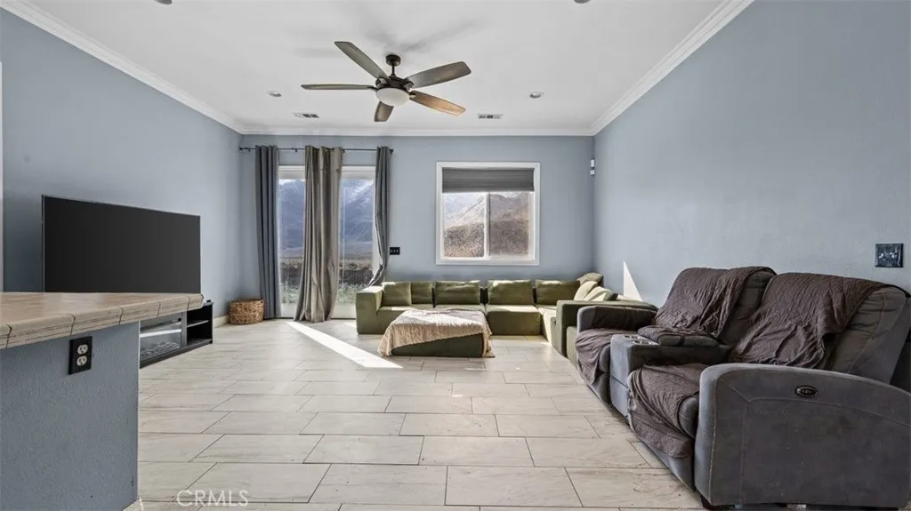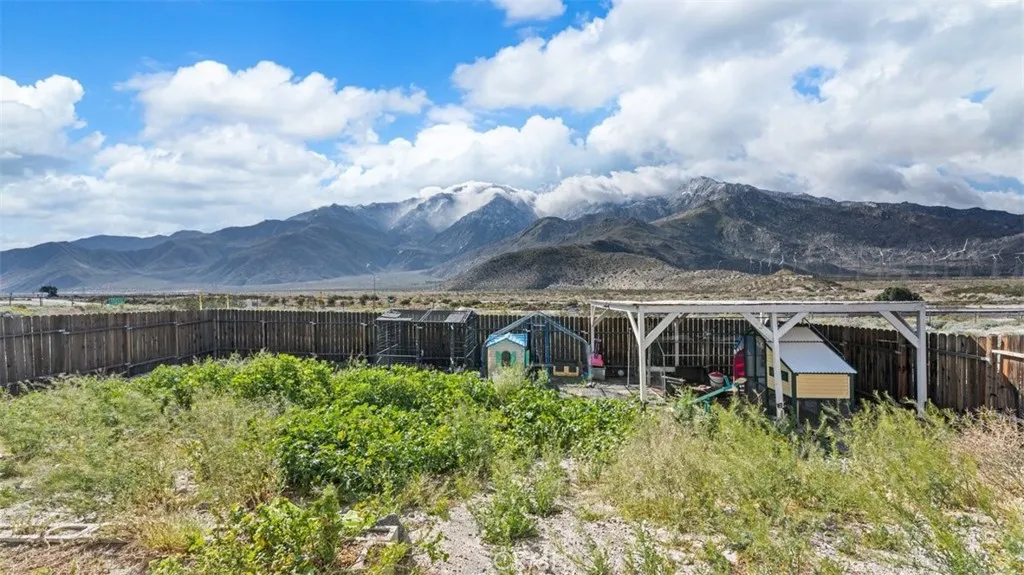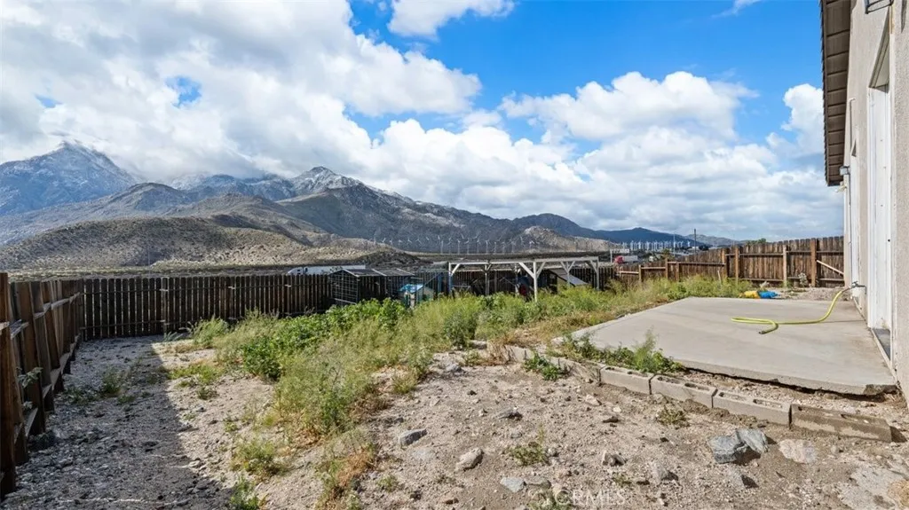 Breathtaking Mountain Views & Modern Elegance Await! Experience panoramic vistas of the San Bernardino and San Jacinto mountains from this stunning 3-bedroom, 2-bath single-story home. Situated minutes from Palm Springs, Morongo Casino, and Cabazon Outlets, this 2006 gem offers convenience and sophistication. Step through the 8-foot front door to discover soaring ceilings and a bright, open-concept living space with sleek tiled flooring and recessed lighting. The modern kitchen features stainless steel appliances, flowing seamlessly into a living area highlighted by huge French doors. The spacious primary suite is a true retreat, offering laminate flooring and private backyard access. Featuring upgraded 8-foot doors throughout, this home offers style and seamless indoor-outdoor living.