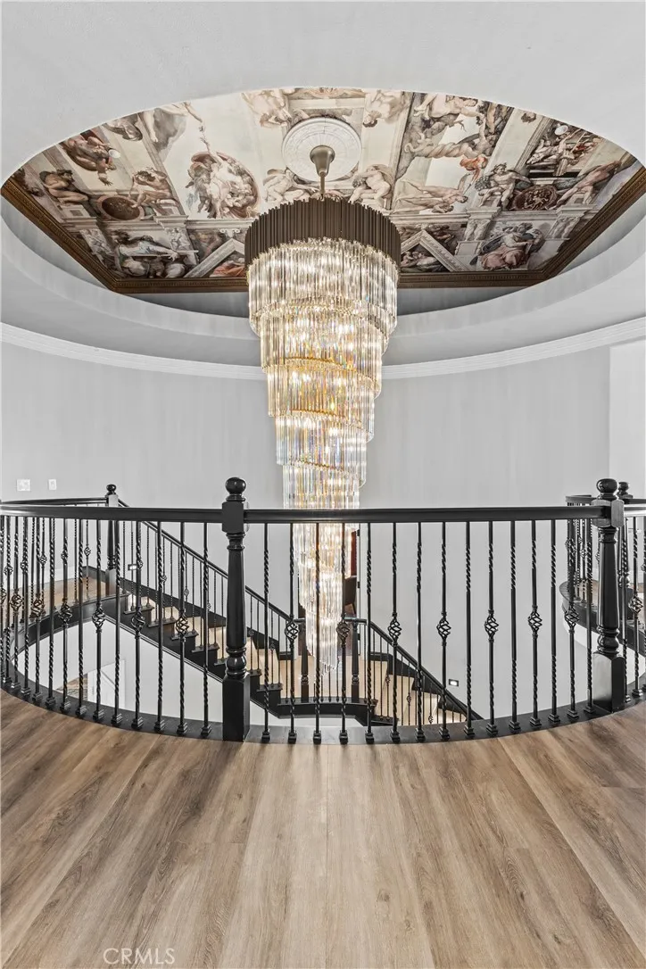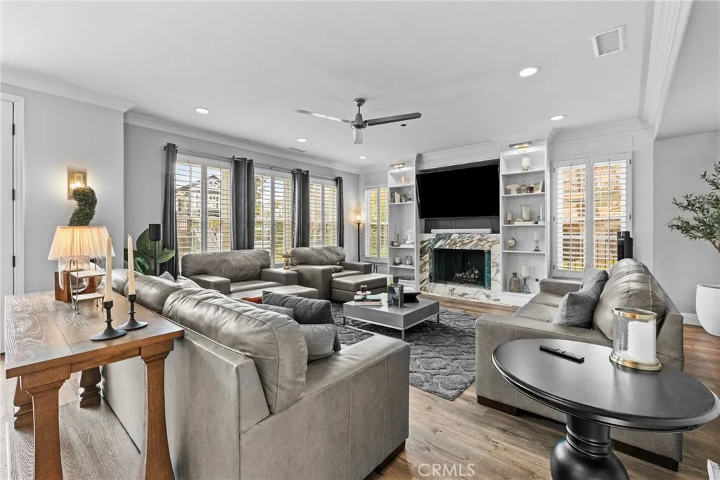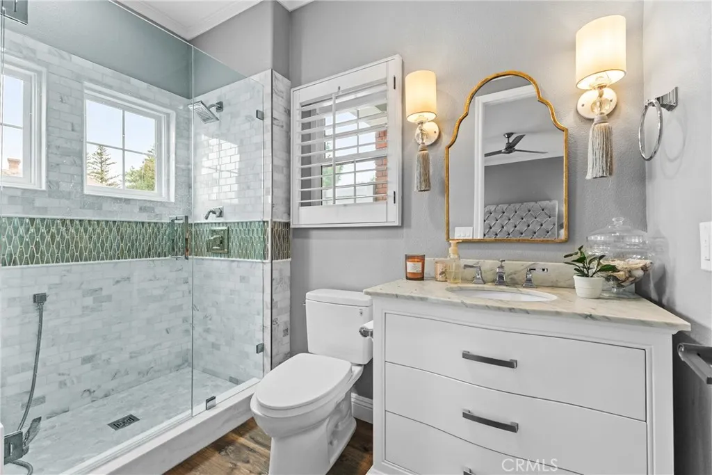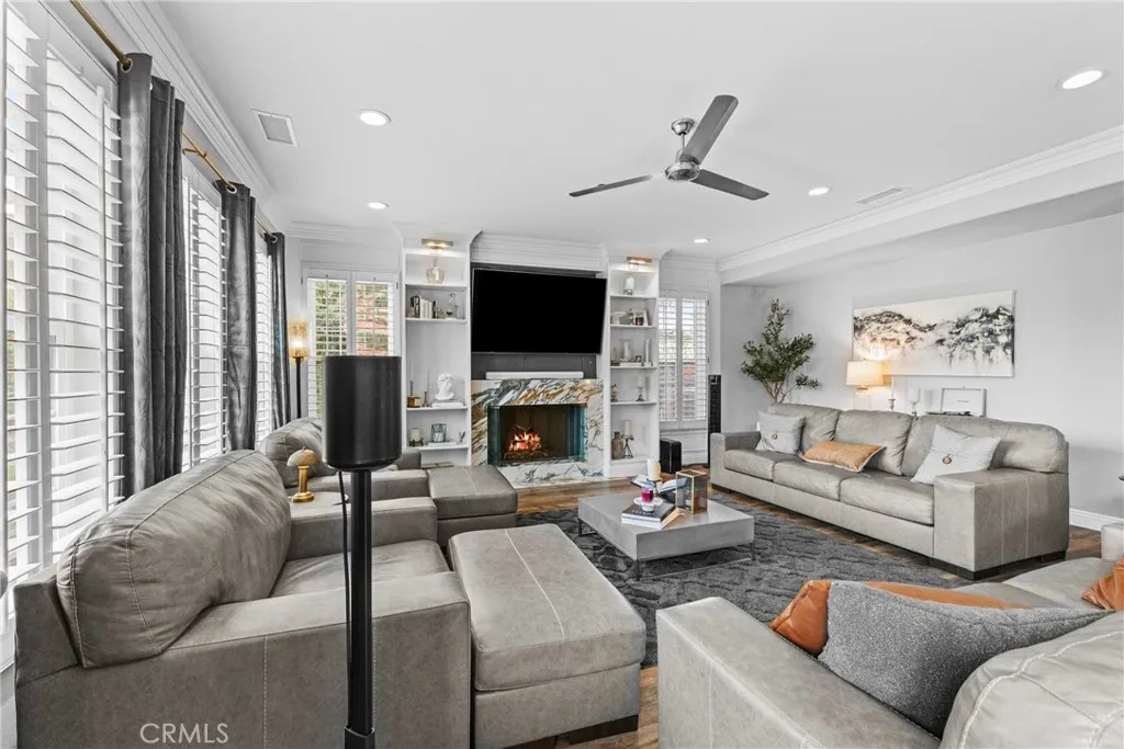 Welcome to this elegant, custom estate located in the prestigious Wyndham Hill Estates of Alessandro Heights, where timeless architecture meets refined modern luxury. This professionally designed, fully renovated residence offers 5 spacious bedrooms and 6 beautifully appointed bathrooms, thoughtfully curated with elevated finishes throughout. Every detail reflects exceptional quality and sophistication, featuring luxury fixtures from Brizo, Crystal Rama, RH, and Curry & Co. Imported Belgian wallpaper, exquisite Italian marble, and statement chandeliers create an atmosphere of grandeur while maintaining warmth and everyday livability. Designed for both intimate moments and grand-scale entertaining, the resort-inspired backyard unfolds across three meticulously crafted tiers: The first level welcomes guests with a charming fire pit lounge, dedicated dining area, and convenient dog run, perfect for relaxed evenings under the stars. The second tier serves as a private retreat, showcasing a sparkling saltwater pool complete with a pool bath, outdoor shower, and sauna. Entertain effortlessly at the full outdoor bar and BBQ area, unwind beneath the gazebo as city lights shimmer in the distance, or relax beside the tranquil koi pond surrounded by multiple lounging and dining spaces. Beyond you will find a picturesque Japanese garden gate, the third tier revealing an expansive, private setting ideal for hosting unforgettable celebrations, elegant gatherings, and even weddings. This secluded upper level offers the perfect backdrop for large-scale entertaining while maintaining a sens