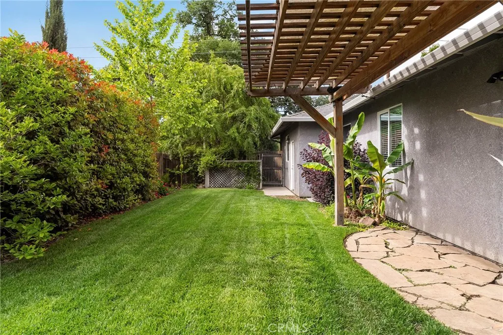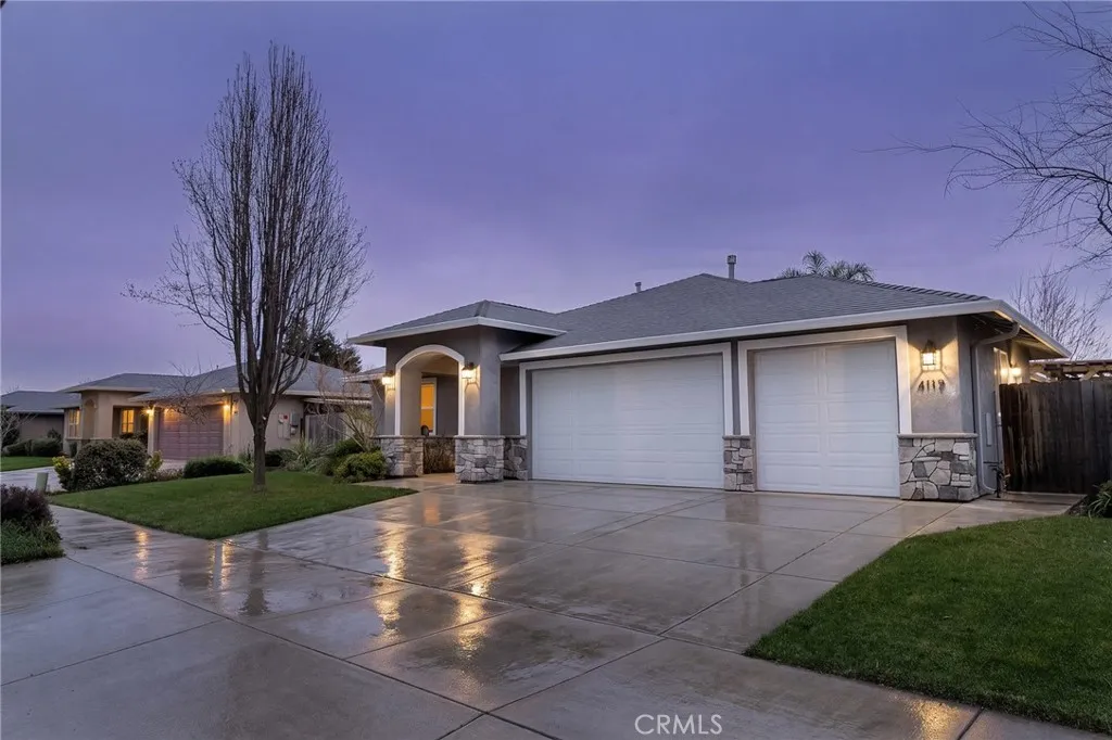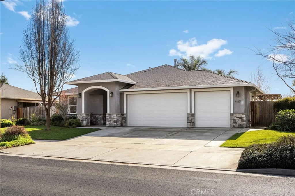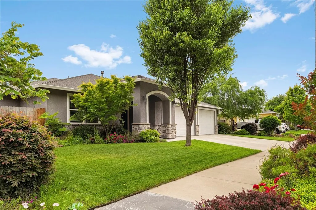 Welcome to 4117 Nord Hwy a beautifully designed home built by Bill Webb, offering quality craftsmanship, owned solar, a 3-car garage, and a spacious lot in a desirable North Chico location. Step through the inviting entry and into a light-filled living space that instantly feels like home. The great room features brand new carpet and a cozy gas fireplace and large windows that bring in lots of natural light, creating a warm and comfortable atmosphere for everyday living or entertaining. The kitchen is thoughtfully laid out with abundant cabinetry, a functional island for prep and gathering, granite countertops, beautiful tile backsplash, stainless steel appliances, and a pantry blending style and efficiency in a way that truly works for daily life. Privately situated at the end of the hall, the primary suite serves as a relaxing retreat. Enjoy a dual-sink vanity, walk-in tile shower, spacious walk-in closet, and direct access to a private covered patio perfect for quiet mornings or unwinding at the end of the day. The lot offers plenty of space to spread out and enjoy. Youll love the raised garden beds, inviting firepit area, covered patio for outdoor dining, putting green and expansive yard with room for play, pets, or future possibilities. Located on the north side of Chico near Degarmo Park, with convenient access to Hwy 99, shopping, and Shasta Elementary School, this home combines comfort, space, and an excellent location.