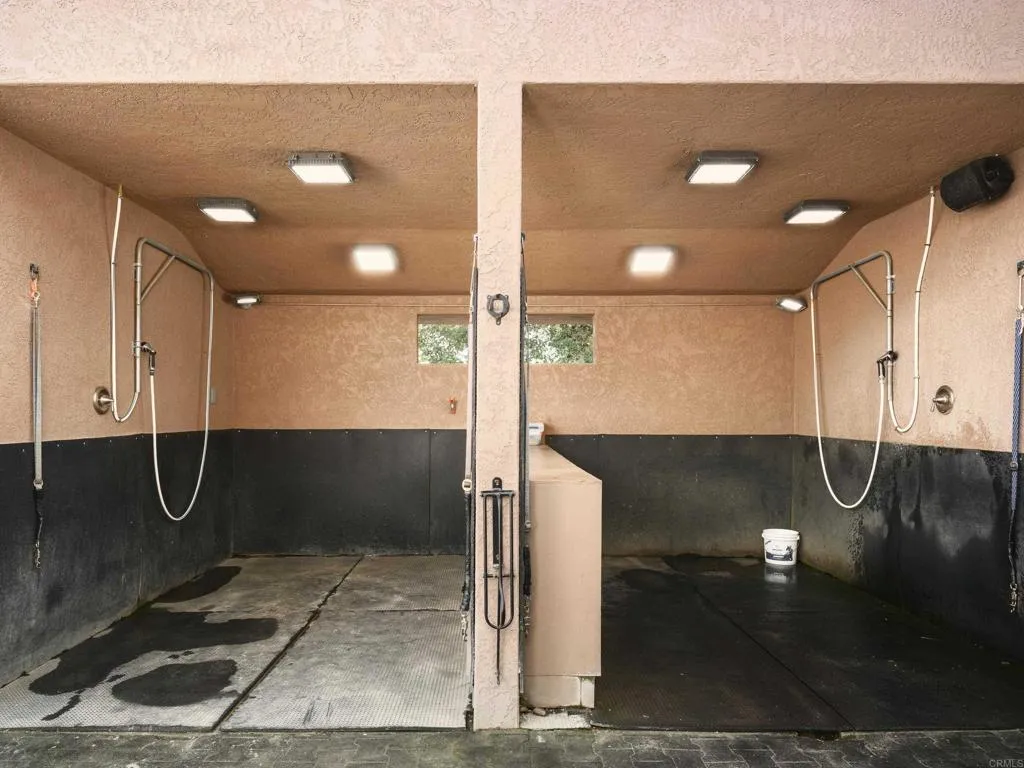 Masterfully crafted with intention and thoughtful design, this exceptional gated Rancho Santa Fe estate offers a premier setting for both elite riders and luxury living. Designed to support top competitive horses year-round, the professional equestrian facilities feature premium ebb-and-flow footing for optimal performance and conditioning in every season. The barn includes 8 stalls with the option to expand to 10, complemented by four lush grass pastures, a round pen, and a full-size dressage court with perimeter track and a dedicated arena viewing deck. Additional equestrian amenities include grooms quarters, a hay barn, and a state-of-the-art well system supplying the home, horses, and irrigation, complete with a water filtration system and a 3,750 gallon storage tank for added efficiency and reliability. The main residence blends comfort and sophistication, offering dual primary suites, four bedrooms total, and two private offices, ideal for work-from-home flexibility or estate management. A separate guest home provides complete independence with a full kitchen, living area, and two bedrooms, perfect for extended family, trainers, or visitors. Resort-style grounds elevate the lifestyle experience with a modern pool and spa, centrally positioned to create a natural gathering space and indoor-outdoor focal point of the home. Designed for effortless entertaining, the space includes alfresco dining, a fully equipped outdoor BBQ area, and a built-in pizza oven. Additional amenities include a professional putting green with premium turf, a dedicated golf room featuring a top-
