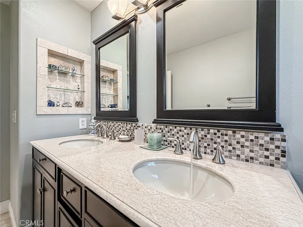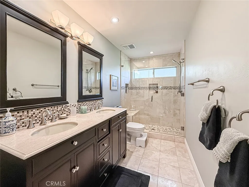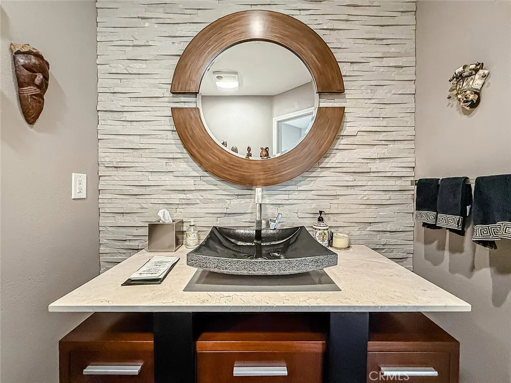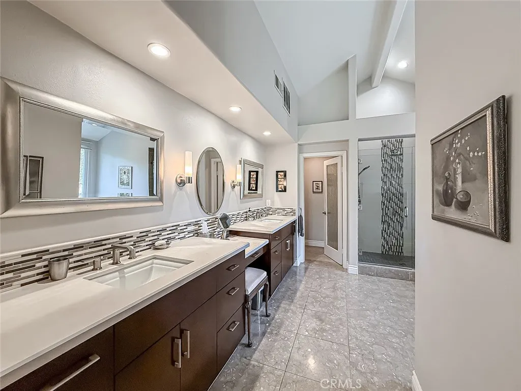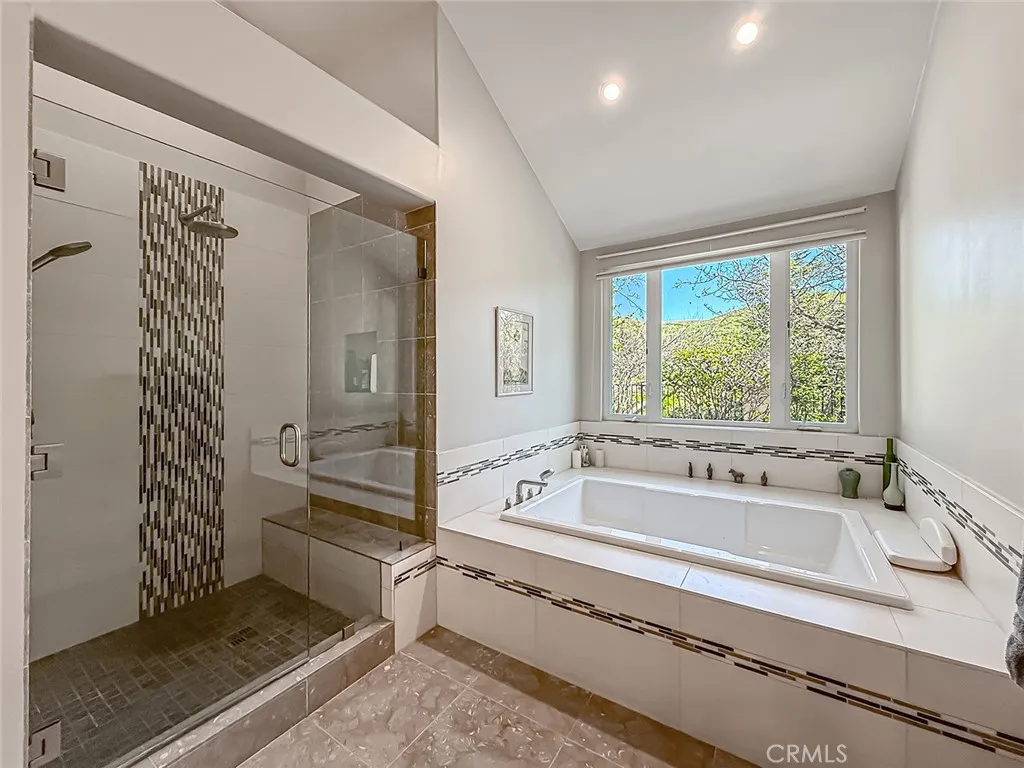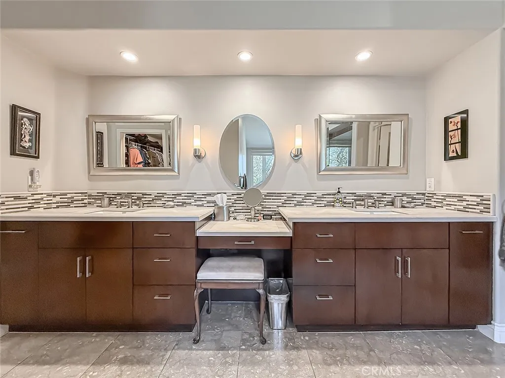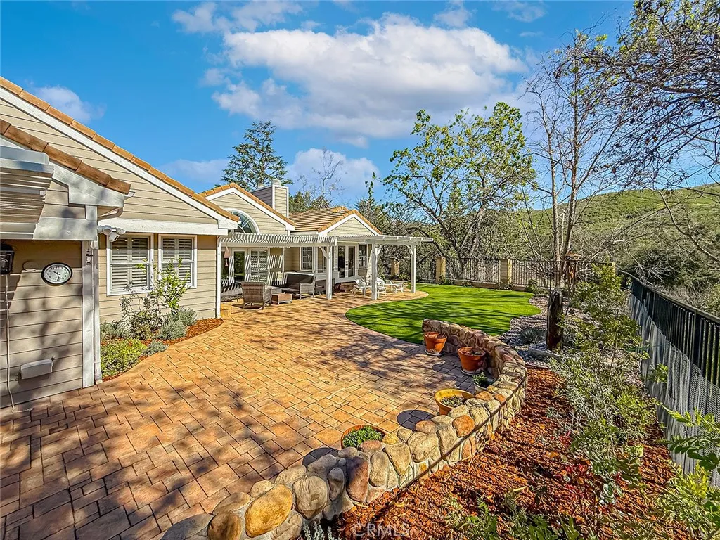 This gorgeous, highly sought after, ranch home embodies what Thousand Oaks living is all about. Upon entering, the peaceful backdrop of tree lined rolling hills greets you immediately. There is no escaping the beauty of nature from any room in this home. The many updated windows in every living area provide endless views of mature trees and greenery. The high ceilings allow for tons of natural light and add to the feeling of being transported into the countryside. With over 3200 sq ft, this single-story home offers four bedrooms and 4 bathrooms. The layout is ideal with the primary located on one side of the home and the other three rooms on the other. One bedroom is currently being used as an office with solid built-in desks providing functionality. Designed with a seamless flow for daily living, the floorplan offers a renovated kitchen with an eating area that opens to the family room and directly to the outdoor area which is professionally landscaped and equipped with tasteful pavers, a built-in BBQ, and covered patios. There is also a formal dining room, living room, and bar area, which all overlook the outdoor scenery and lend the home to effortless entertaining. The primary bedroom is a true escape designed with detail in mind. The large room has a picture window view of the backyard, the closet has been enlarged and custom fitted for optimal storage and function, and the jetted tub and double sink with a vanity built in offer spa-like luxury. The large laundry room leads to the 3-car garage. One bay has been remodeled with added storage and a large tool bench. On the