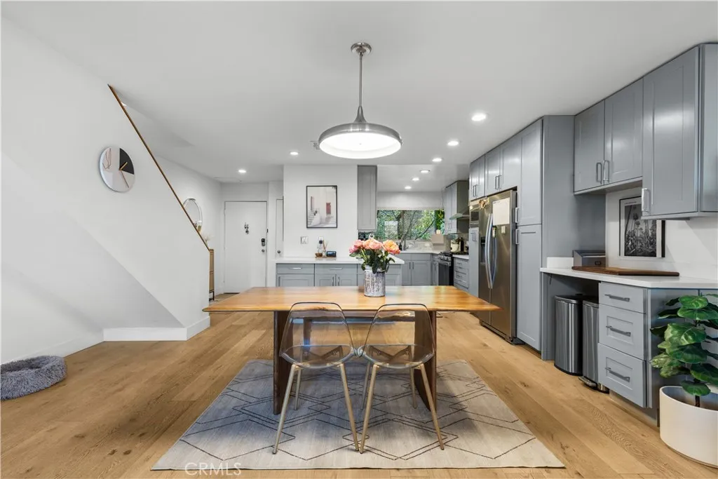 Welcome to this move-in ready architectural condo in the gated Skyline Townhome community, which was designed by noted architect Lorenzo Tedesco. Step inside to a light and airy open floor plan where floor-to-ceiling steel-framed windows and stunning floors create an atmosphere of warmth and sophistication. The seamlessly connected living and dining areas flow effortlessly into a remodeled kitchen, boasting sleek stone countertops, stainless steel appliances and ample storage space. Upstairs youll find two generously sized bedrooms and two tastefully updated bathrooms, including a luxurious primary suite that boasts a well-appointed ensuite bathroom. Additional highlights include in-unit laundry, two spacious balconies, a community pool/spa and two side by side parking spaces within the secured community garage. Centrally located between the Valley, Westside and Downtown LA, this property is just moments from the Hollywood Bowl, Universal Studios, Ventura Boulevard's vibrant shopping/dining scene and so much more. Property is available for lease at $4,500/mo.