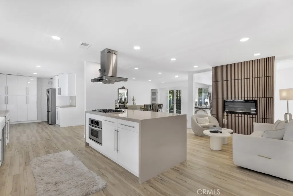 Welcome to this beautifully updated single-story home on a 7,499 sq ft corner lot in a quiet West Hills neighborhood. The interior features stylish laminate flooring throughout, recessed lighting, smooth ceilings, and abundant natural light. The updated kitchen showcases a large center island with waterfall-style countertops, modern cabinetry, a built-in gas cooktop with stainless steel hood, and stainless steel appliances. The open-concept layout flows seamlessly into the dining and living areas, ideal for everyday living and entertaining. The living area is highlighted by a striking modern electric fireplace with a custom accent wall, creating a warm and inviting focal point. The primary suite offers a comfortable and spacious setting with an en-suite bathroom featuring modern finishes and a walk-in shower. Additional bedrooms are well-sized and versatile, with updated secondary bathrooms. The private backyard features mature trees, low-maintenance landscaping, and a covered patio perfect for year-round enjoyment. The property includes a two-car garage, a covered front parking area equipped with an electric vehicle charger, and a gated rear parking area with an electric opener, offering excellent flexibility for RV or additional secured parking. Additionally, the property has an ADU permit approved by the city, providing a valuable opportunity for future expansion or additional living space. Conveniently located near parks, shopping, dining, and major routes, this move-in-ready home offers modern living in an established West Hills setting.