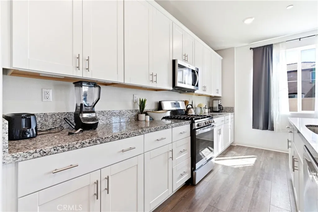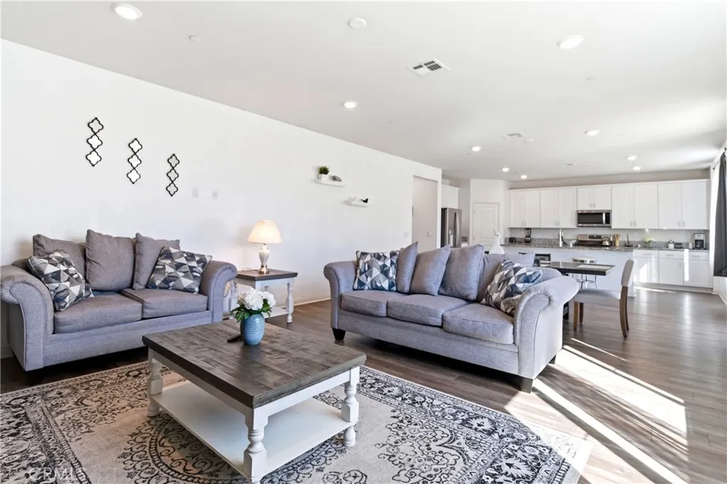 Priced to be Sold! Come to see this Modern Living in the Heart of Legacy Park! Located in the highly desirable Legacy Park community of Moreno Valley, this stunning 2022-built home offers the perfect blend of modern design, fully upgraded, offers you comfort, and energy efficiency. Nestled in a vibrant, family-friendly neighborhood with parks, playground, outdoor gym and dog areas, youll love the suburban atmosphere with easy access to shopping, dining, and major freeways (60 & 215), as well Perris lake is near by. Just minutes from Lake Perris, near Victoriano Elementary School and Moreno Valley College, this location offers both convenience and lifestyle. This gorgeous single-family home features: 4 spacious bedrooms, 3 full bathrooms, Convenient downstairs bedroom and full bath perfect for guests or multi-generational living. Modern Open-concept kitchen and living room designed for entertaining. Cozy reading/relaxation nook. Upstairs loft ideal for a media room, office, or play space. The modern kitchen is a true highlight, complete with granite countertops, a large center island with seating, and plenty of space for your inner chef to shine. Elegant finishes throughout include wood laminate flooring downstairs, plush carpet upstairs and bedrooms, and contemporary aesthetic and offering you an ample backyard for your family gatherings with a nice covered patio structure. Enjoy the benefits of: Solar energy system for major savings, Tankless water heater, Energy-efficient construction, Quiet, well-maintained neighborhood. The home has been gently occupied by seasonal res