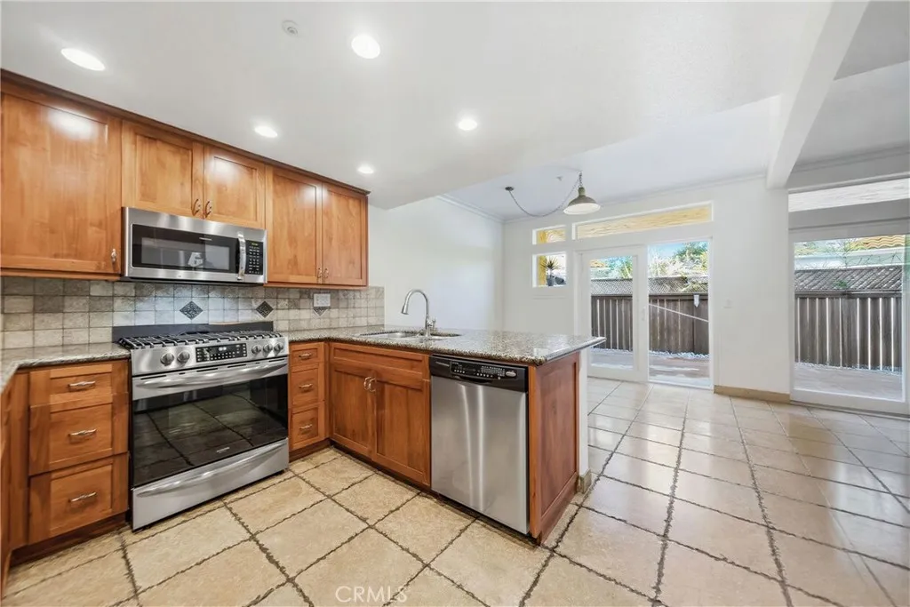 Discover refined coastal living in the highly sought-after Rancho San Clemente community. Designed to impress, this residence features soaring ceilings, oversized windows, and an abundance of natural light that creates a bright, open atmosphere throughout. Elegant travertine flooring spans the main level, blending sophistication with durability. The welcoming living area is highlighted by a striking fireplace and distinctive architectural touches that add warmth and charm. An additional fireplace enhances the homes inviting ambiance. The beautifully appointed kitchen offers granite countertops, custom cabinetry, upgraded the sliding glass doors in the windows and a spacious breakfast bar that flows effortlessly into the dining and living spaces, ideal for both entertaining and everyday comfort. Two sliding glass doors create a seamless indoor-outdoor connection, leading directly to the backyard and inviting in the coastal breeze. Step outside to your private outdoor retreat, perfect for relaxing or hosting gatherings. Upstairs, rich wood flooring adds warmth and character. The generous primary suite provides a peaceful escape, complete with a spa-inspired bath featuring a soaking tub and elegant stone finishes. A spacious loft area offers flexible living space and can easily be converted into a third bedroom and home office, adding versatility to the homes thoughtful layout. Residents of Vilamoura enjoy access to resort-style amenities including a private community pool, spa, beautifully maintained grounds, and scenic walking paths. Nearby, Rancho San Clemente Sports Park f