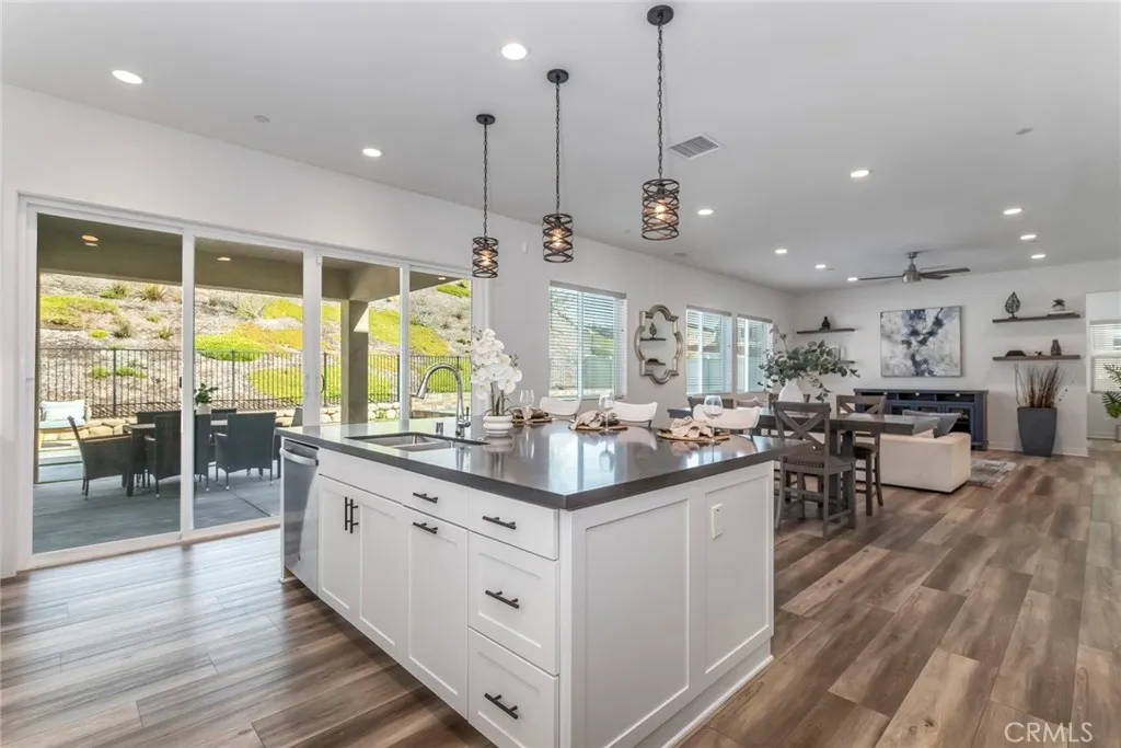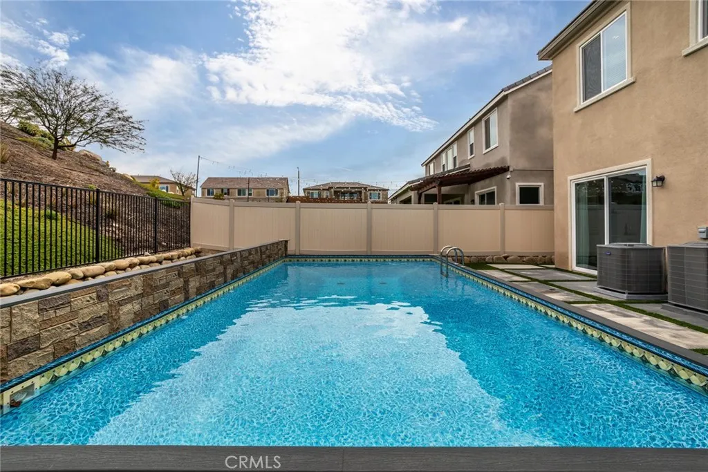 Discover this exceptional Executive Pool Home in the highly sought-after Skyline Ranch neighborhood. Offering four bedrooms (including one downstairs) and four bathrooms across more than 3,600 square feet of thoughtfully designed open concept living space, this residence effortlessly blends comfort and sophistication. Step inside to a grand entry with soaring ceilings and an abundance of natural light. Just off the foyer, a versatile space functions beautifully as a dedicated office, formal living room, or elegant dining area. Enjoy wide plank flooring throughout the main living areas, complemented by light and bright paint selections, designer lighting and ceiling fans, recessed lighting, and expansive windows that flood the home with natural light. The stunning kitchen is a true centerpiece, featuring crisp white shaker cabinetry, a walk-in pantry, professional-grade stainless steel appliances, a refrigerator with glass display doors, quartz countertops, a statement backsplash, and an oversized island with seating for three. The adjoining great room offers generous space for gathering and seamless access to the entertainers backyard. A separate flex space complete with built-in cabinetry and two beverage coolers, makes the perfect game room, home theater, or private gym. The downstairs guest wing includes a spacious bedroom and full bath, ideal for visitors or multigenerational living. Upstairs, plush carpeting, oversized windows, and charming neighborhood views create a warm and inviting retreat. The primary suite features a large walk-in closet and a luxurious ensuite b