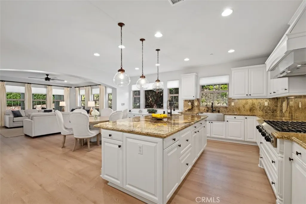 Welcome to 25 Via Nerisa in sought-after Talega of San Clemente on an oversized, private lot. This freshly remodeled residence offers 4 spacious ensuite bedrooms plus an office, loft, and custom built-in study area, providing flexible living spaces for work, relaxation, and entertaining. From the moment you enter, youll appreciate the new vinyl wood plank flooring throughout, fresh interior paint, custom blinds, updated ceiling fans, and new cabinet hardware that create a clean, contemporary feel. The private downstairs office is thoughtfully designed with custom built-in shelving, cabinetry, and desk space, separated by a stylish barn door. A large downstairs bonus room offers versatility as a game room, media space, or formal dining room. The gourmet kitchen opens seamlessly to the great room and dining area. Designed for both everyday living and entertaining, it features: Granite countertops, Stainless steel appliances, 8-burner gas range, Double ovens, Oversized built-in refrigerator, Stainless steel sink, Custom lighting, Expansive walk-in pantry. Upstairs, a quiet loft and dual built-in study desks with drawers and cabinetry provide the perfect homework or creative space. The primary suite spans the entire back of the home, offering exceptional privacy along with a private balcony, dual walk-in closets, and a cozy fireplace. The spa-inspired primary bath includes custom mirrors, updated fixtures, a large walk-in shower, and a soaking tub. Each secondary bedroom features a beautifully remodeled ensuite bath with quartz countertops, marble flooring, new fixtures, mirror
