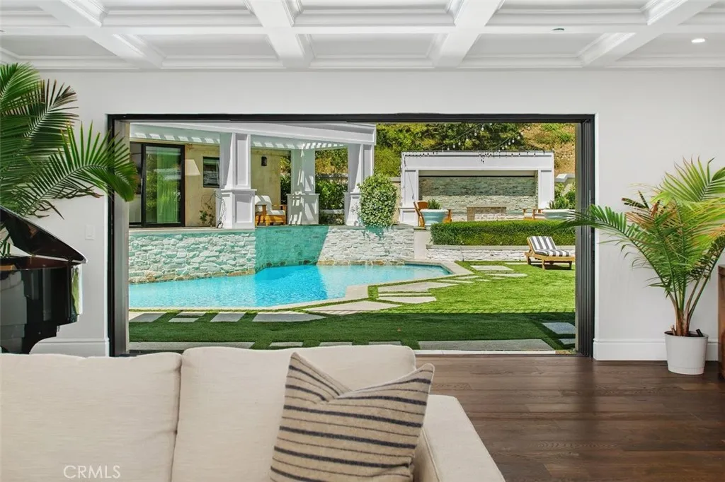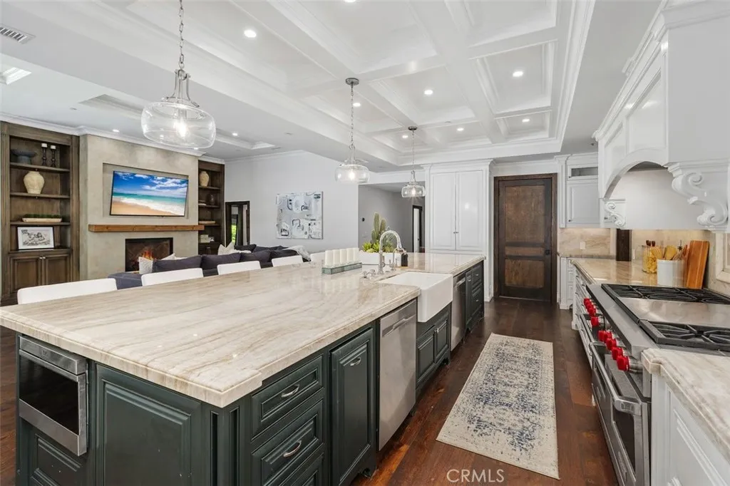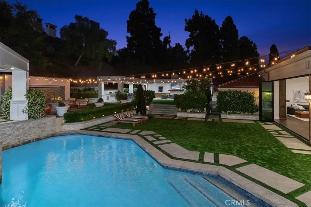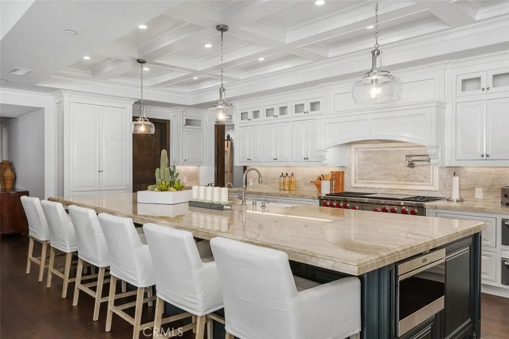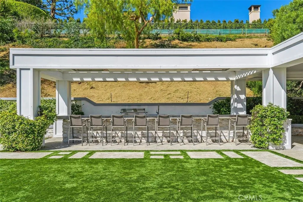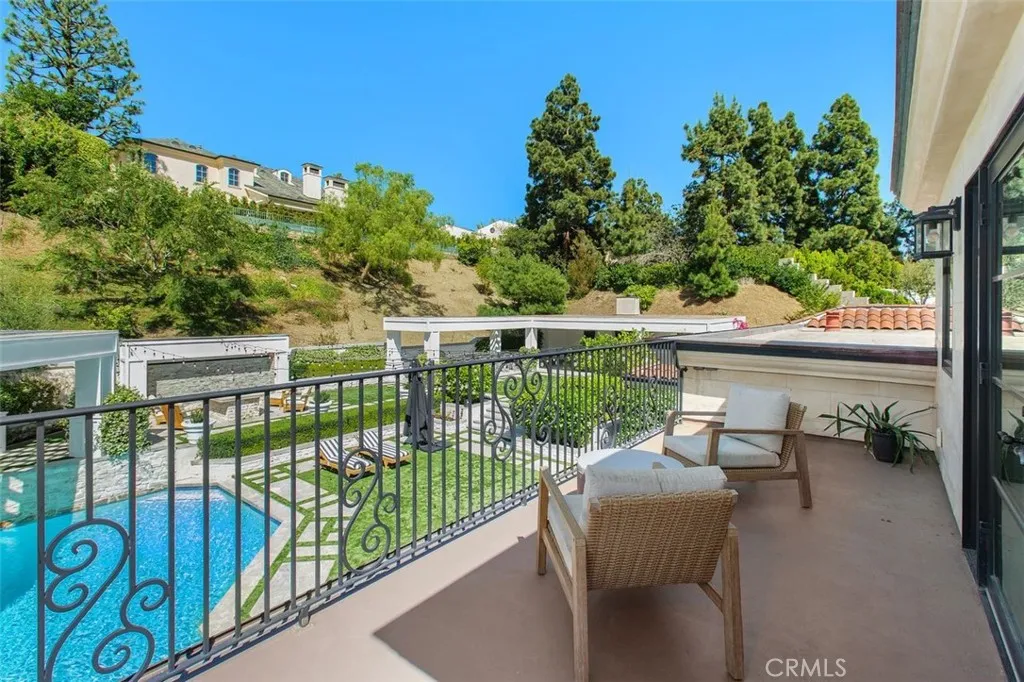 Located in the guard-gated community of Big Canyon in Newport Beach, this custom estate sits on one of the largest lots in the community. The home offers 7 bedrooms, a private office, gym, and a detached guest casita with full kitchen, bath, and laundry. There are 7 full bathrooms and 2 powder rooms. The grand entry with vaulted ceilings leads to a formal dining room and expansive living room with fireplace. The chefs kitchen features an oversized center island, marble countertops, bar seating, caterers kitchen, and a walk-in pantry. A spacious executive office includes a fireplace, wet bar, and patio access. All bedrooms are en-suite, including the primary suite with fireplace, sitting area, private deck, exterior staircase to the backyard, and a spa-inspired bath with dual vanities, soaking tub, steam shower, and custom walk-in closet with in-closet laundry. The resort-style grounds include a pool and spa, firepit lounge, stacked stone water feature, built-in BBQ kitchen, multiple outdoor entertaining areas, and a covered loggia with fireplace and TV. The detached casita provides private accommodations with a kitchen, full bath, and laundry. The property is near Fashion Island, Newport Beach Country Club, Balboa Island, beaches, and Orange County dining and shopping.