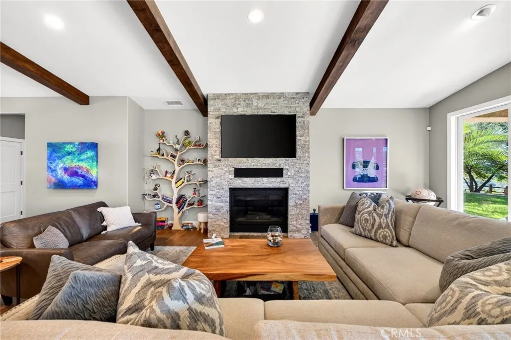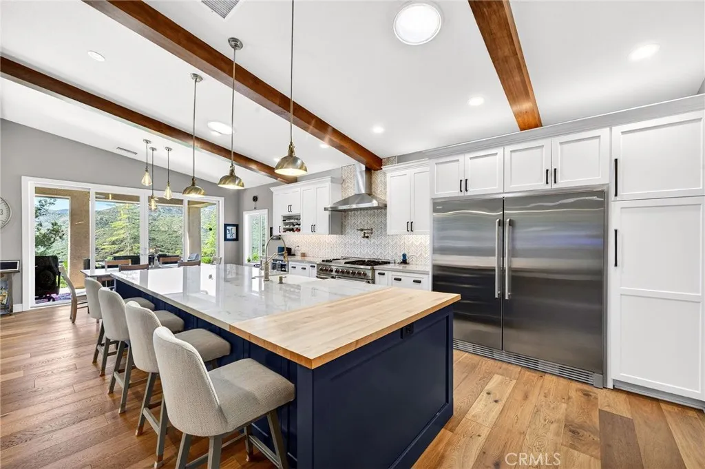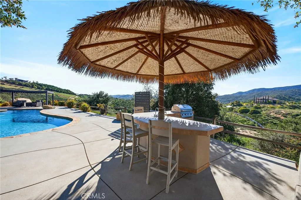 VIEWS! PAID OFF SOLAR!! CASITA!!! Welcome to an extraordinary La Cresta estate where breathtaking mountain views, miles of horse trails, and the peaceful serenity of rural living create the ultimate Southern California lifestyle. This stunning property features an open-concept main residence 2470 SqFt with 3 bedrooms and 2.5 baths that impresses from the moment you arrive, greeted by gorgeous knotty alder solid wood double doors and rich engineered hardwood floors that flow throughout. The chef's kitchen is nothing short of spectacular, featuring a Thor 6-burner gas range with griddle and pot filler, built-in Electrolux refrigerator and freezer, stainless steel range hood, wine fridge, and an incredible butler's pantry with upper and lower cabinetry, ample counter space, stunning views, and beautiful lighting. The kitchen flows seamlessly into the dining area and an oversized family room boasting a cozy fireplace, soaring open beam ceilings, and panoramic views you will never tire of. A dedicated mudroom and laundry room add everyday convenience, while smart home technology, a Quiet Cool fan, newer heat pump, and updated HVAC system ensure comfort and efficiency year-round. Step outside to your private backyard paradise featuring a beautiful pool and spa, built-in BBQ, and those jaw-dropping views at every turn. The expansive flat usable land offers endless possibilities for a future ADU, arena, or whatever your vision calls for, and a 2-stall barn makes this property a true horse lover's dream. Car enthusiasts and hobbyists will be equally impressed by the massive 1,212 Sq
