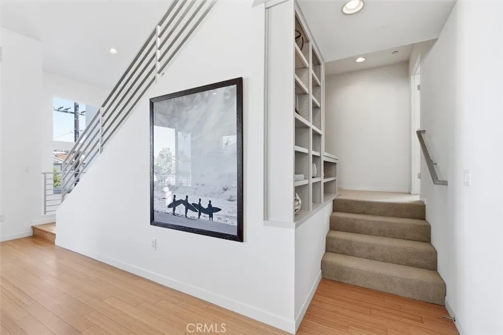 Corner placement changes everything. This luxury modern townhome in the heart of Redondo Beach, just steps from Andrews Park, offers what most attached homes cannot: open exposure on two sides, added windows, and a noticeable sense of distance from neighbors. The result is better natural light, cleaner sightlines, and a layout that feels less compressed and more like a traditional single-family residence, with no HOA dues. Enter from your own dedicated driveway without navigating tight angles to reach the garage. A designer front door opens to the entry level, where a private primary suite offers flexibility for in-laws, long term guests, or a live work setup. For todays work from home buyers, this space also functions beautifully as an office with direct access for visitors without bringing them through the entire home. The bright open concept main level showcases a gourmet kitchen with stainless steel appliances, large island, and deep walk-in pantry. The kitchen flows seamlessly into the dining area and living room with a gas fireplace, extending to a spacious deck that creates an effortless indoor-outdoor connection. Down the hall, the main primary suite features a generous walk-in closet and en suite bath with double sinks, jetted tub, and step-in shower. An additional bedroom, full bath, and dedicated laundry complete this level. On the top floor, an enclosed loft serves as a second living space or 4th bedroom and opens directly to a sun drenched upper deck with neighborhood views. Additional highlights include high ceilings, recessed lighting, eco-conscious bamboo fl